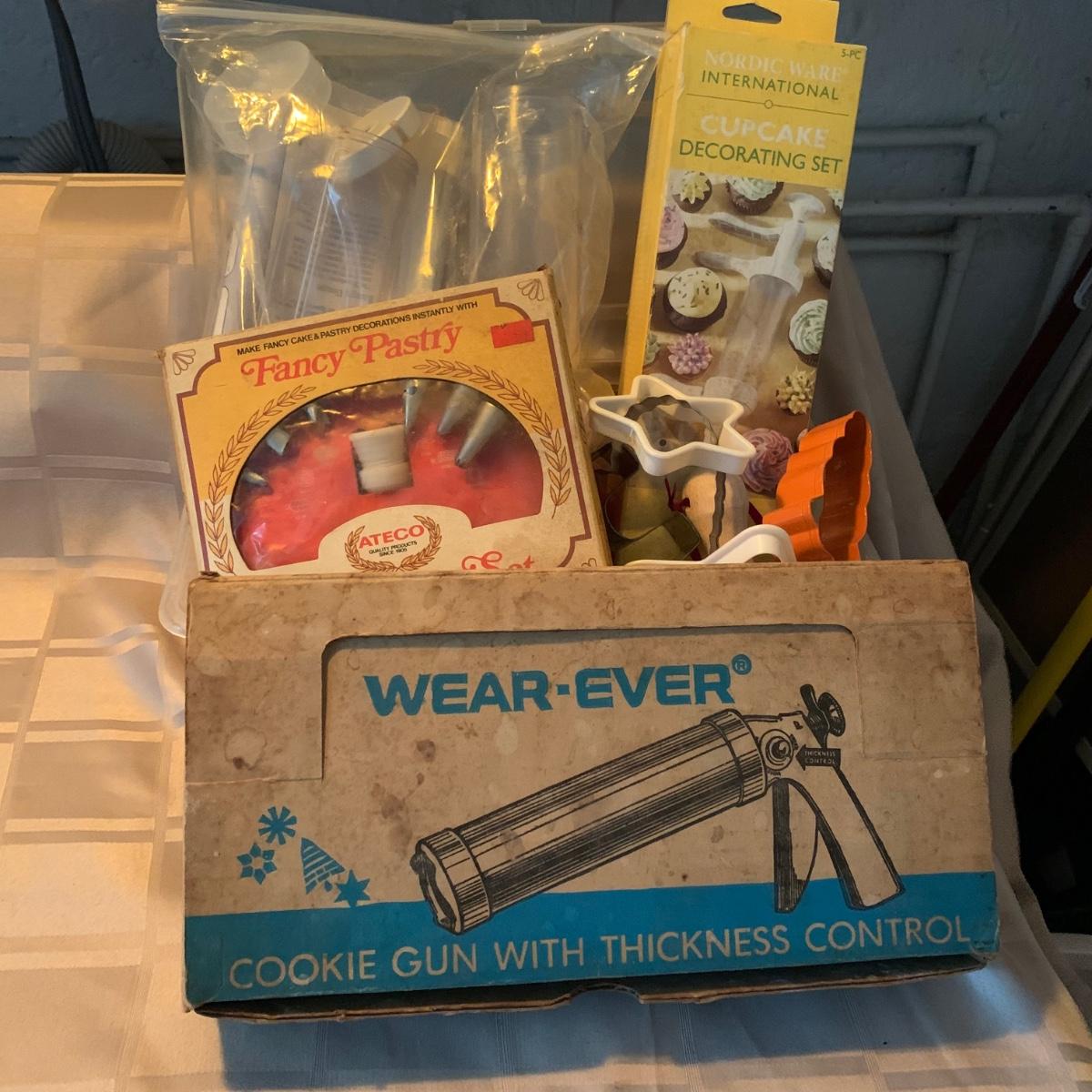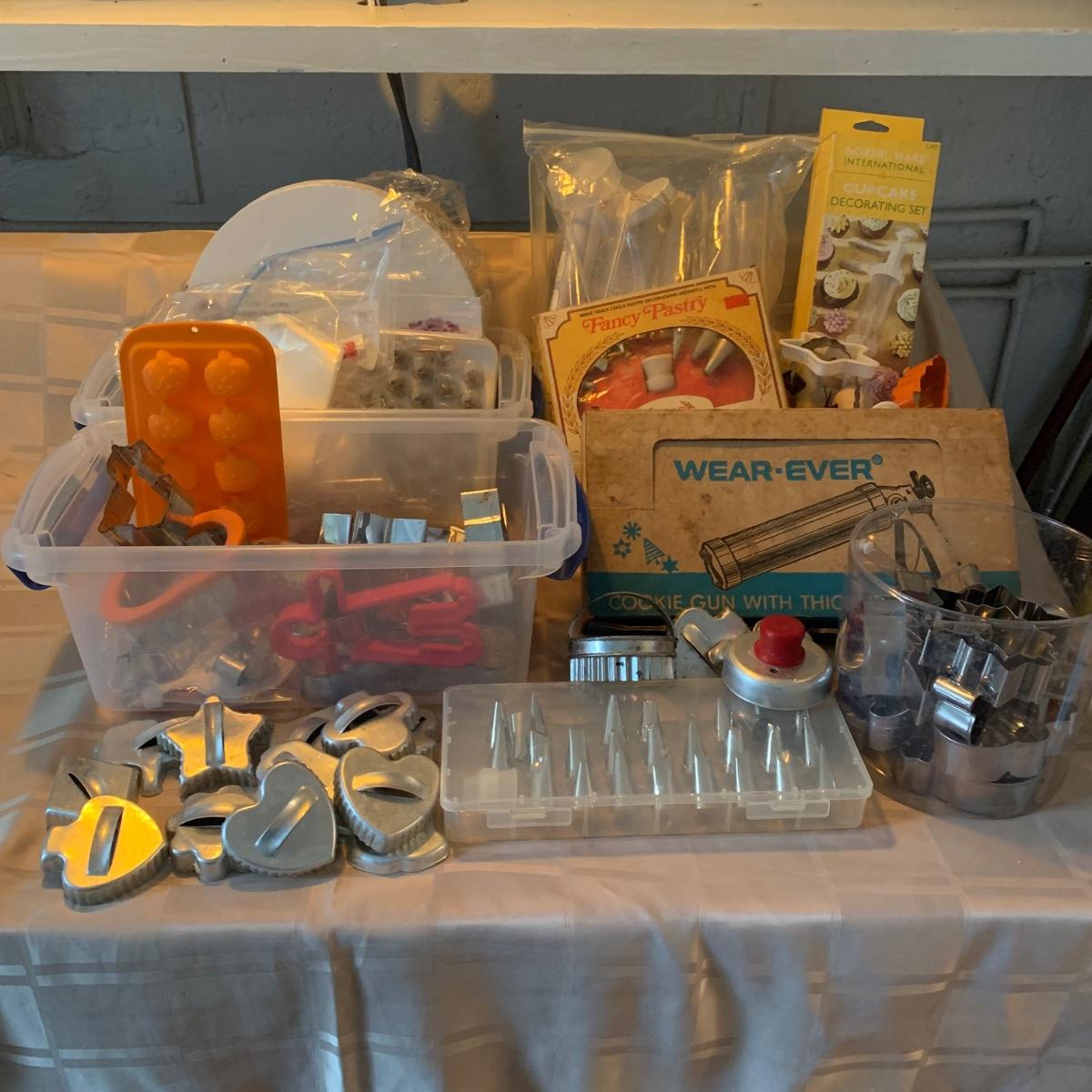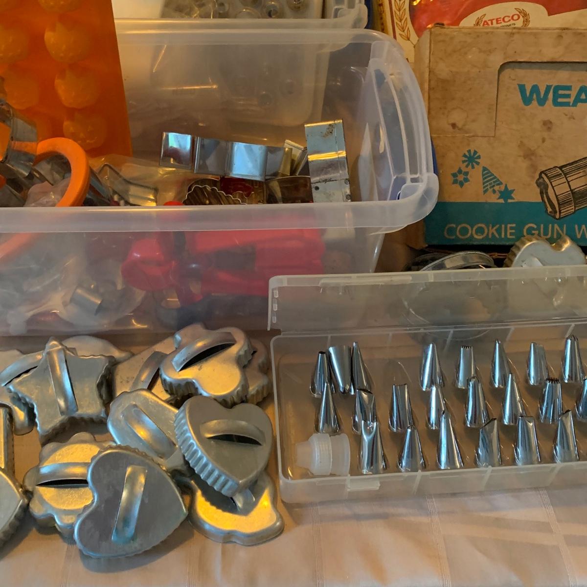 LOT 4R: Baking Lot: Vintage & Newer Cookie Cutters, Cake Decorating Tips, Wear-Ever Cookie Guns & More