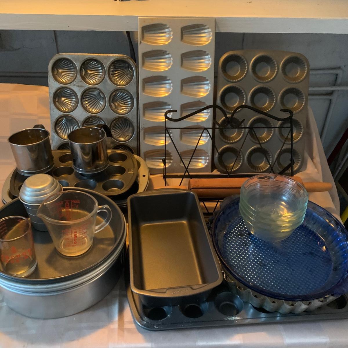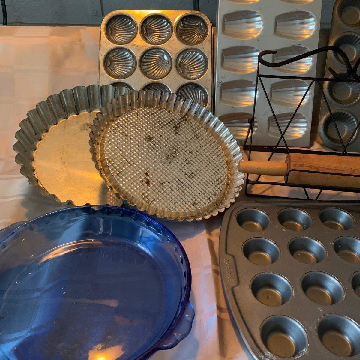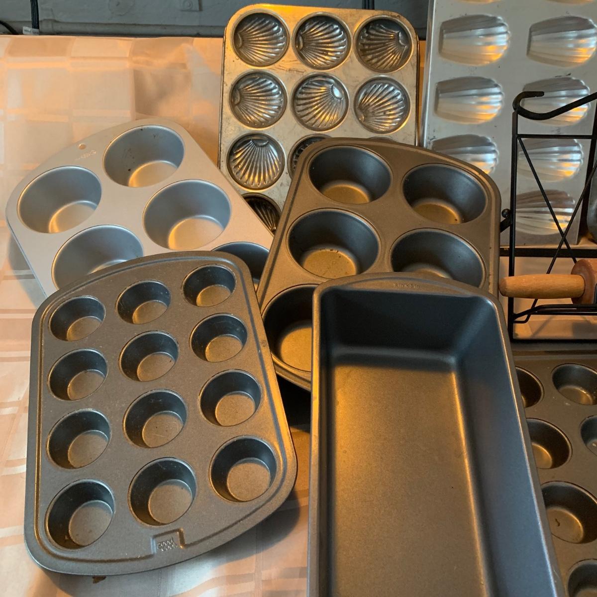 LOT 5R: Baking Pan Lot:  Madeleines Pan, Cupcake/Muffin Pans, Pyrex Measuring Cup, Sifters & More