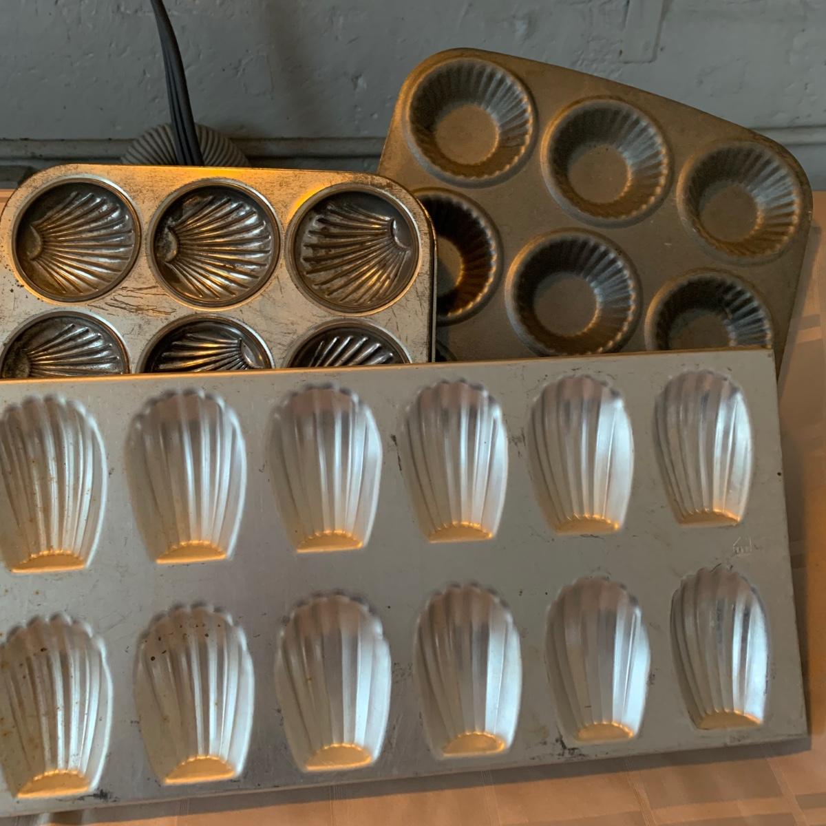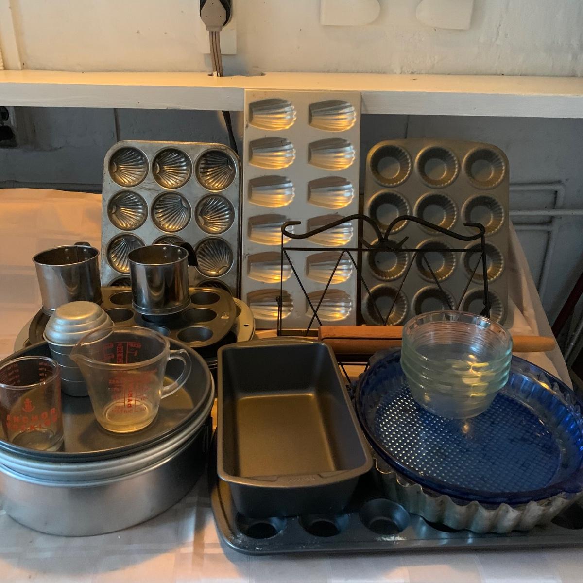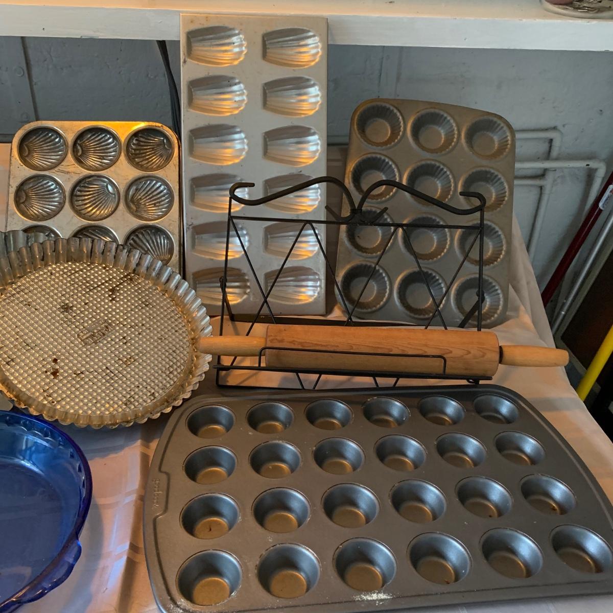 LOT 5R: Baking Pan Lot:  Madeleines Pan, Cupcake/Muffin Pans, Pyrex Measuring Cup, Sifters & More