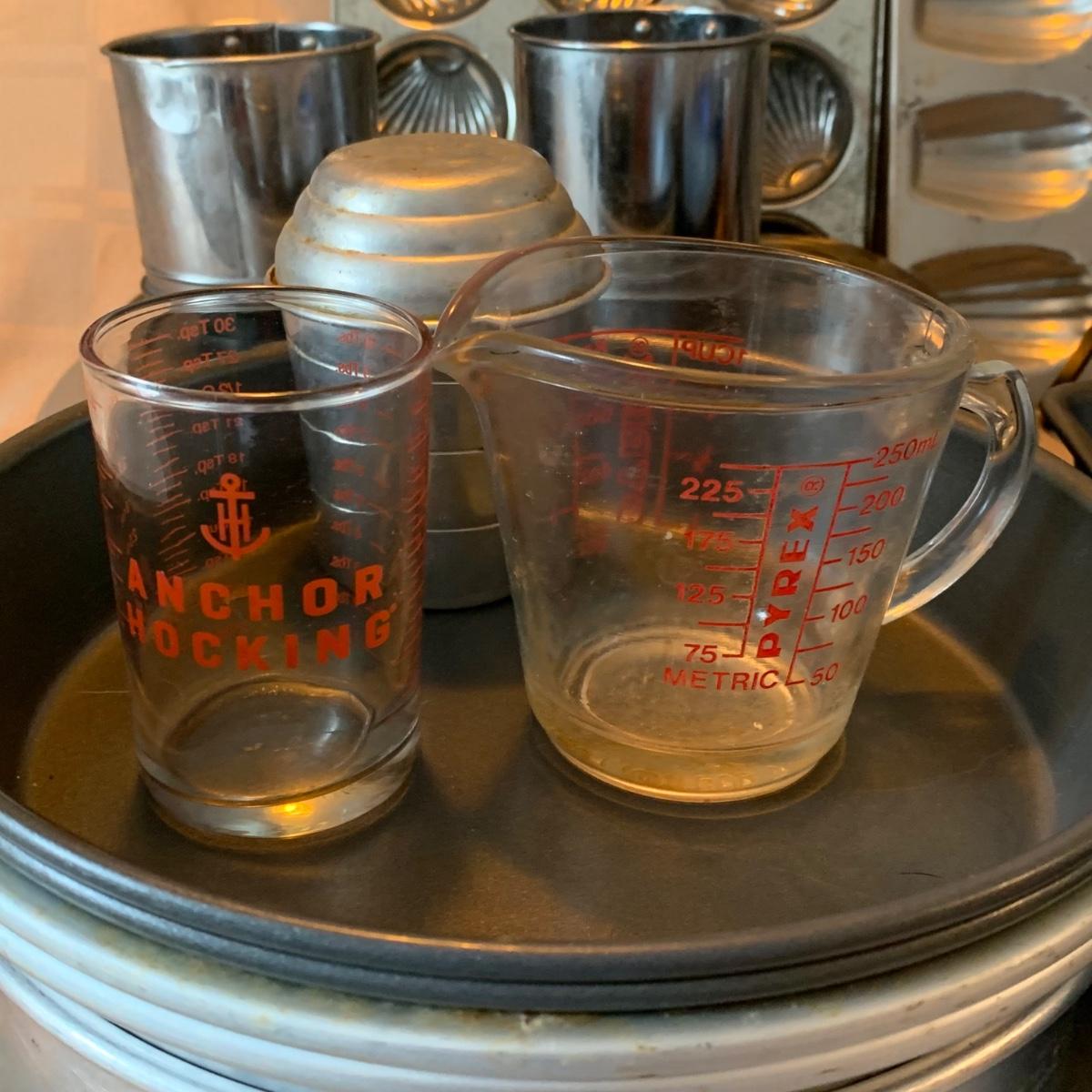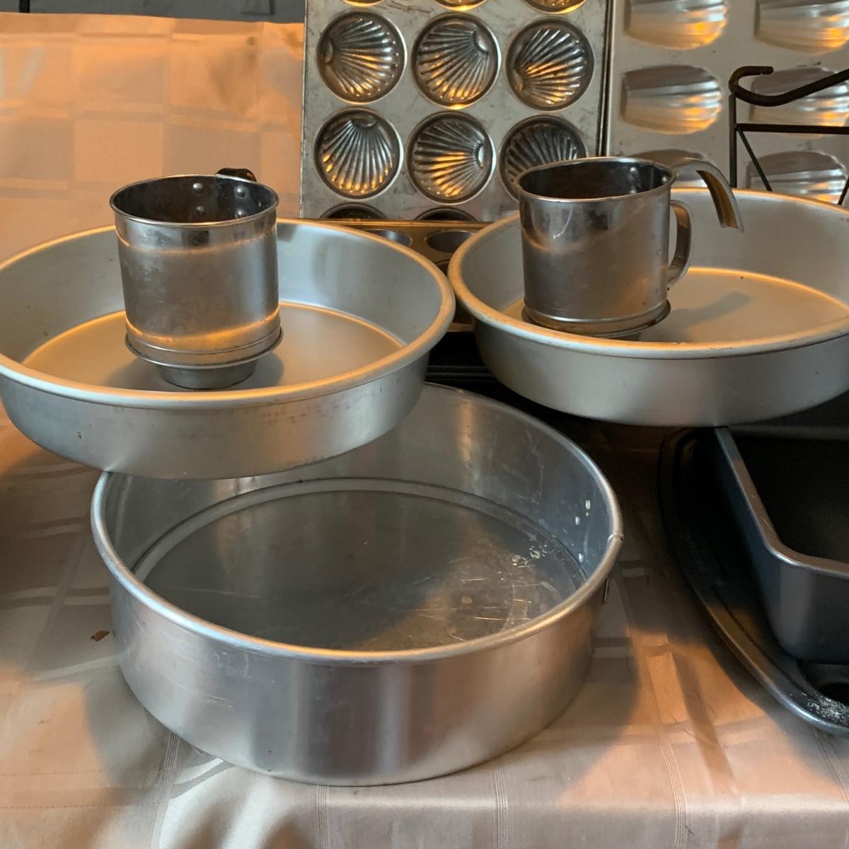 LOT 5R: Baking Pan Lot: Madeleines Pan, Cupcake/Muffin Pans, Pyrex Measuring Cup, Sifters & More