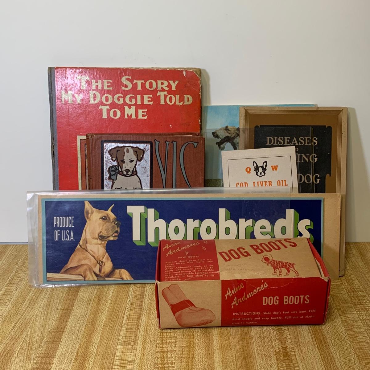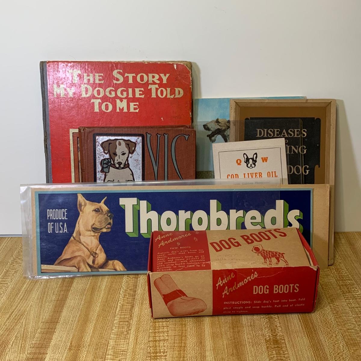 LOT 10R: Vintage Dog Books, Anne Ardmore's Boots, Advertising Labels