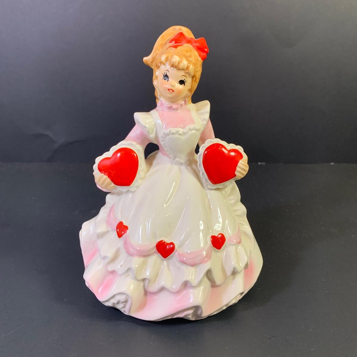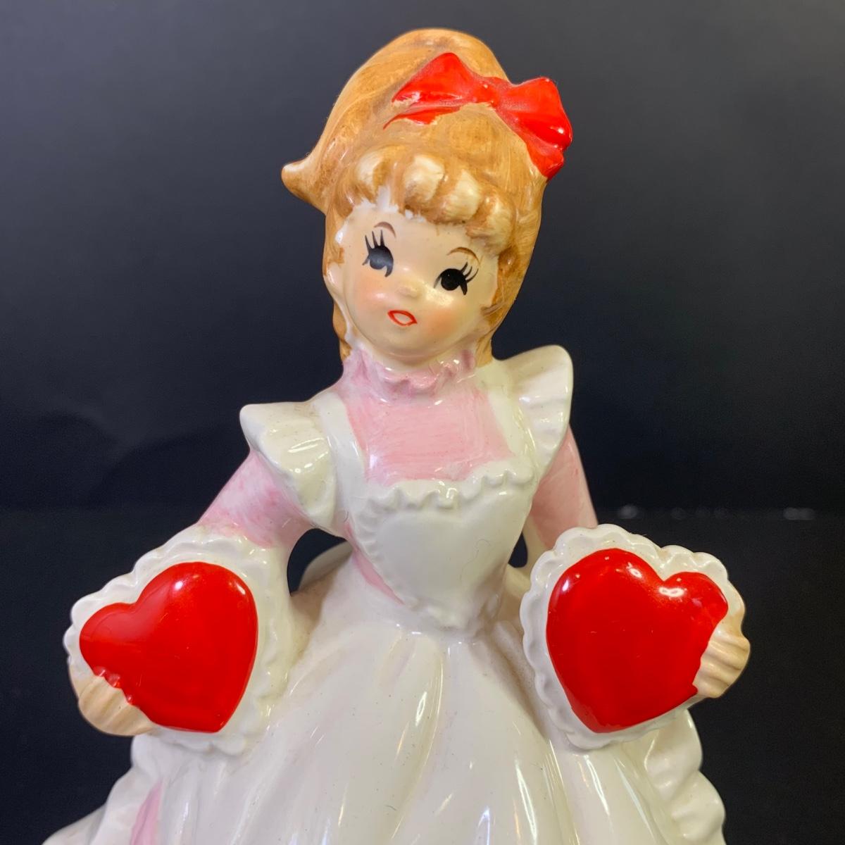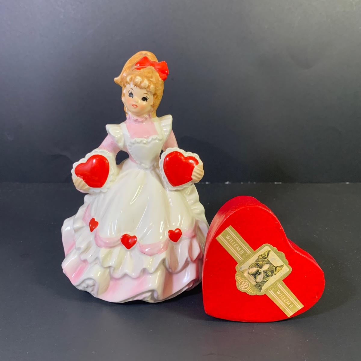 LOT 15R: Vintage Lefton Valentine Music Box, H&P Childrens Gloves, Crochets Doilies, & More