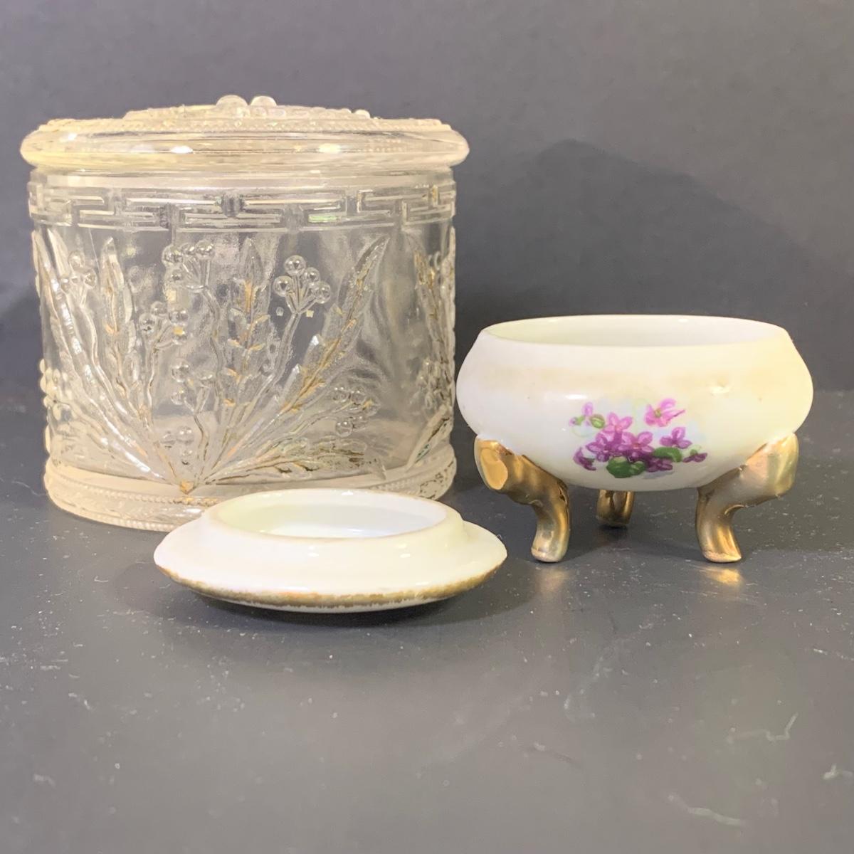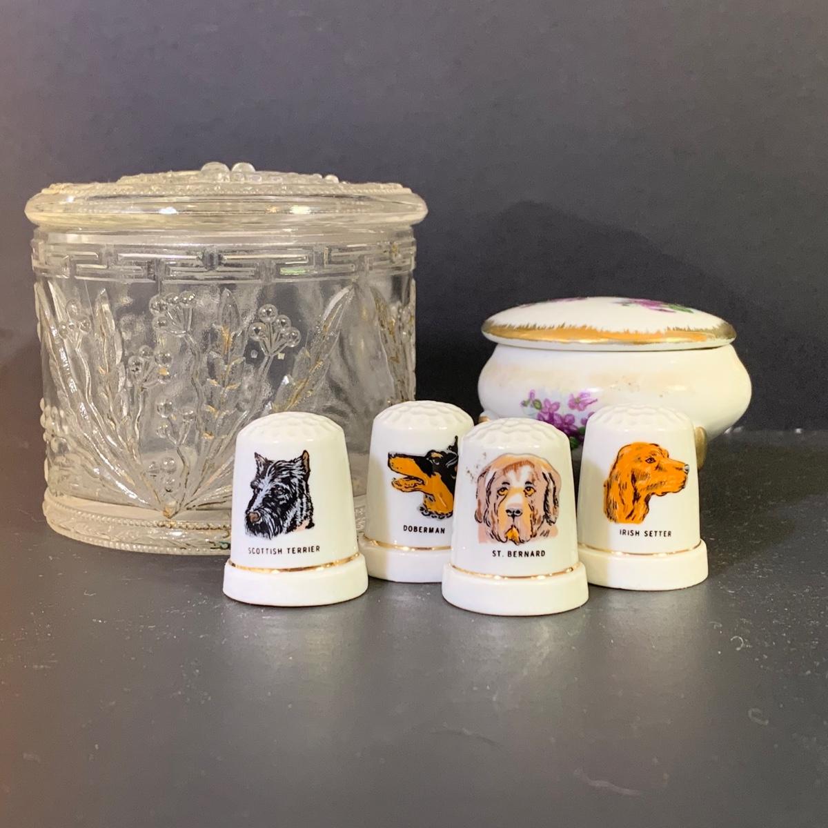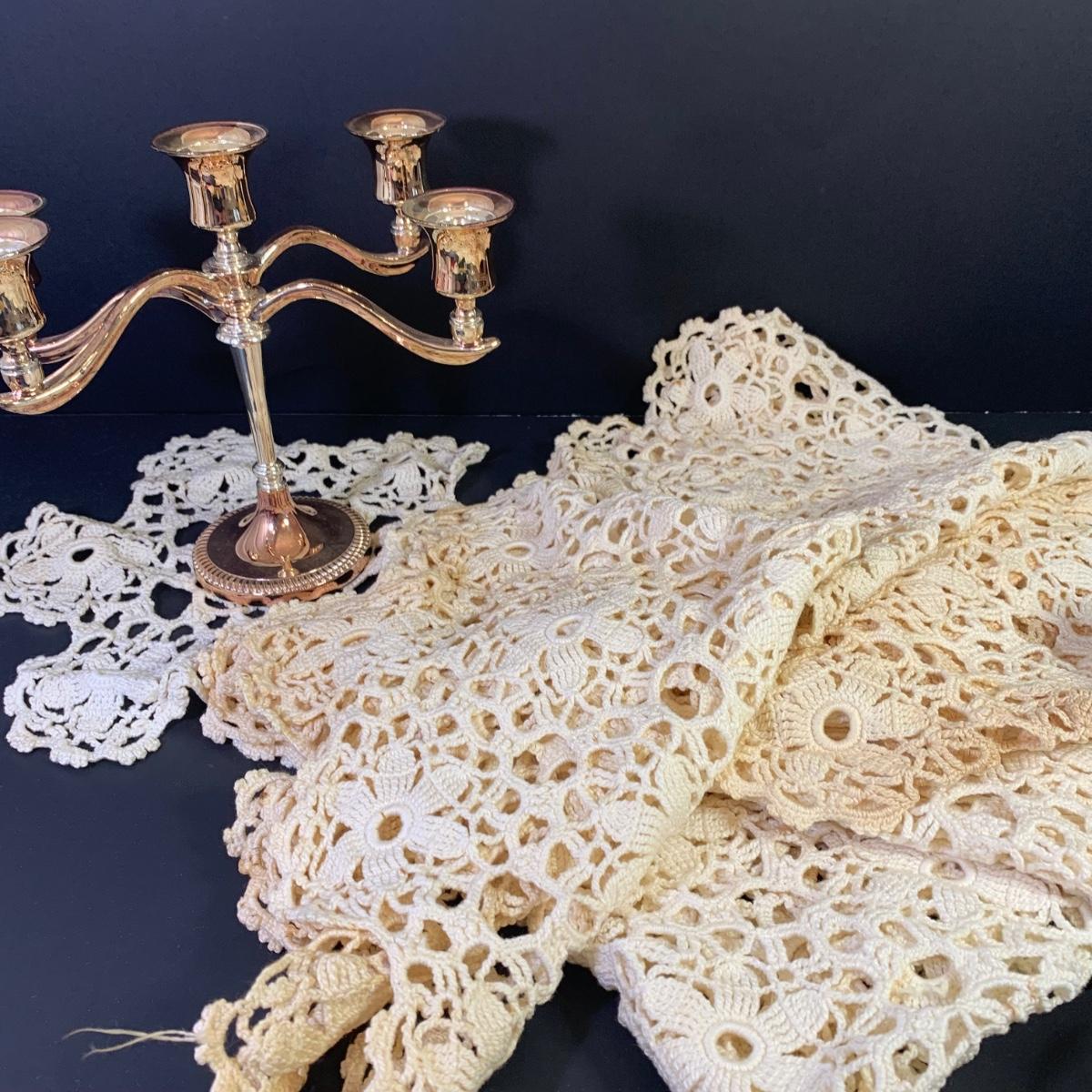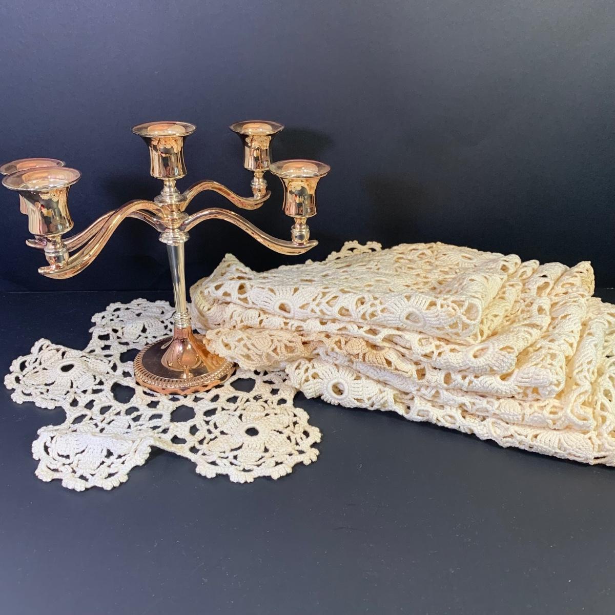 LOT 15R: Vintage Lefton Valentine Music Box, H&P Childrens Gloves, Crochets Doilies, & More