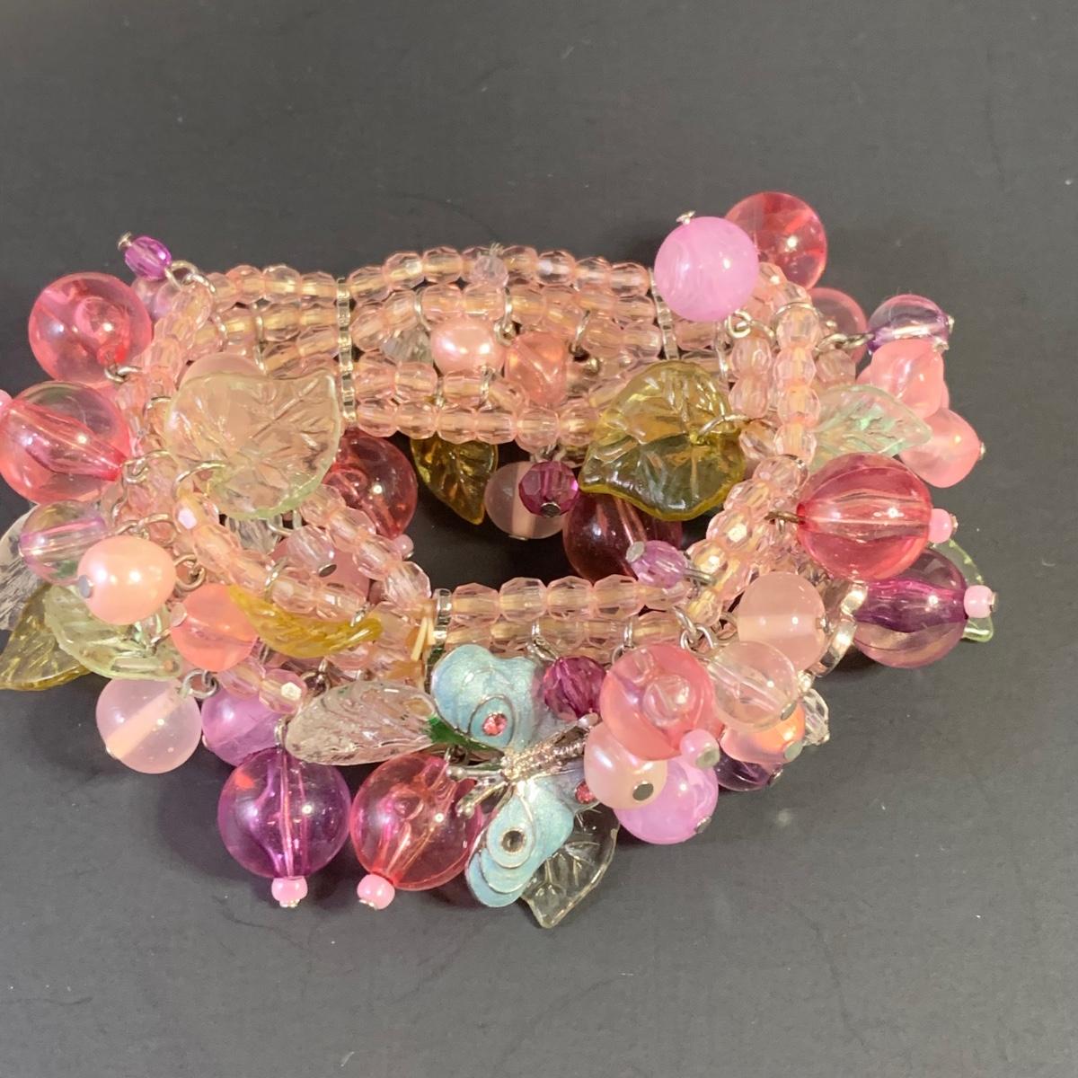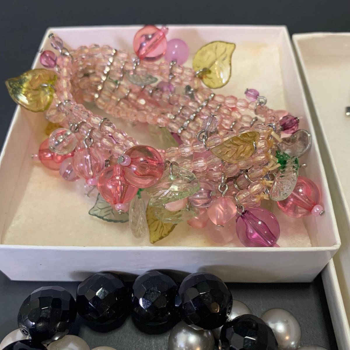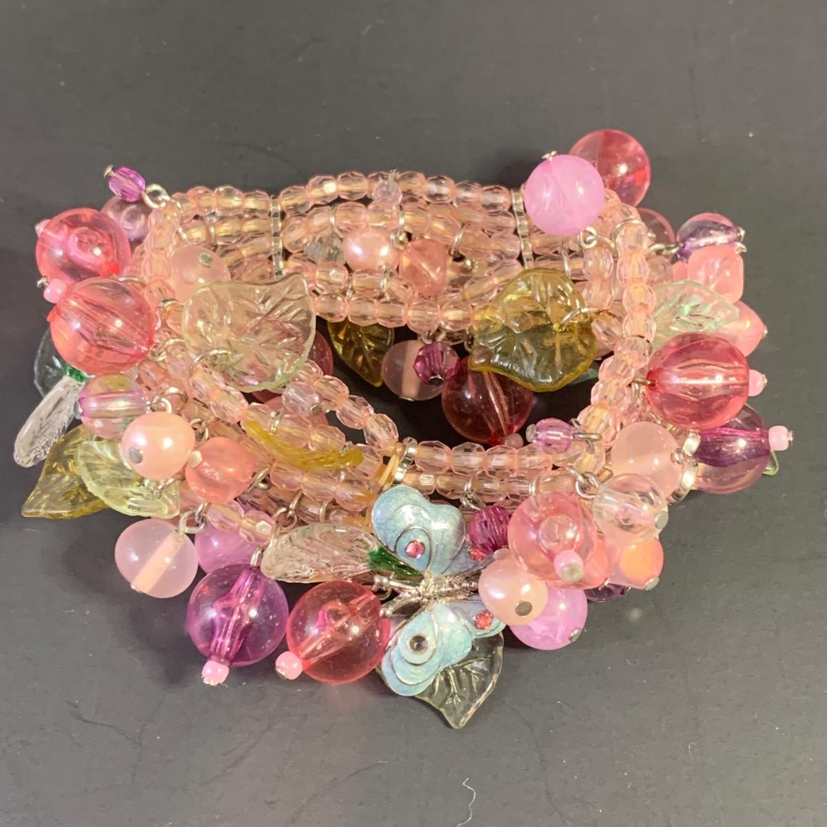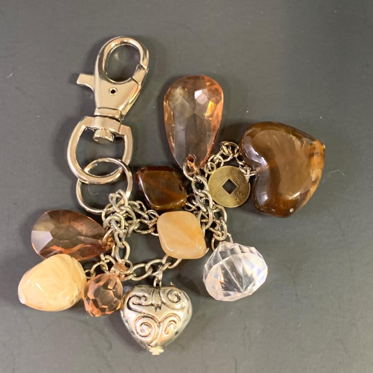 LOT 22R: Heart & Jewels Key Chain, Black & White Stretch Bracelets including a RMN Faux Pearl, Pink & Silver Tone Stretch Bracelet