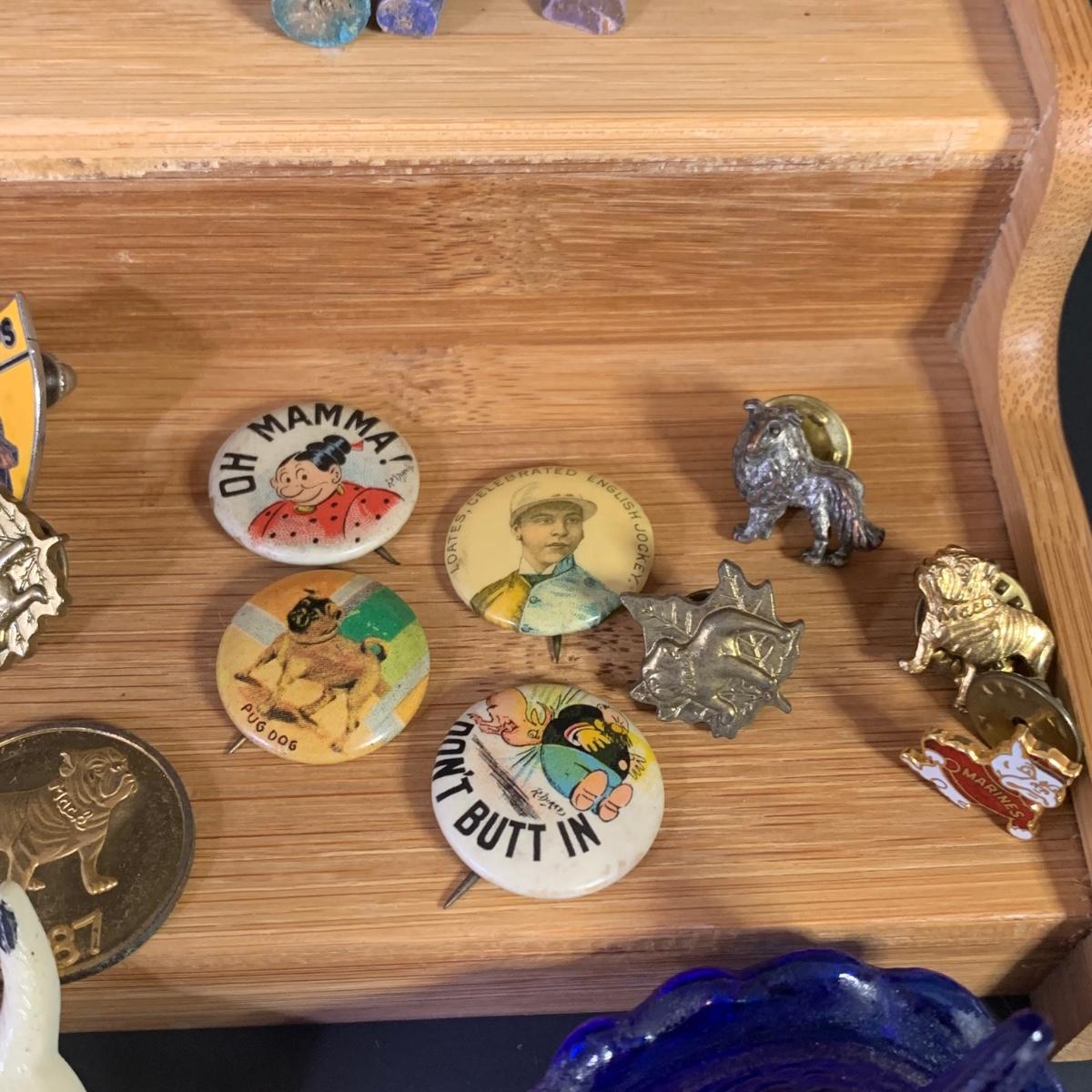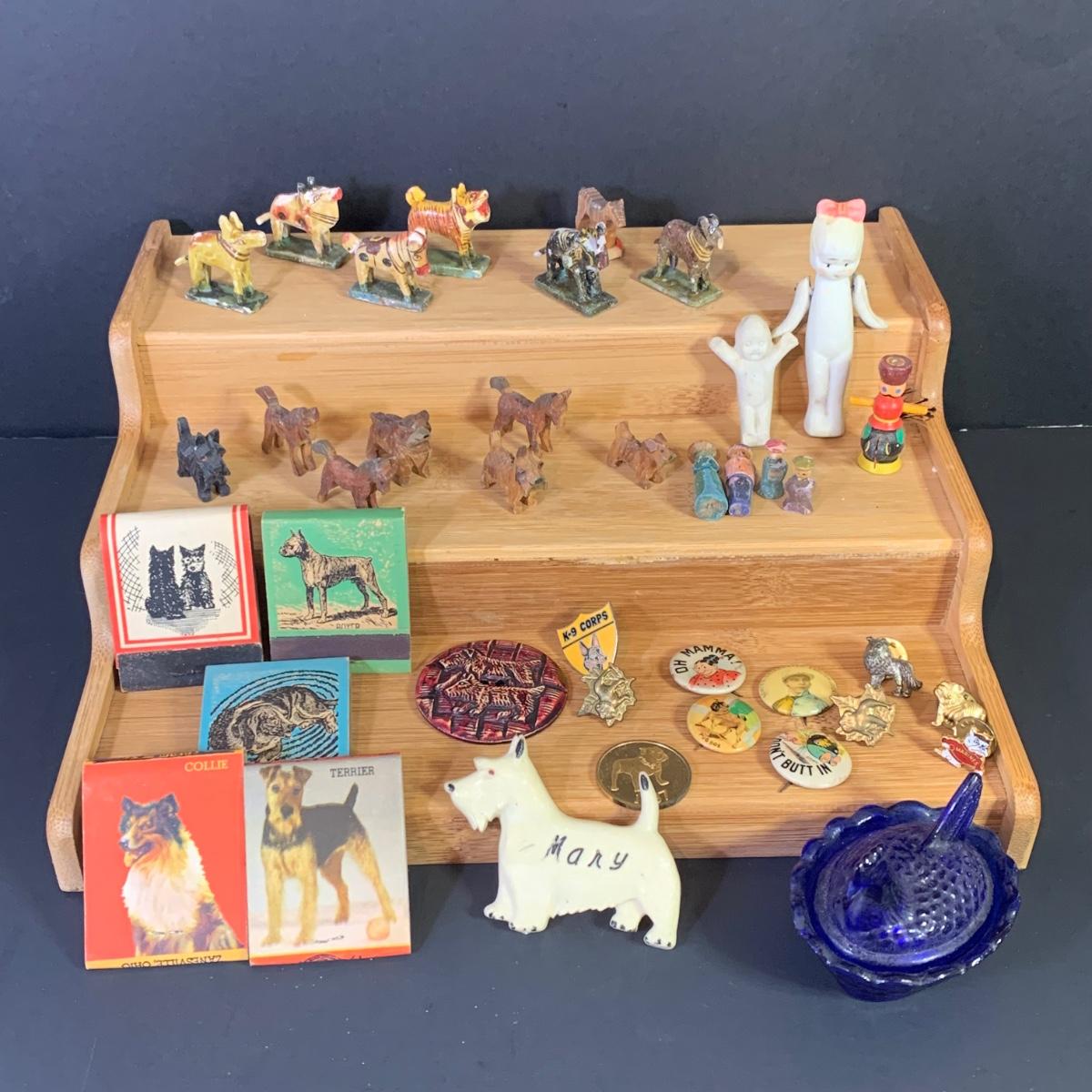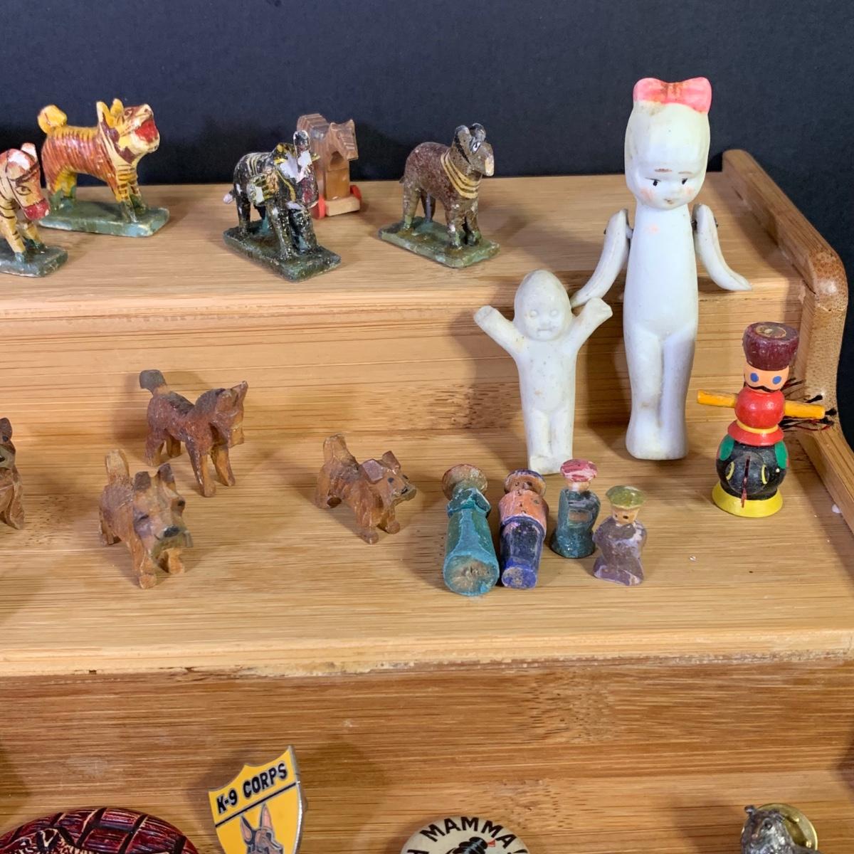 LOT 23R: Collection of Miniatures & More: Matchbooks, Pins, Wooden Animals etc.