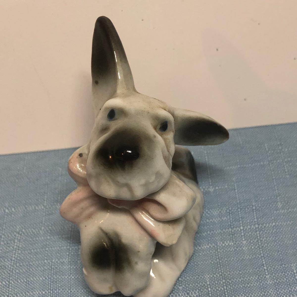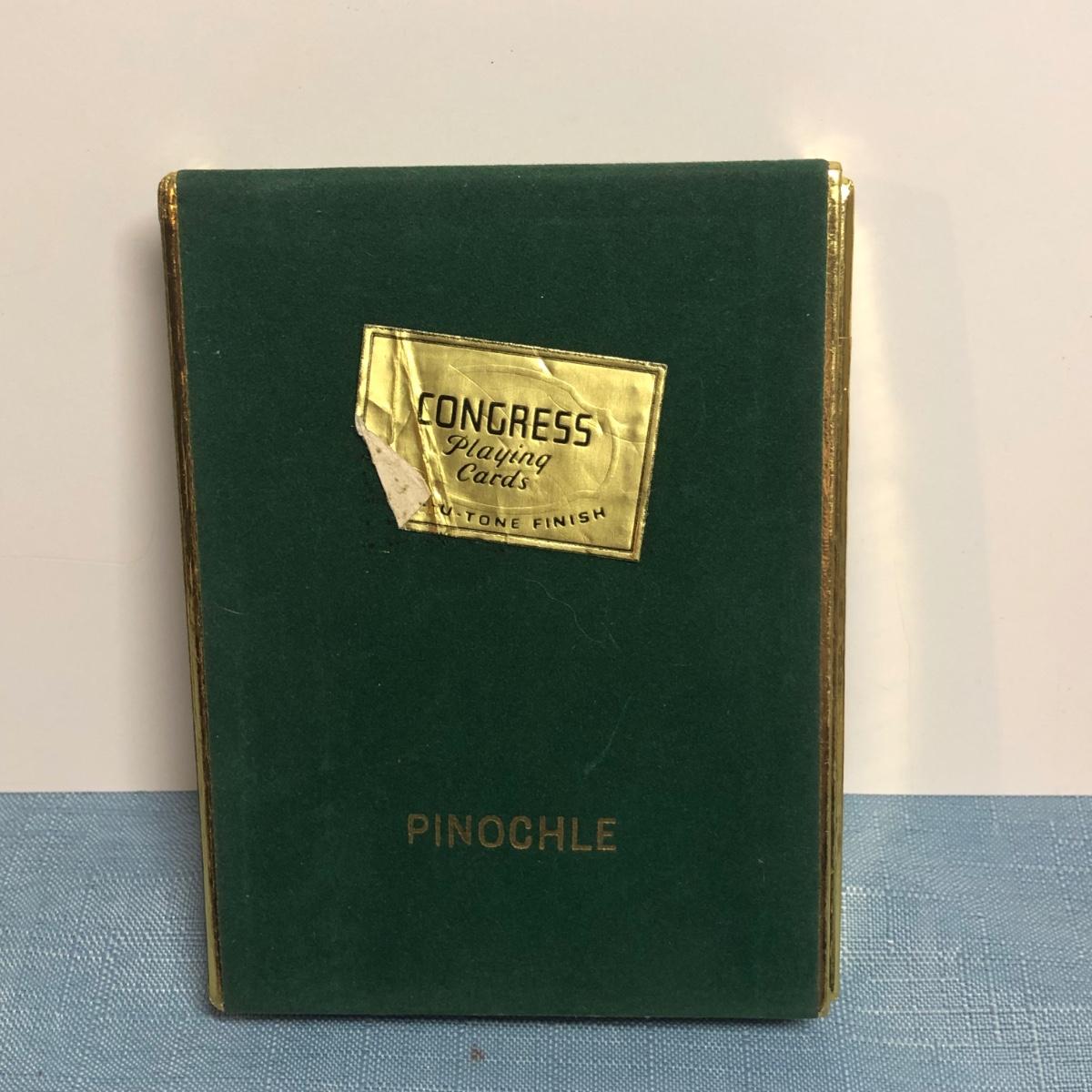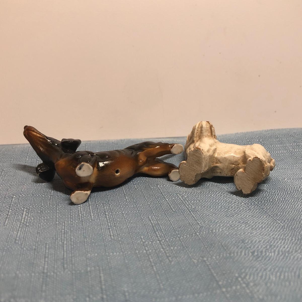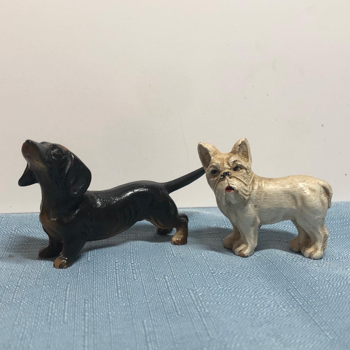 LOT 87M: Vintage Congress Pinochle Dog Cards, Hamilton Dachshund Playing Cards, Plastic Coated Pinochle Terrier Cards w/ Ceramic Dog Figurines