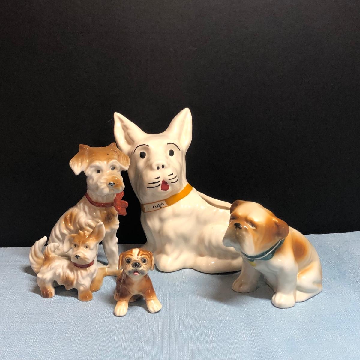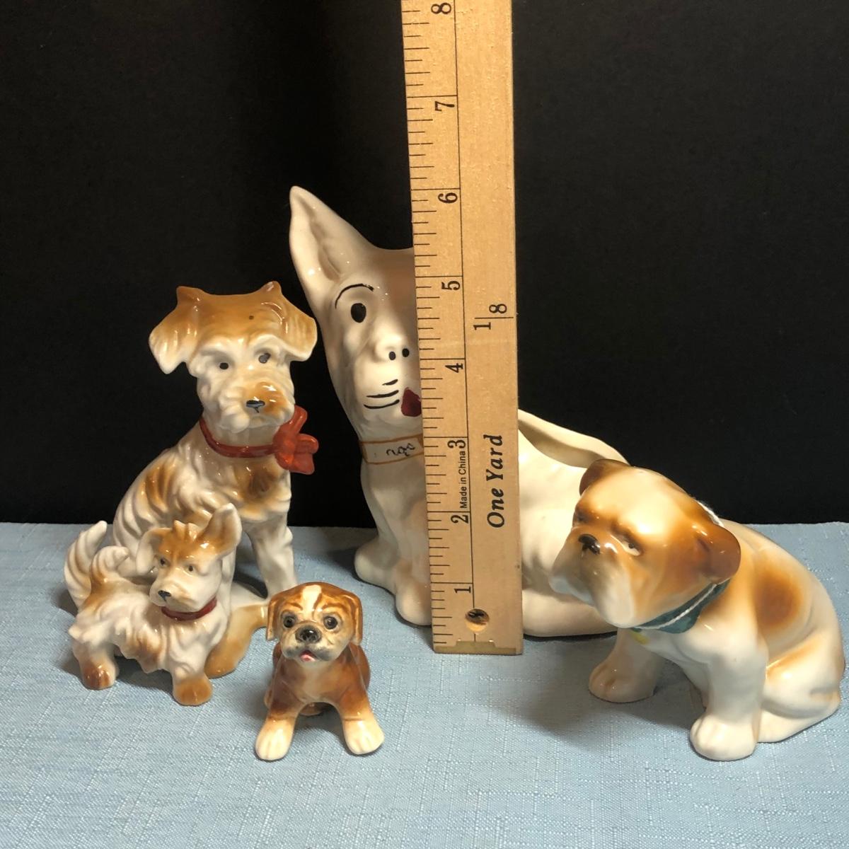 LOT 94M: Vintage Goebel Spaniel Dog, Terrier Planter, Bulldog Figure & Terrier w/ Puppy Figure