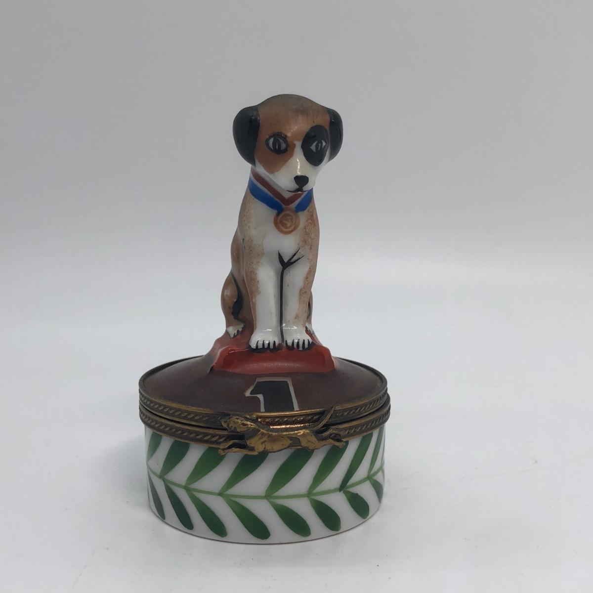 LOT 107M: Limoges France Rochard Hand Painted #1 Dog/Beagle Trinket Box
