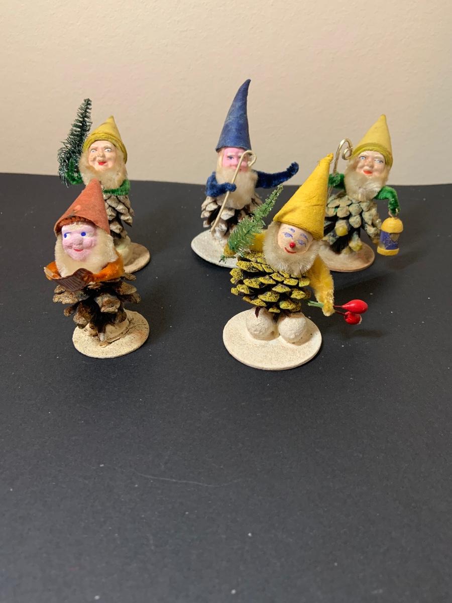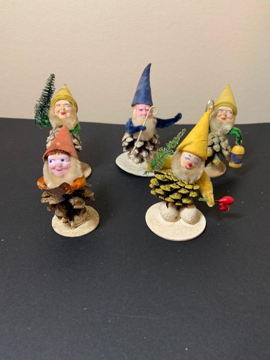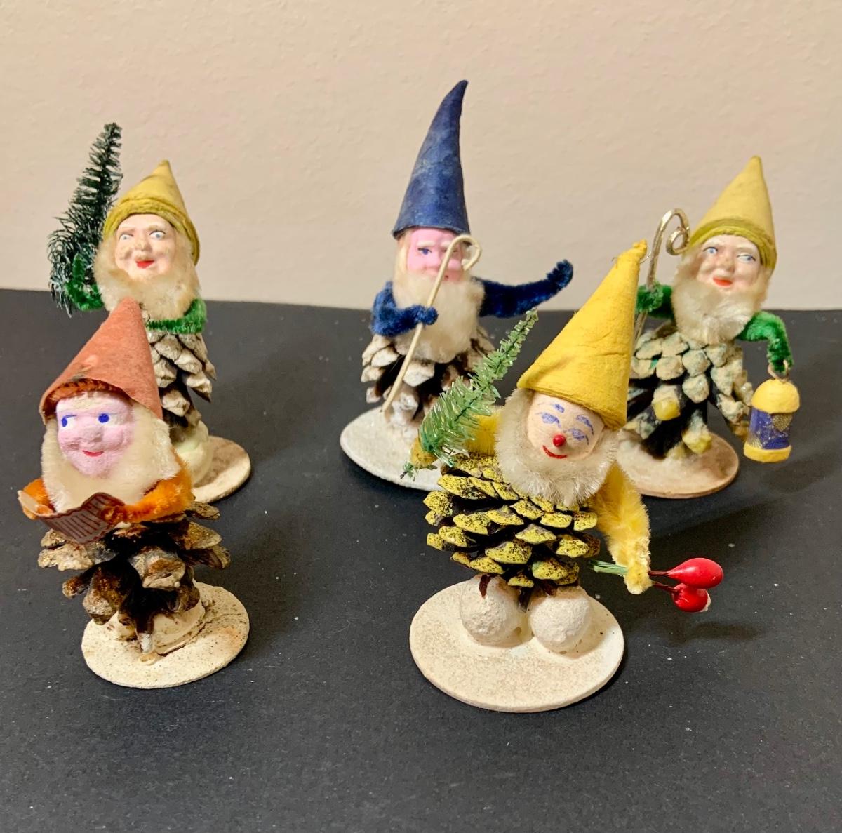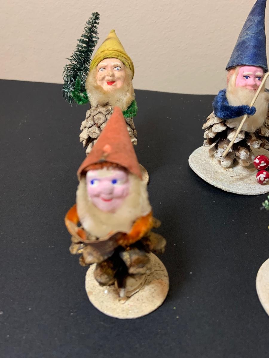 LOT:118G: Collection of Putz PInecone Holiday Elves/Gnomes From Both West Germany and Japan