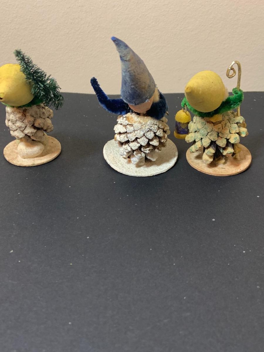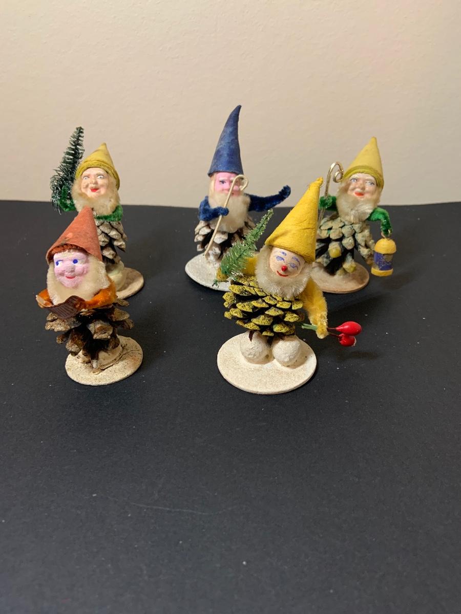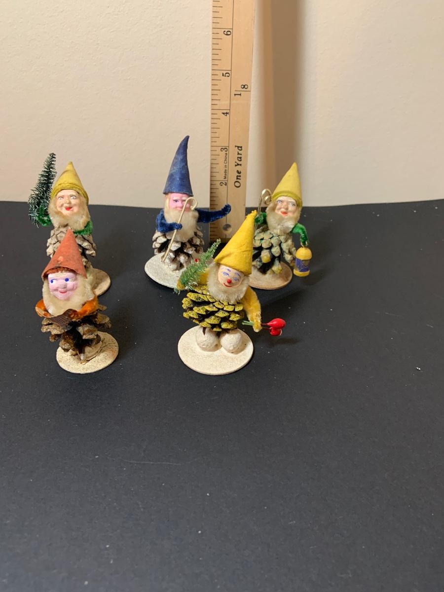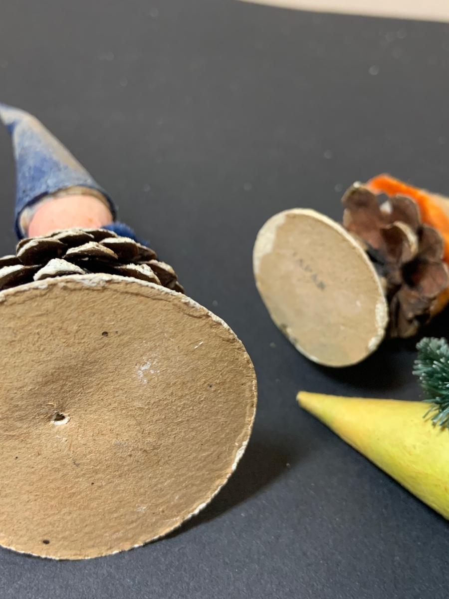 LOT:118G: Collection of Putz PInecone Holiday Elves/Gnomes From Both West Germany and Japan
