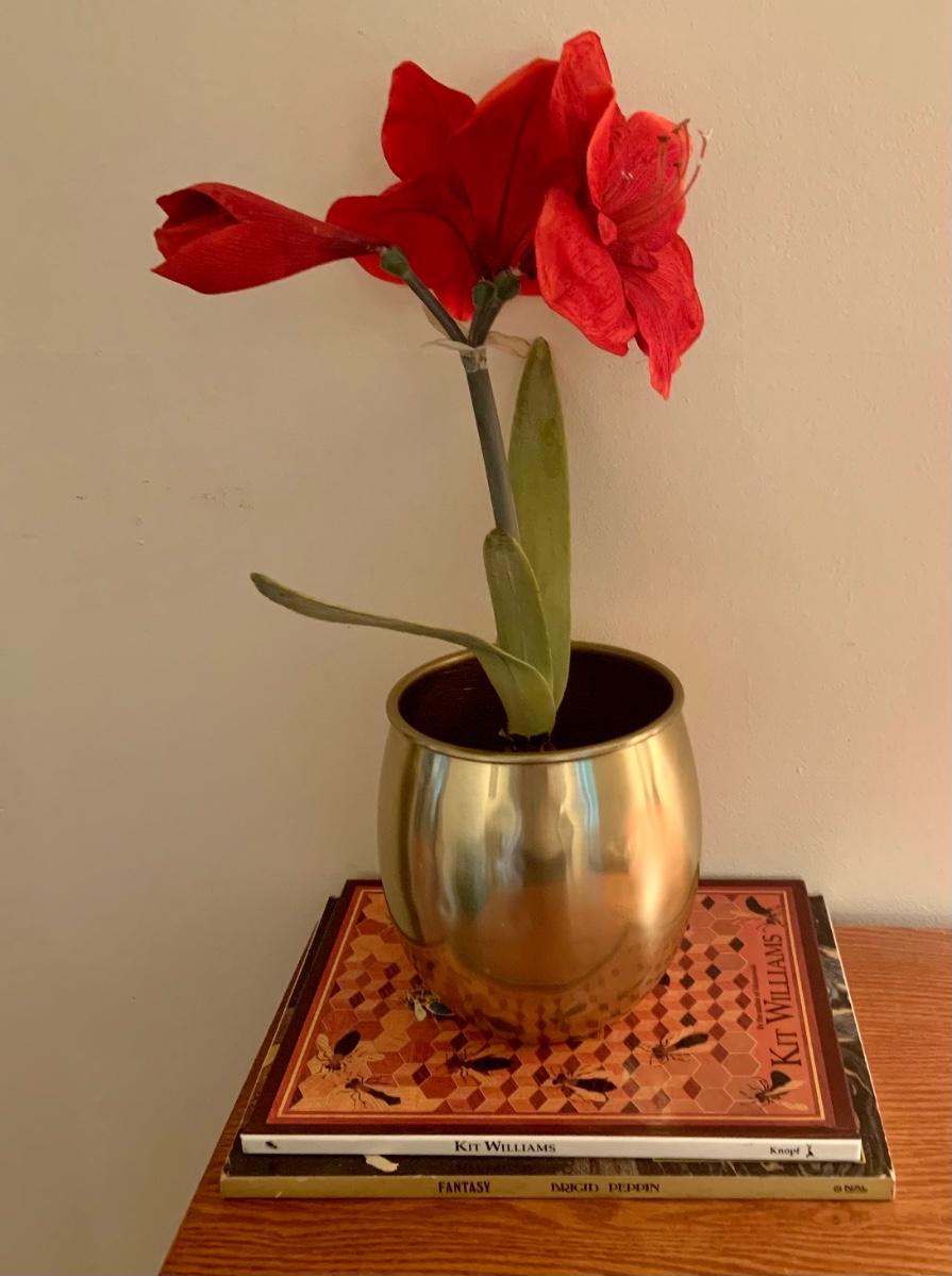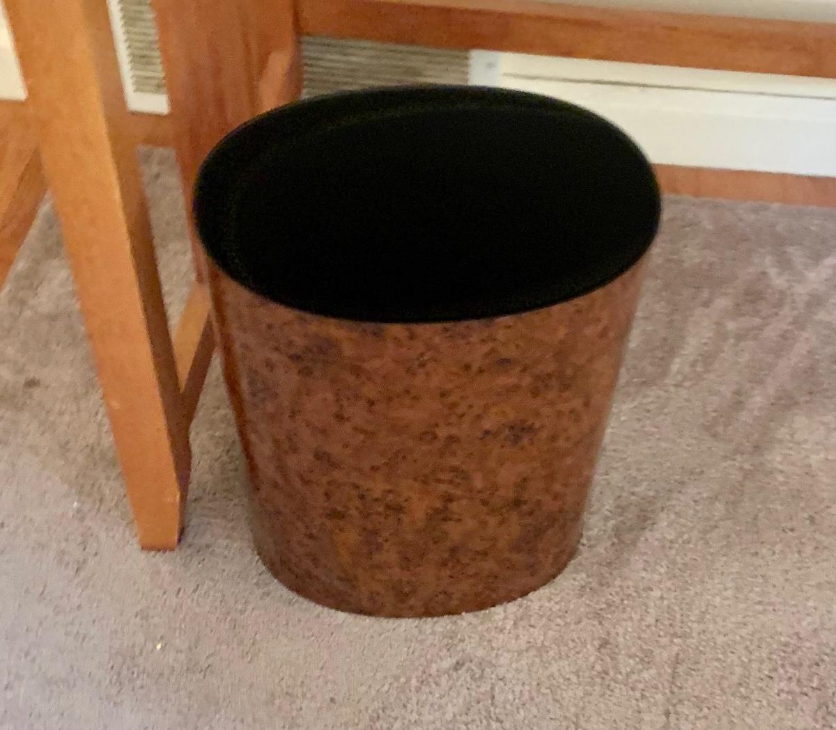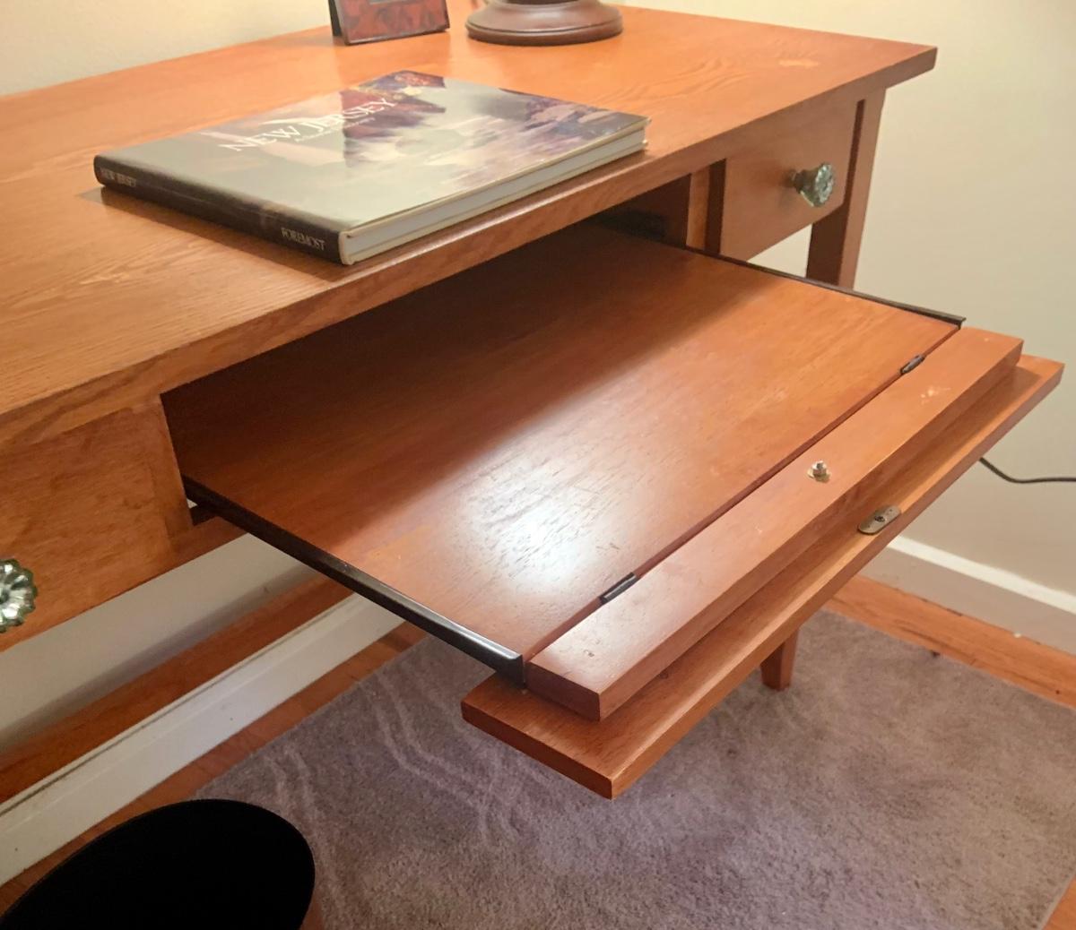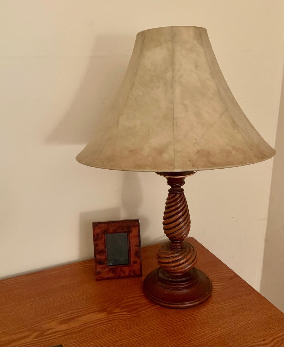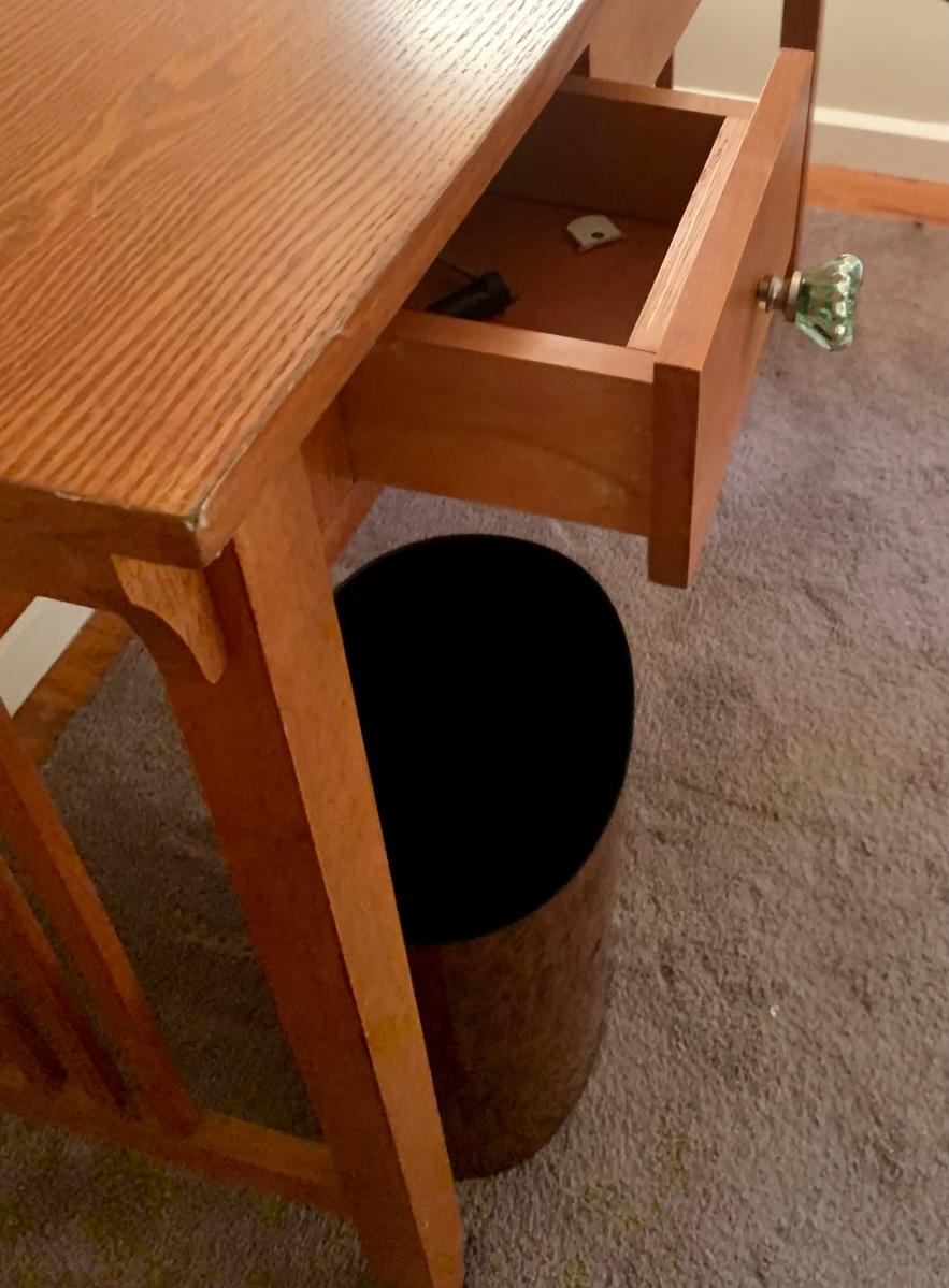 LOT:130G: Mission Desk with Lamp, Books, Waste Basket. Silk Plant and More