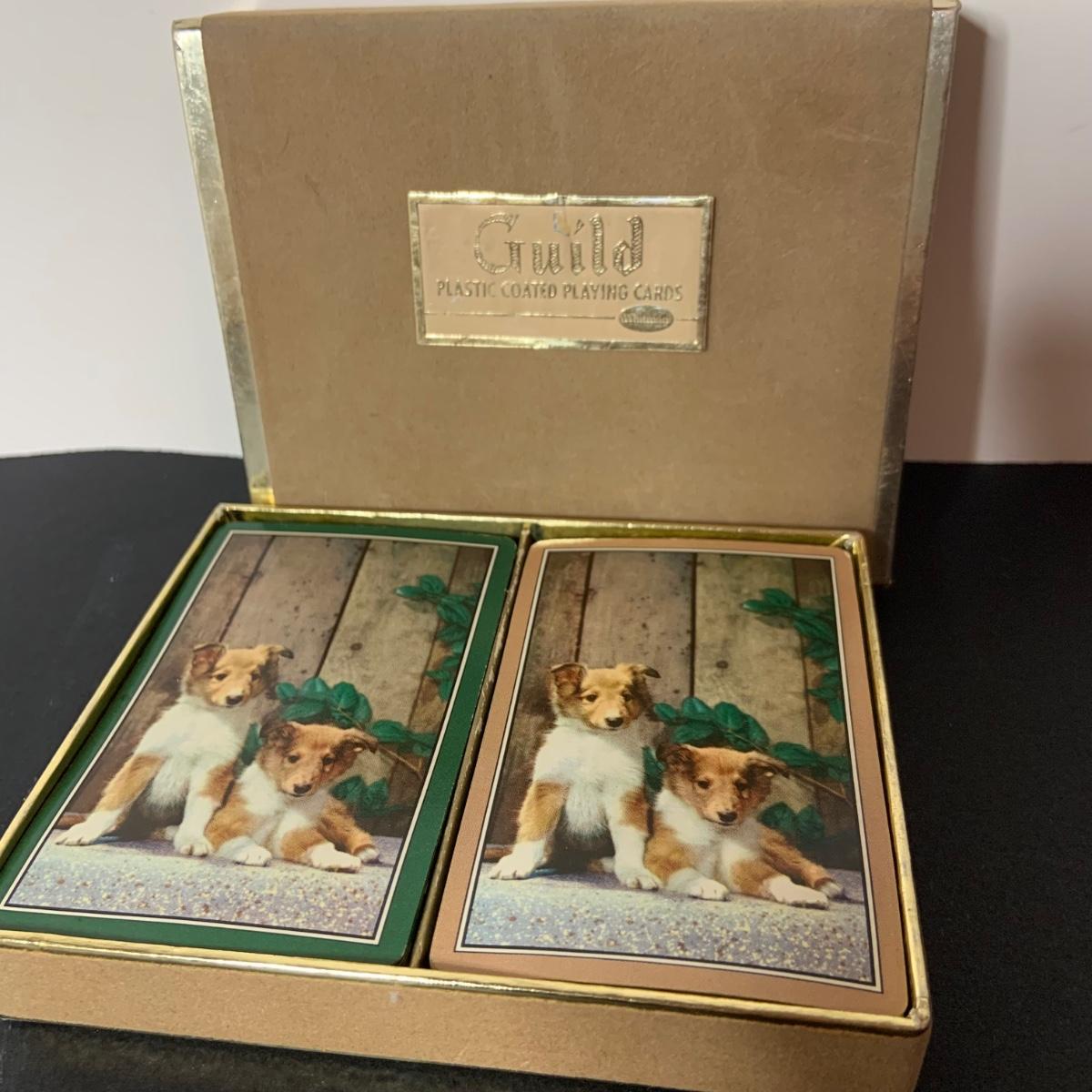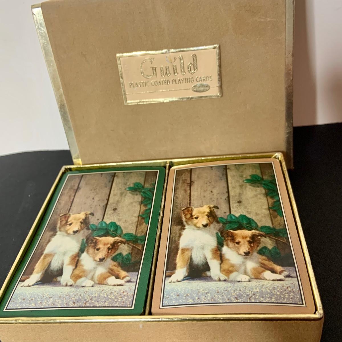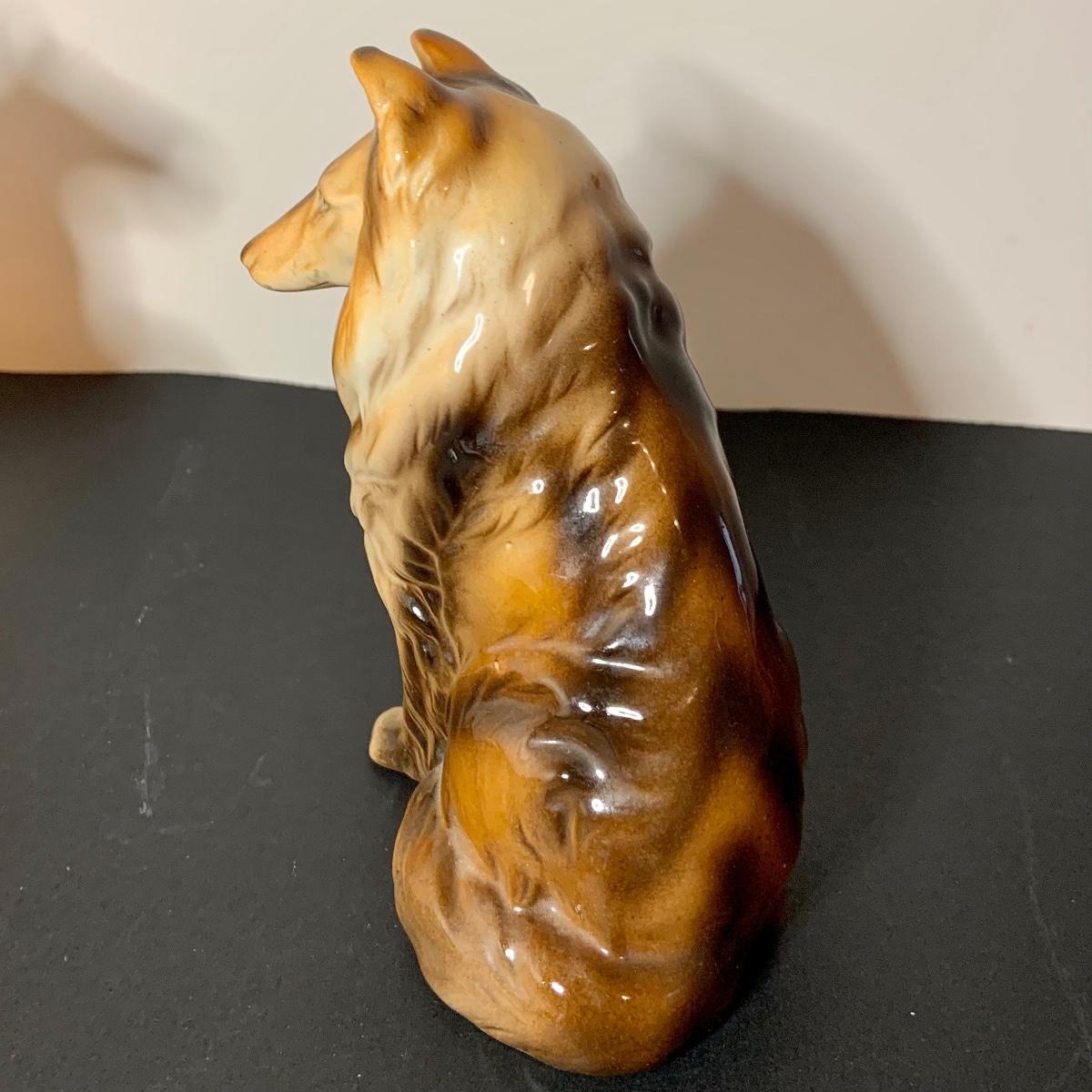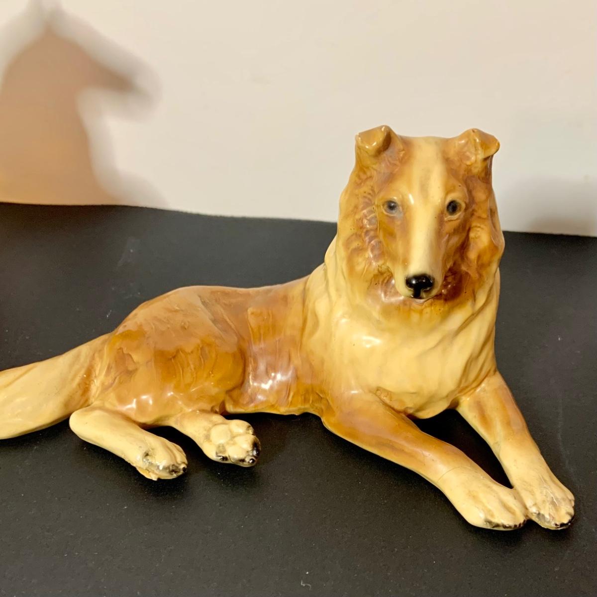 LOT:135G: Collie Collection Featuring Mortens Studio Resting Collie; with Guild Playing Card, Avon Bottle and Sitting Ceramic Collie
