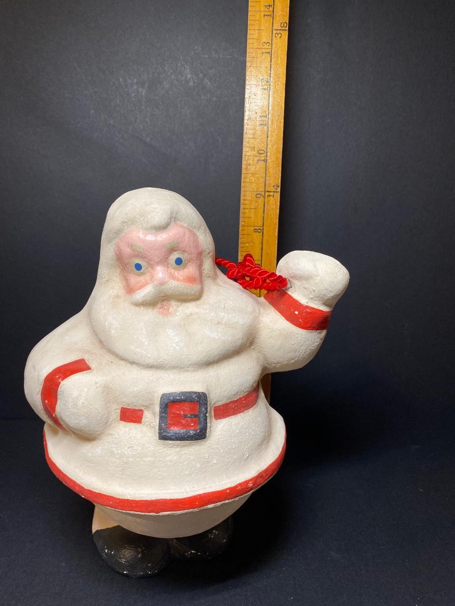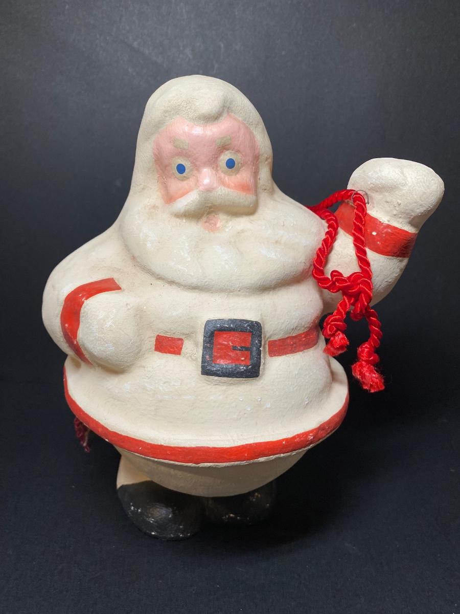 Paper mache Santa candy Container. Vintage Christmas decor.