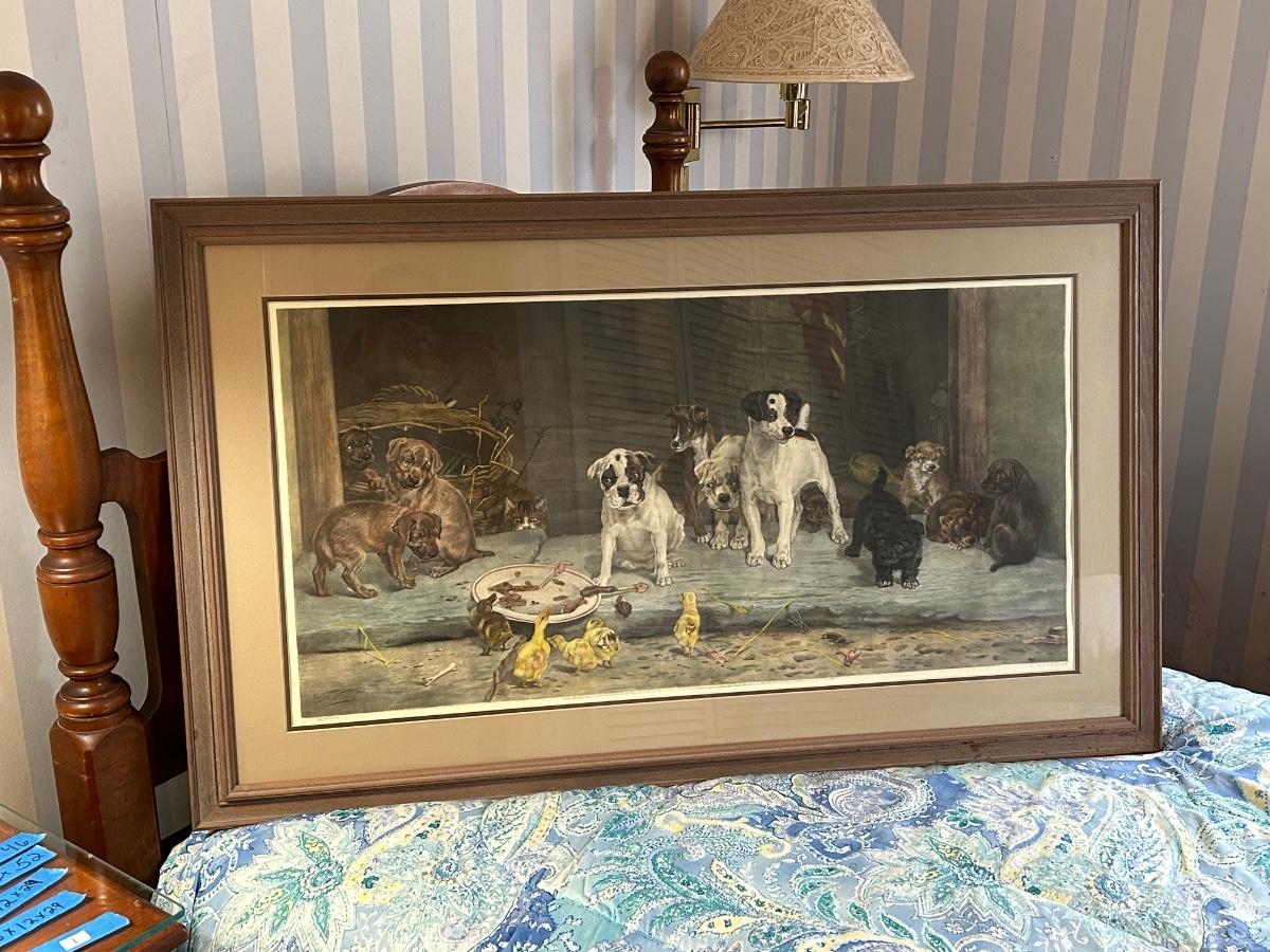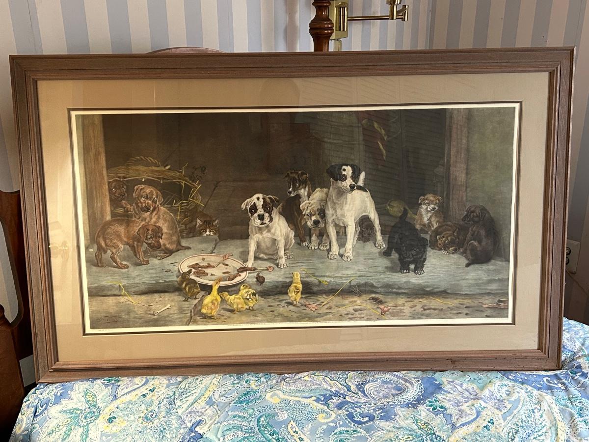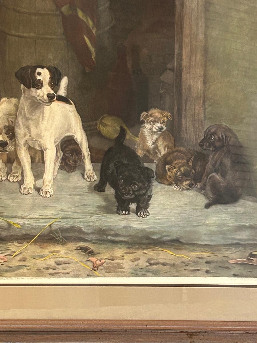 LOT 155C: Signed w/Details of Puppies in a Barn Print