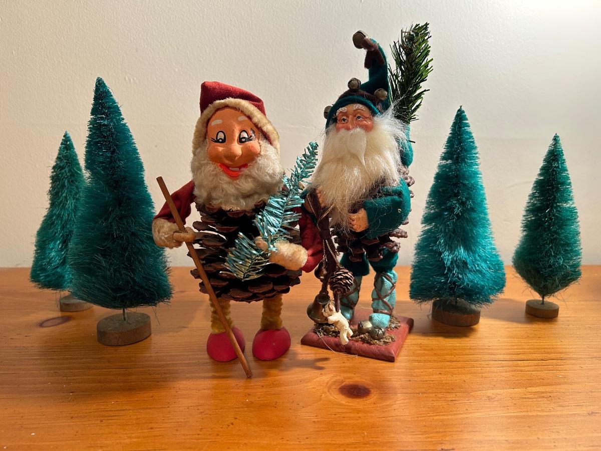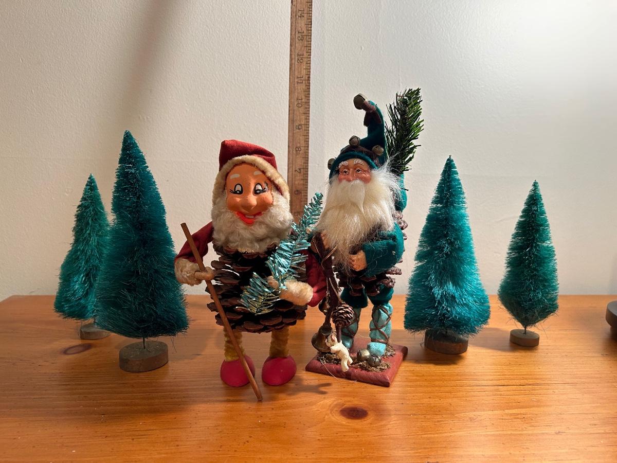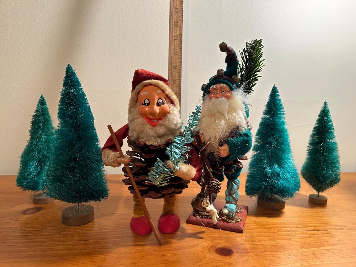 LOT 162C: Vintage Pinecone Santas w/ Bottle Brush Trees