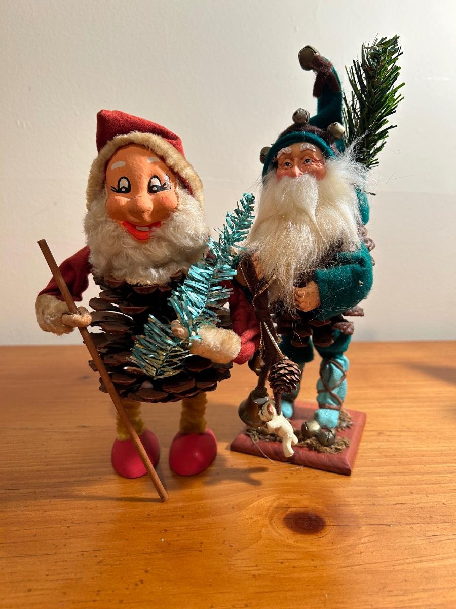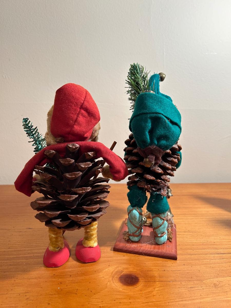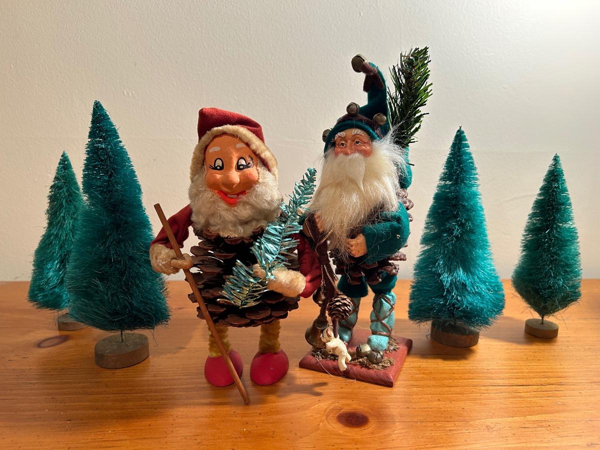 LOT 162C: Vintage Pinecone Santas w/ Bottle Brush Trees