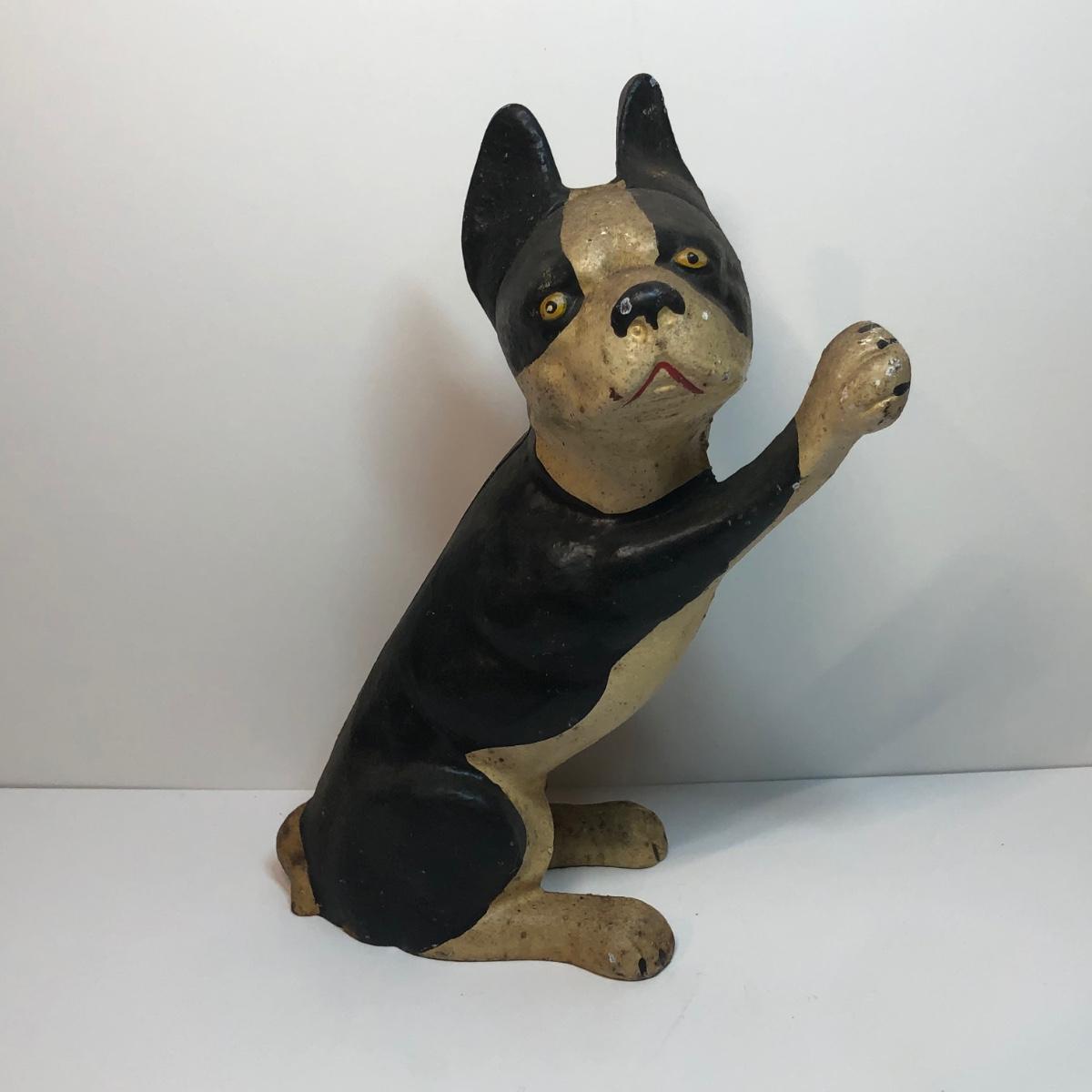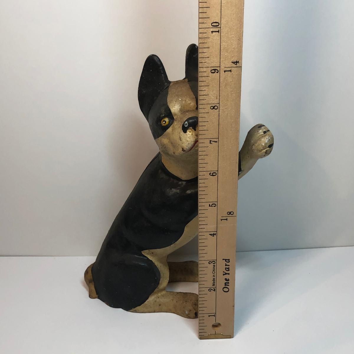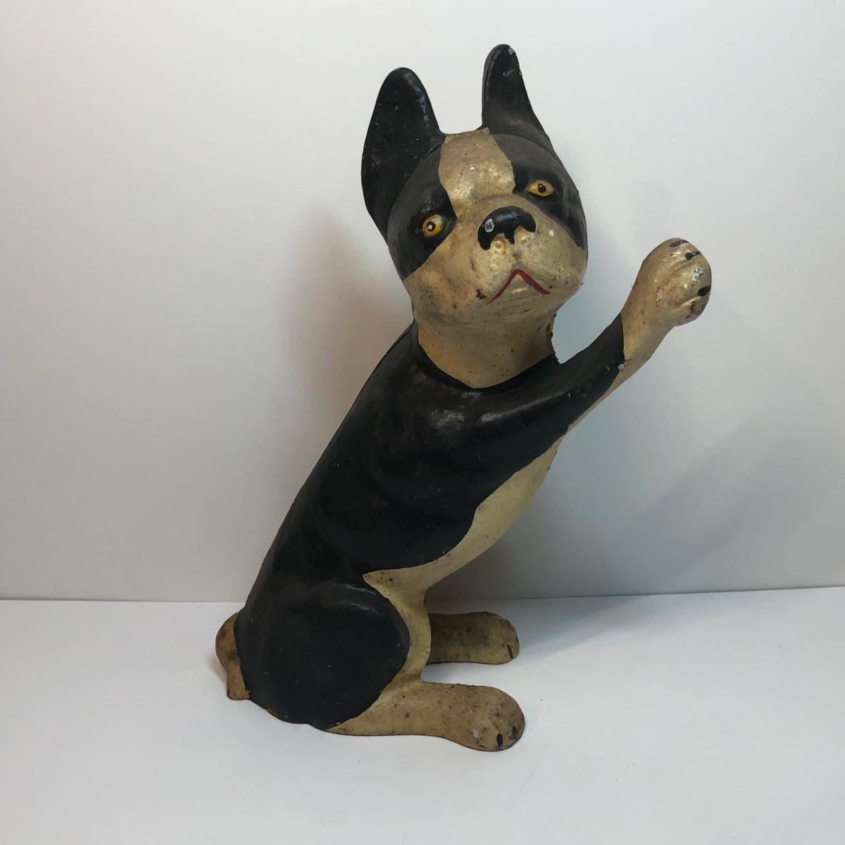 LOT 167M: Painted Cast Iron Boston Terrier Door Stop w/ Paw Up