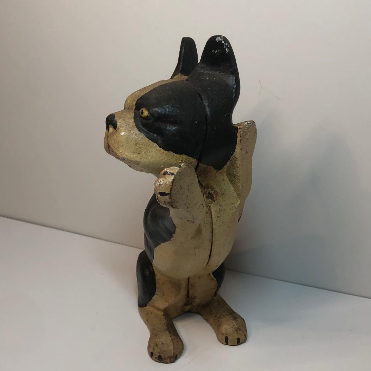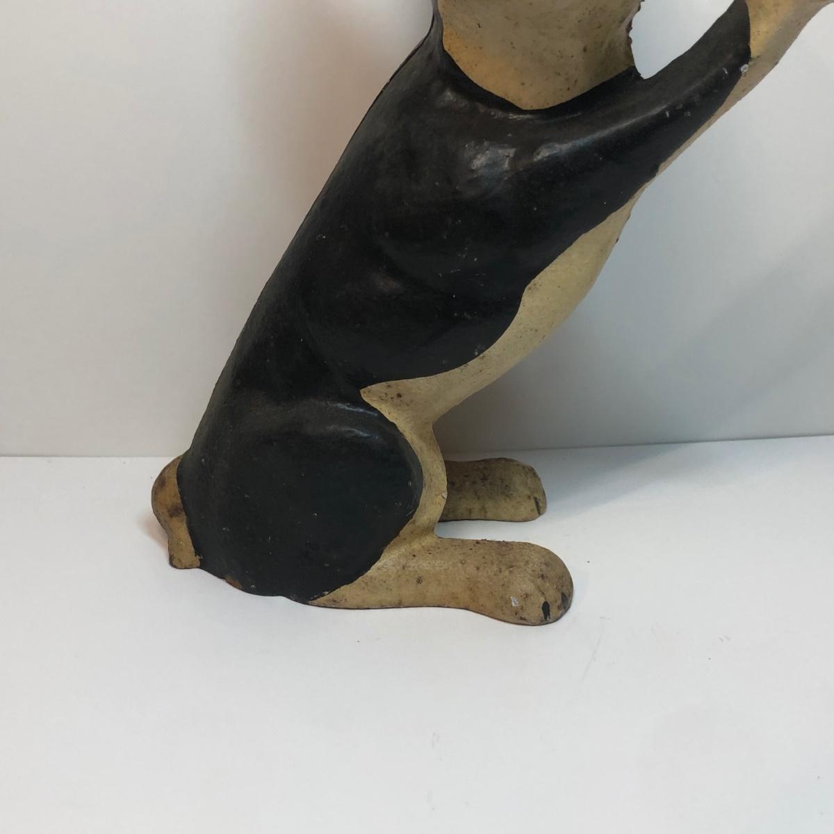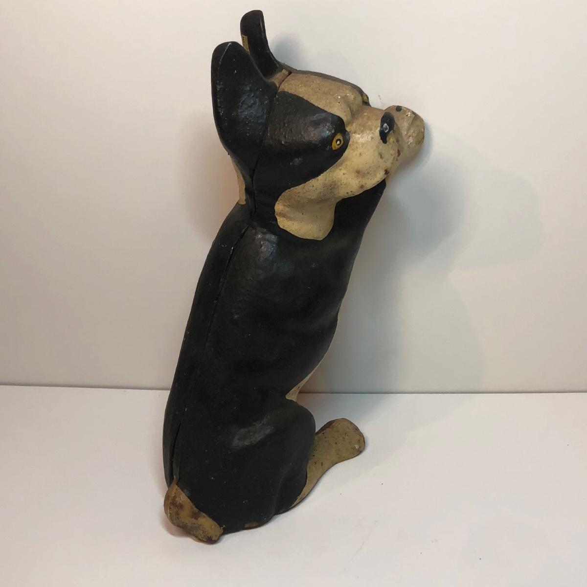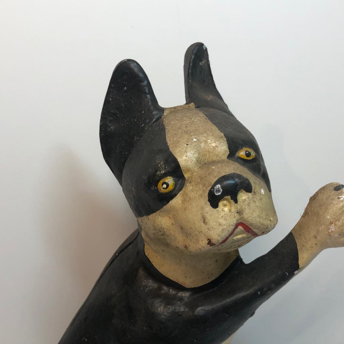 LOT 167M: Painted Cast Iron Boston Terrier Door Stop w/ Paw Up