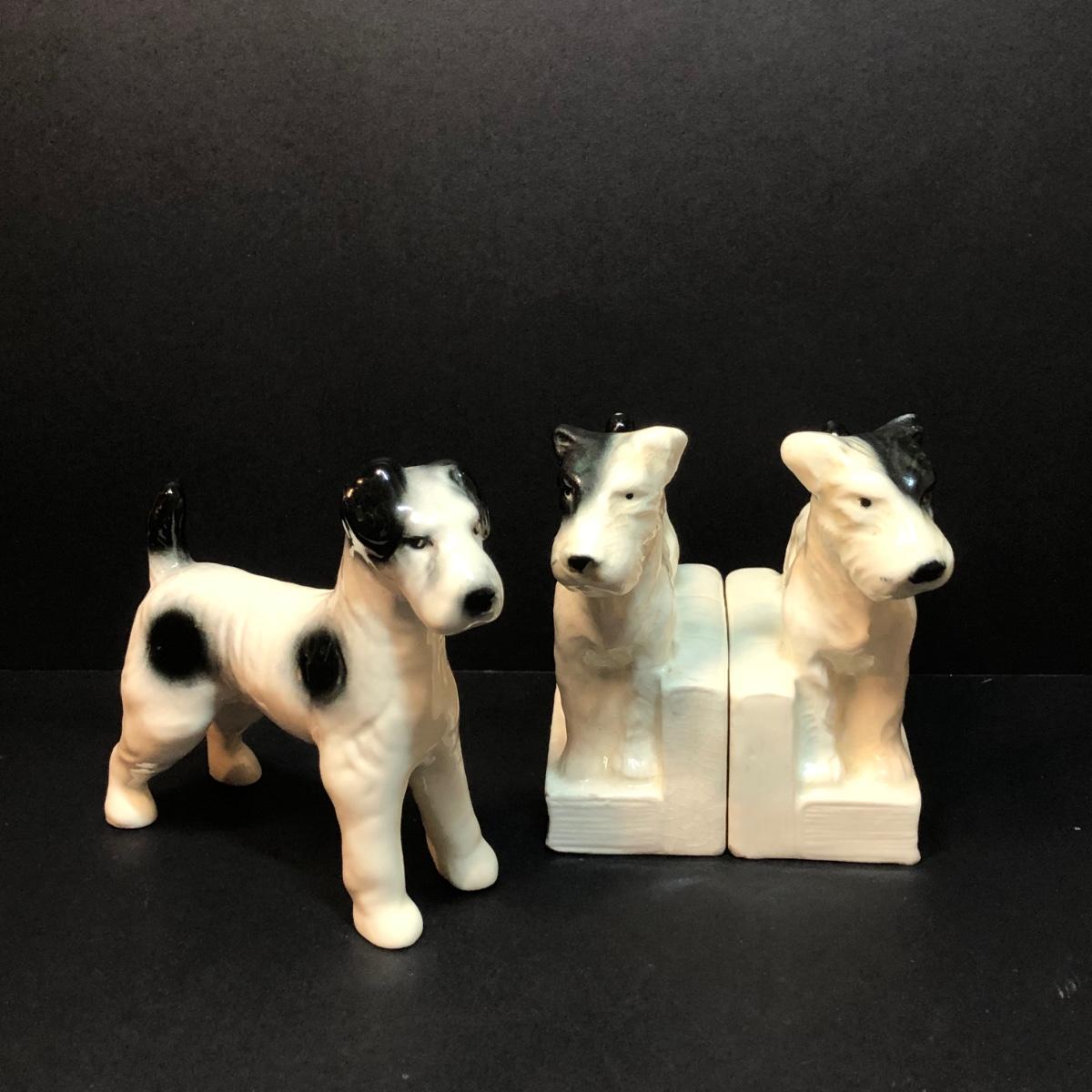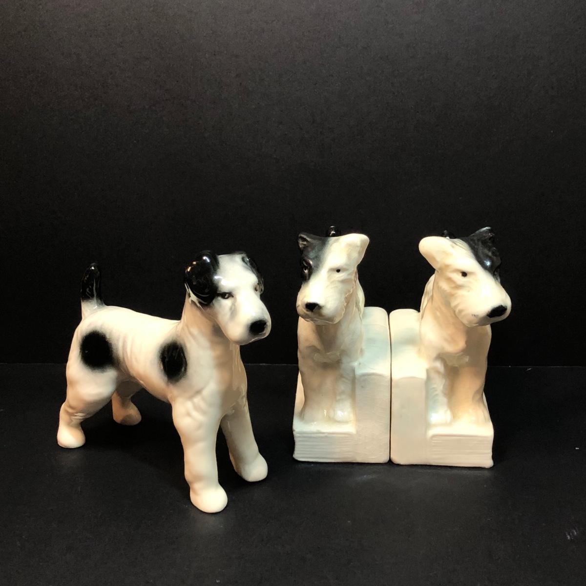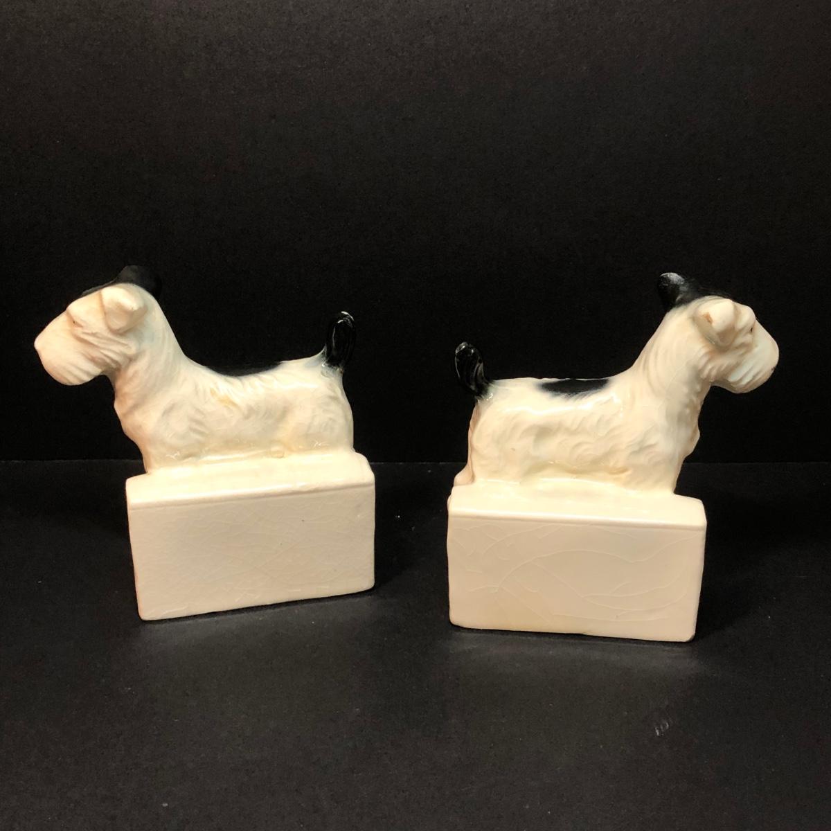 LOT 183M: Porcelain Scottish Terrier Figure & Pair of Bookends