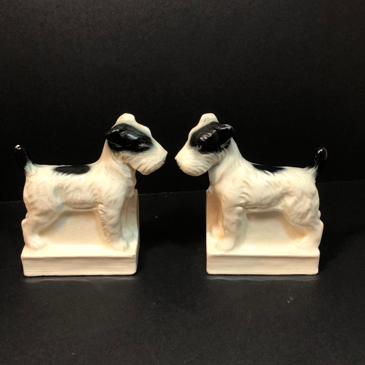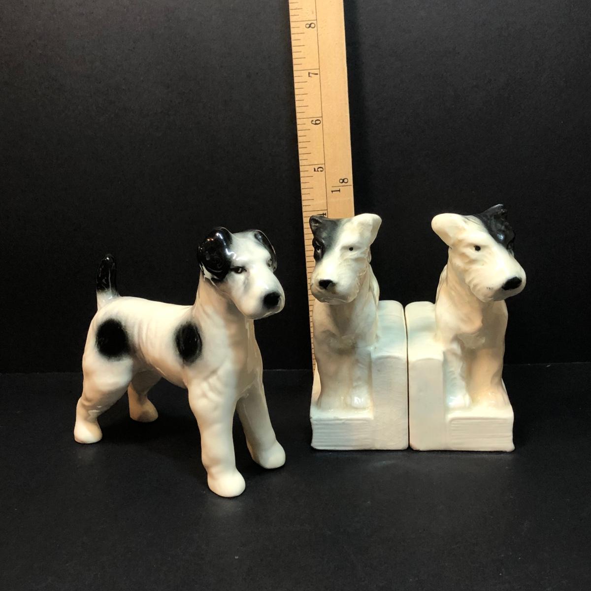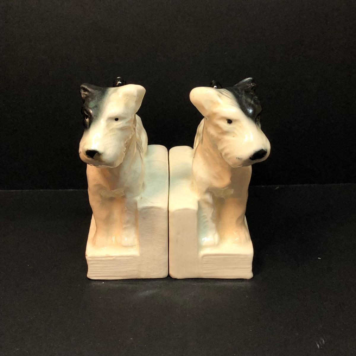 LOT 183M: Porcelain Scottish Terrier Figure & Pair of Bookends