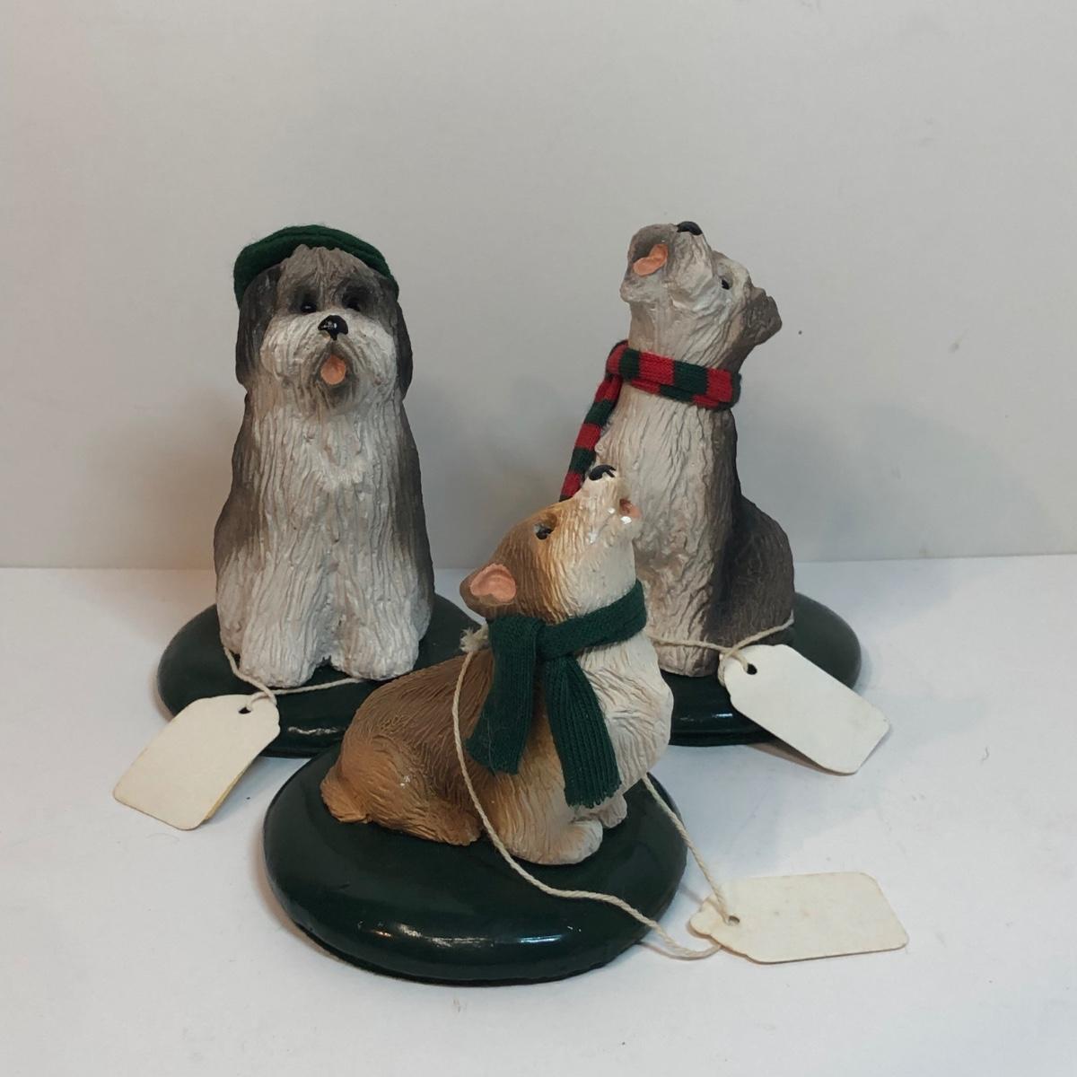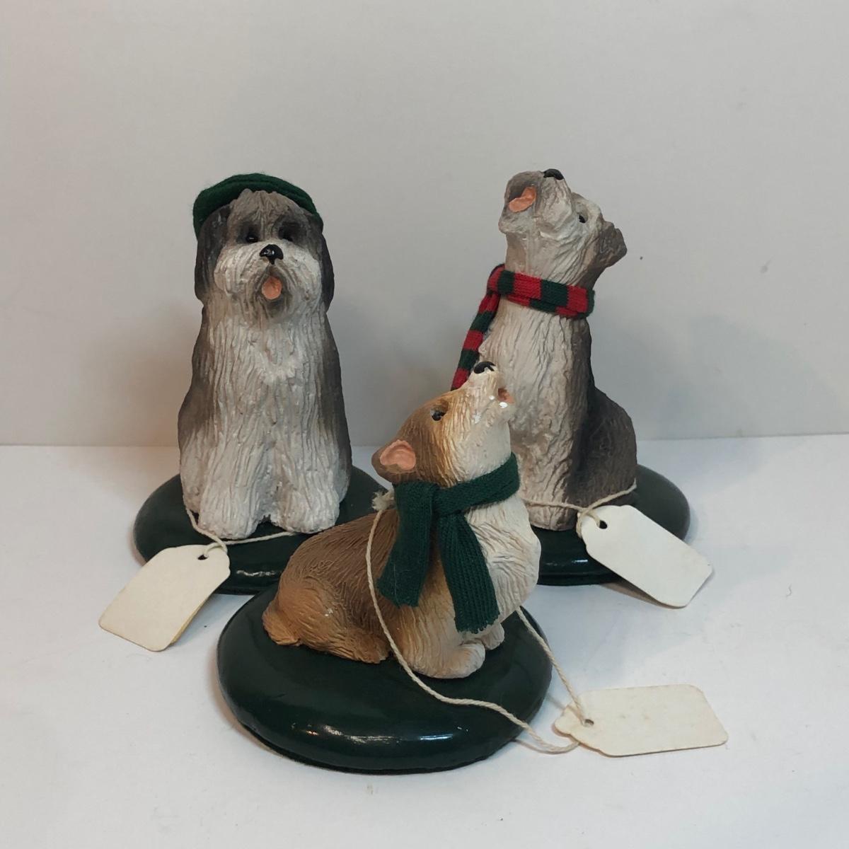 LOT 197M: 1992 Byers' Choice "The Carolers" Dog Figures - Dog w/ Hat, Corgi & Dog w/ Scarf