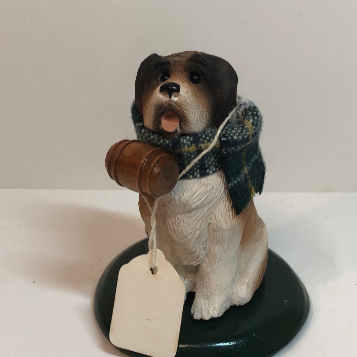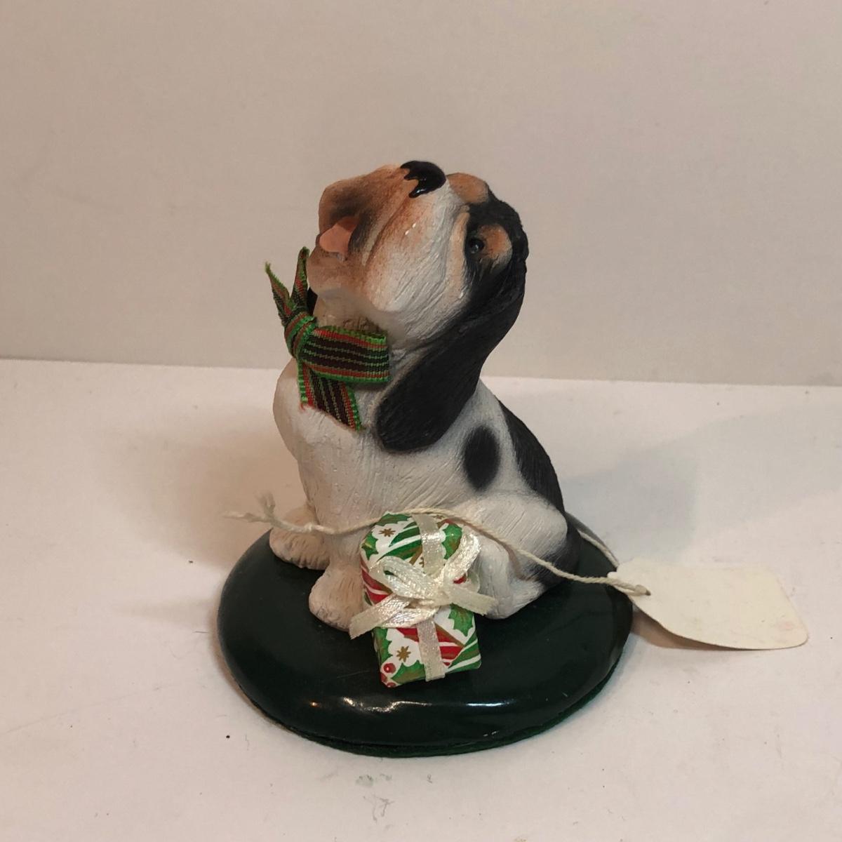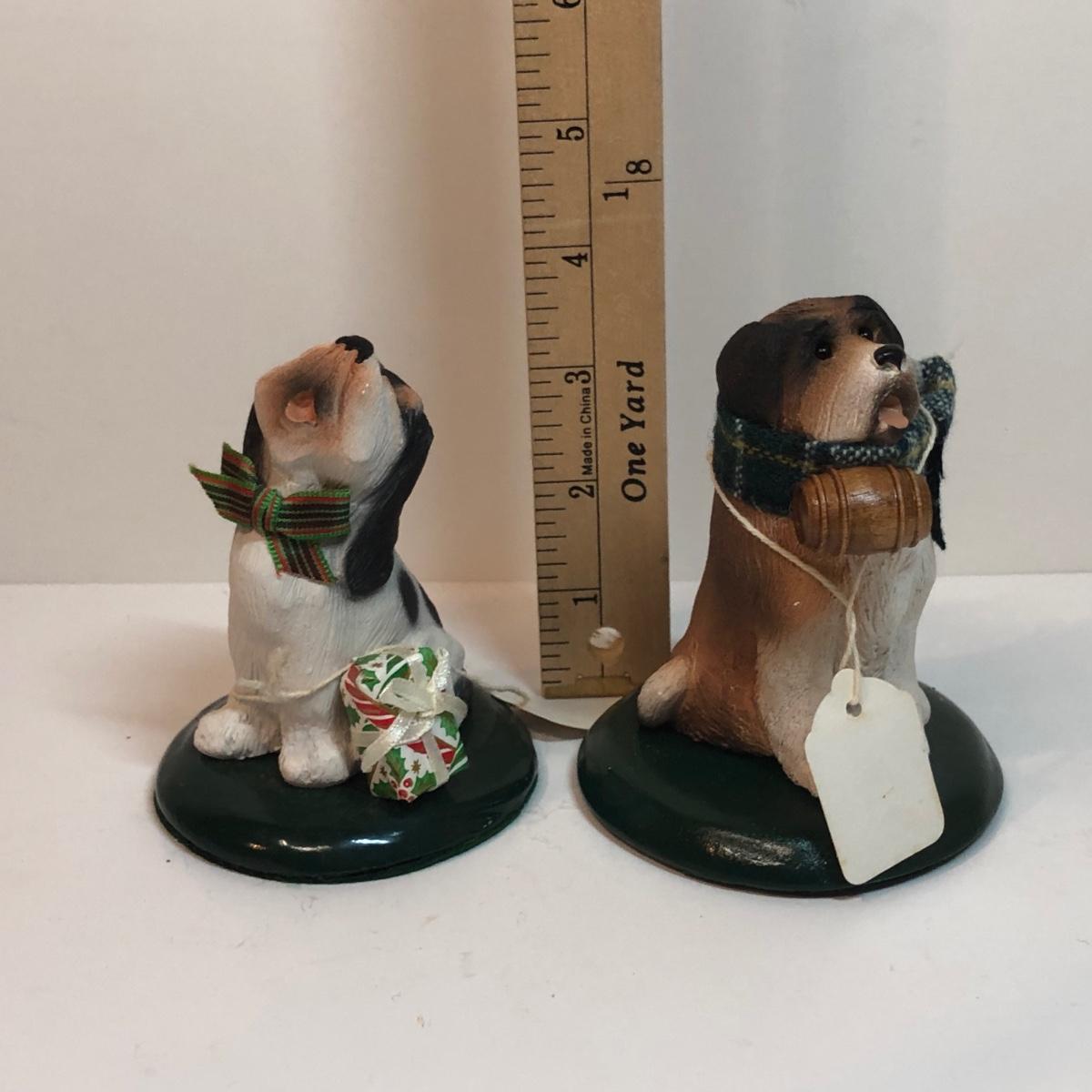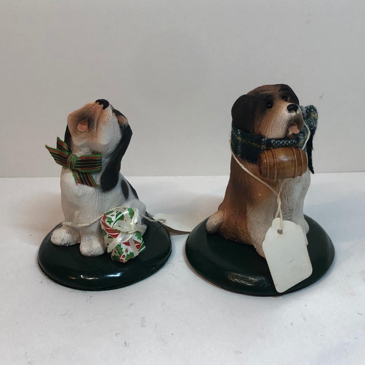 LOT 198M: 1992 Byers' Choice "The Carolers" Dog Figures - St. Bernard & Dog w/ Gift