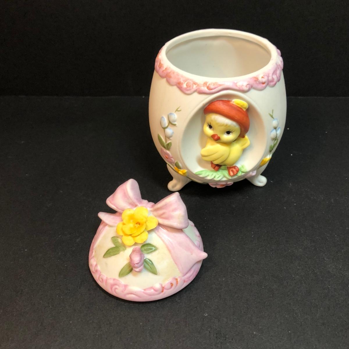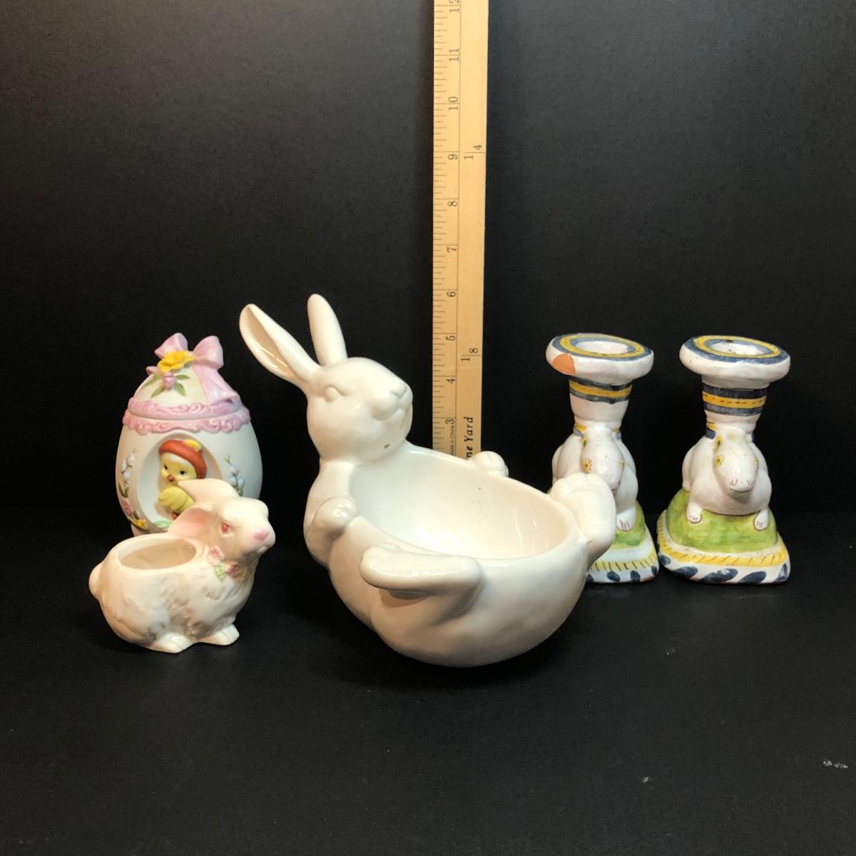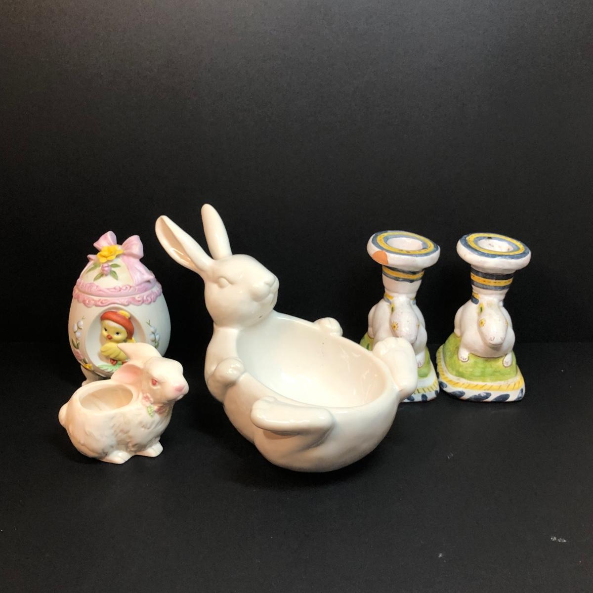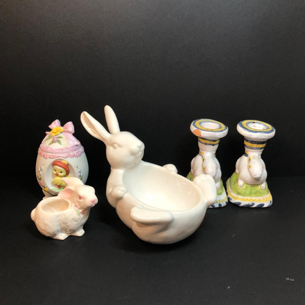 LOT 204M: Easter Collection - Lefton Egg #01468, Pottery Barn Bunny Bowl, Handpainted Candle Holders & More