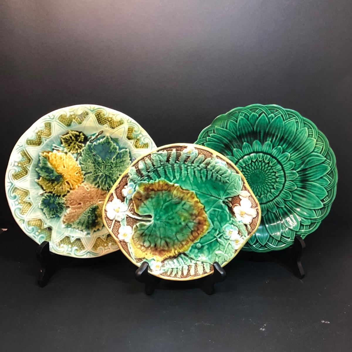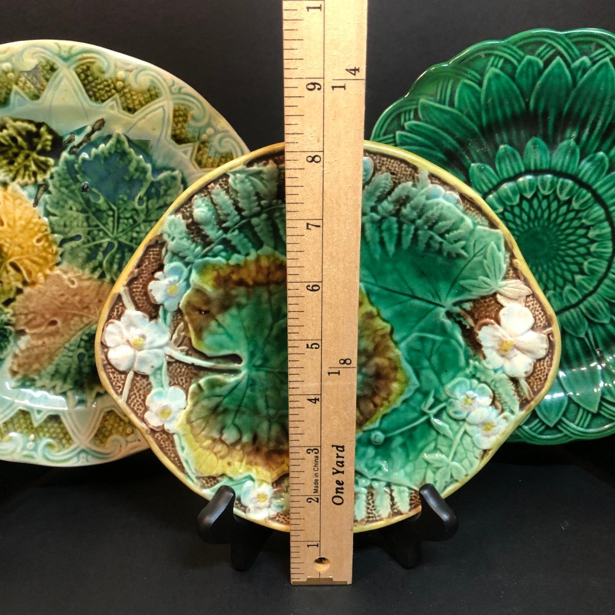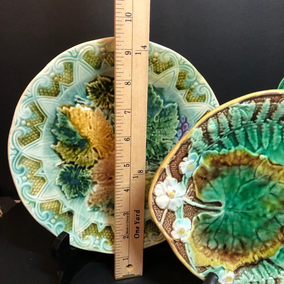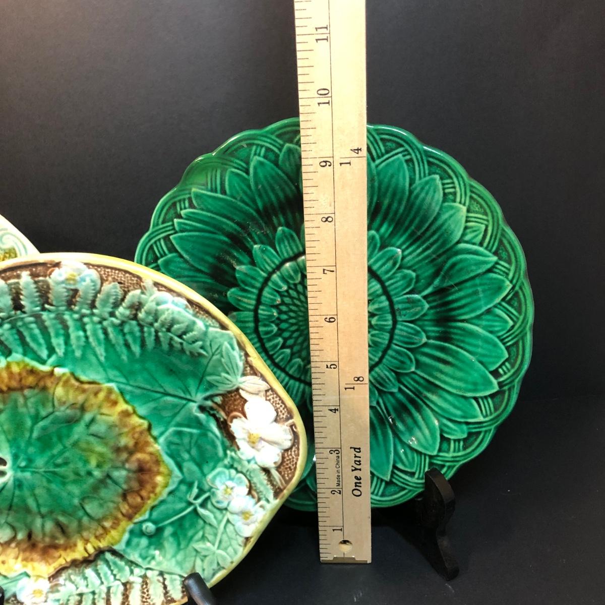 LOT 210M: Vintage Majolica Leaf Plates & Green Sunflower Plate