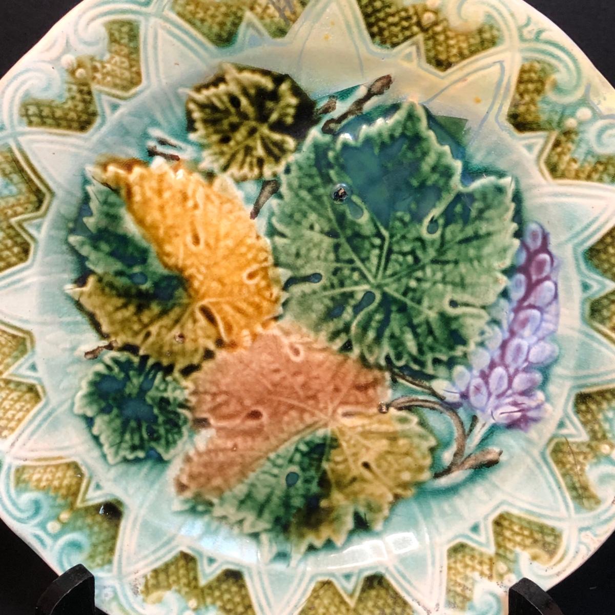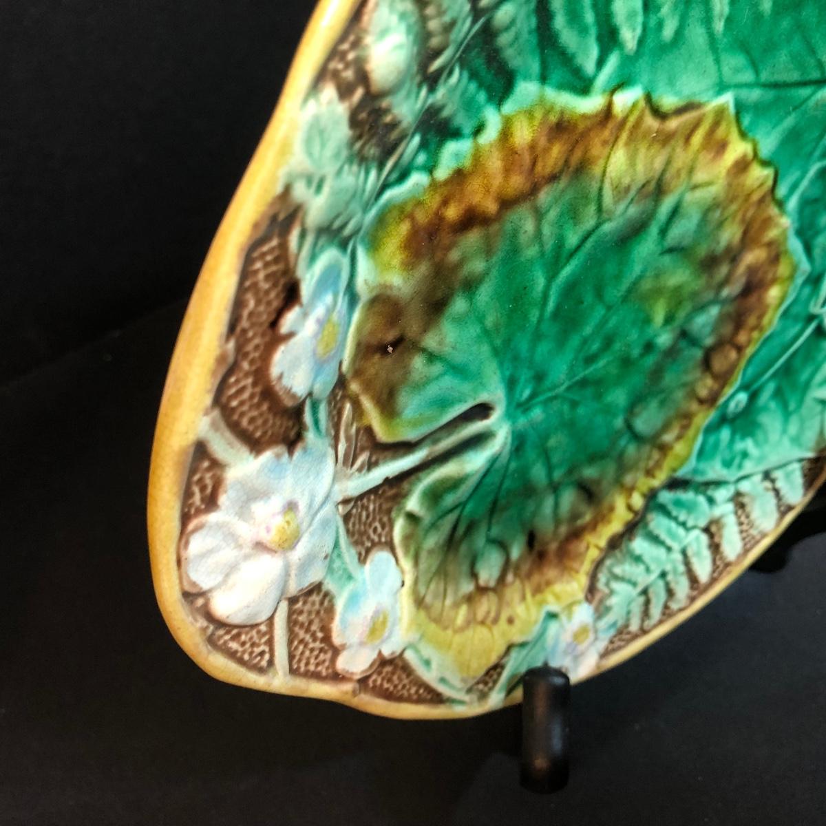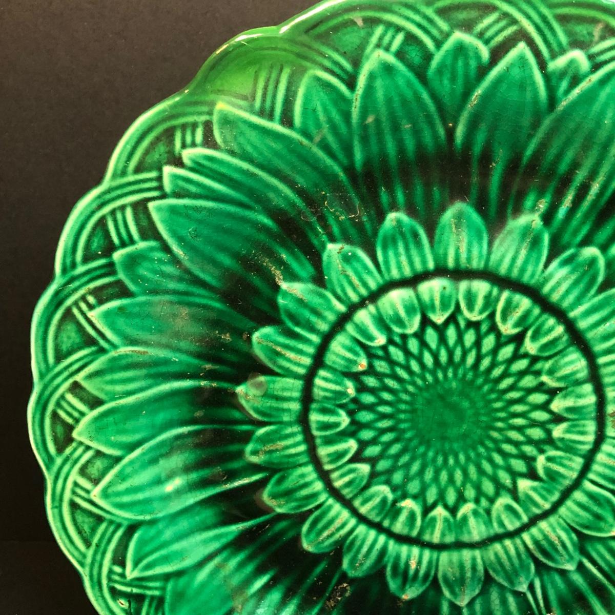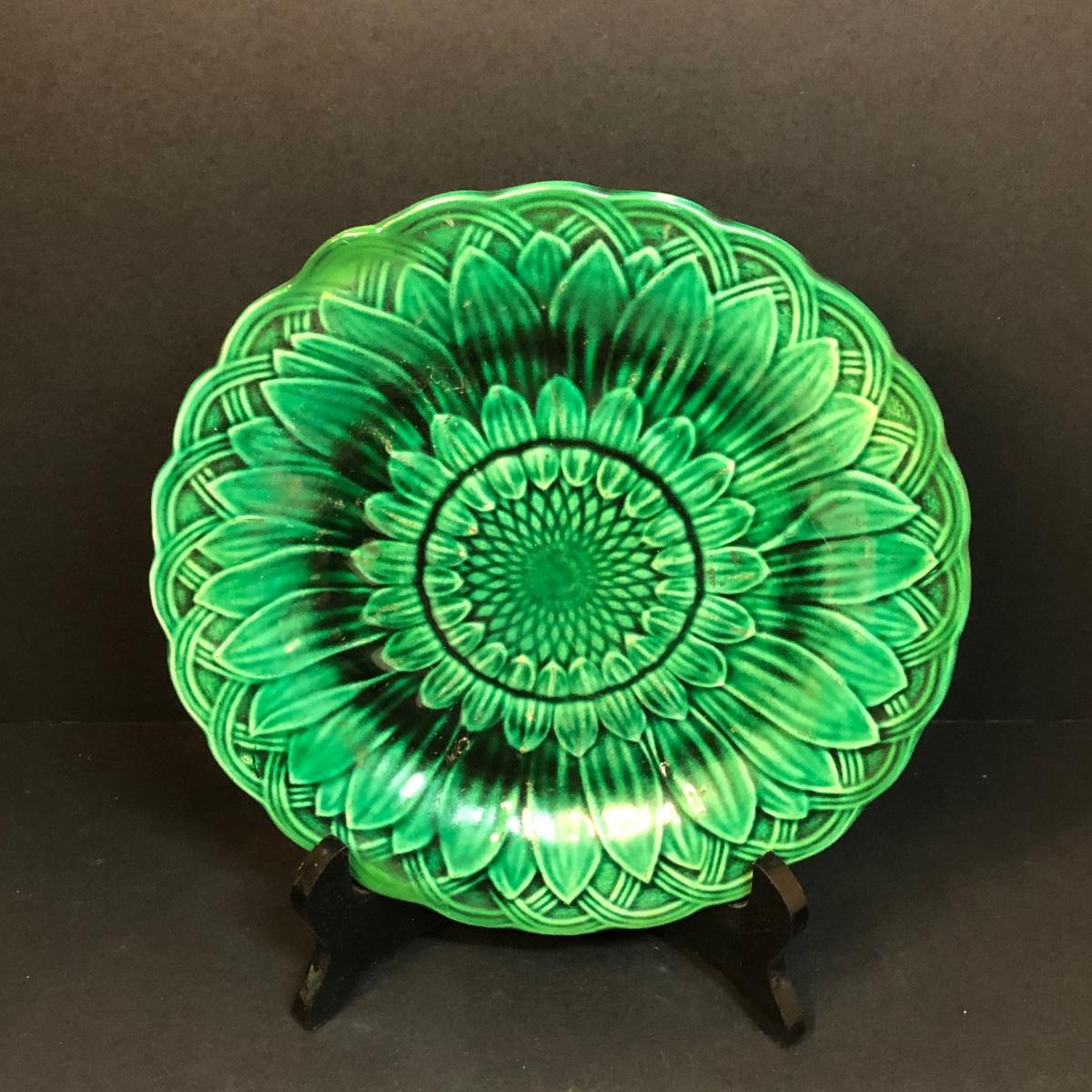LOT 210M: Vintage Majolica Leaf Plates & Green Sunflower Plate