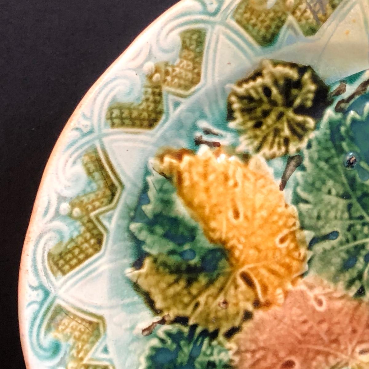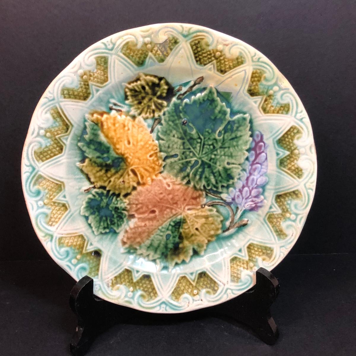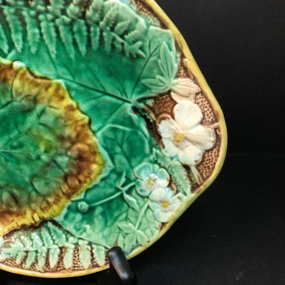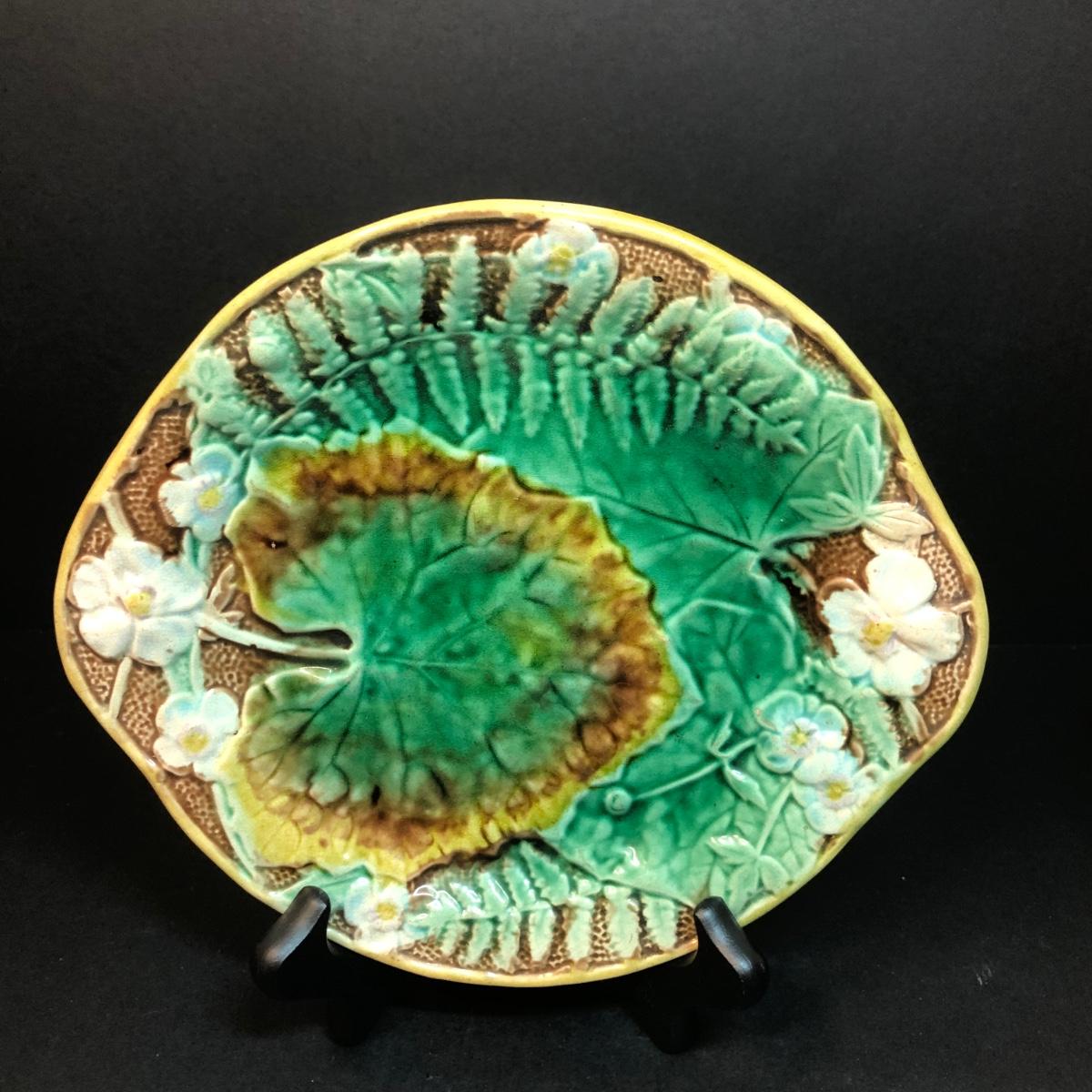 LOT 210M: Vintage Majolica Leaf Plates & Green Sunflower Plate