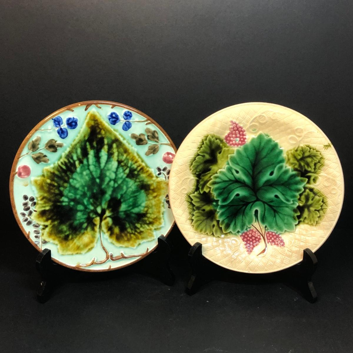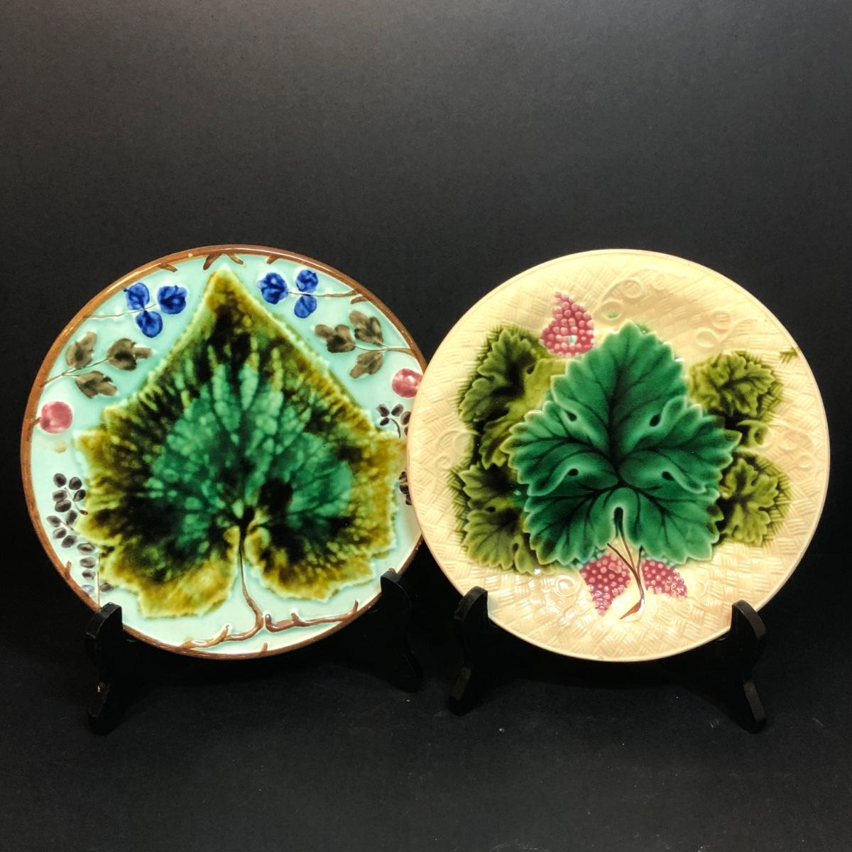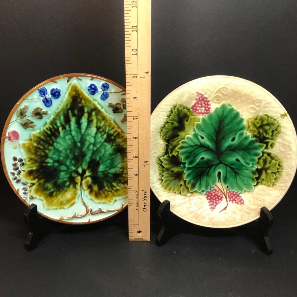 LOT 211M: Vintage Majolica Leaf & Grape Plates - Josef Steidl Znaim & Unmarked