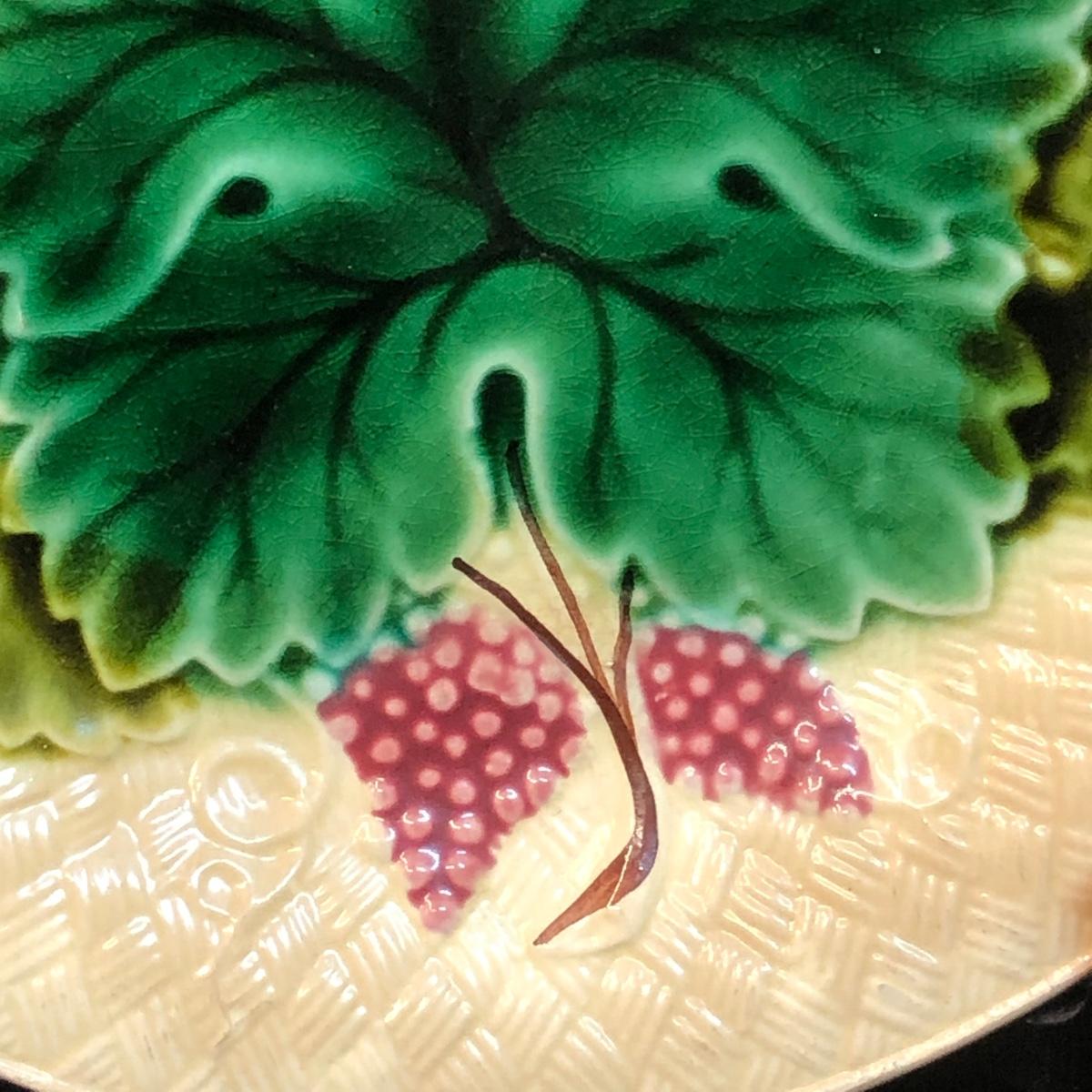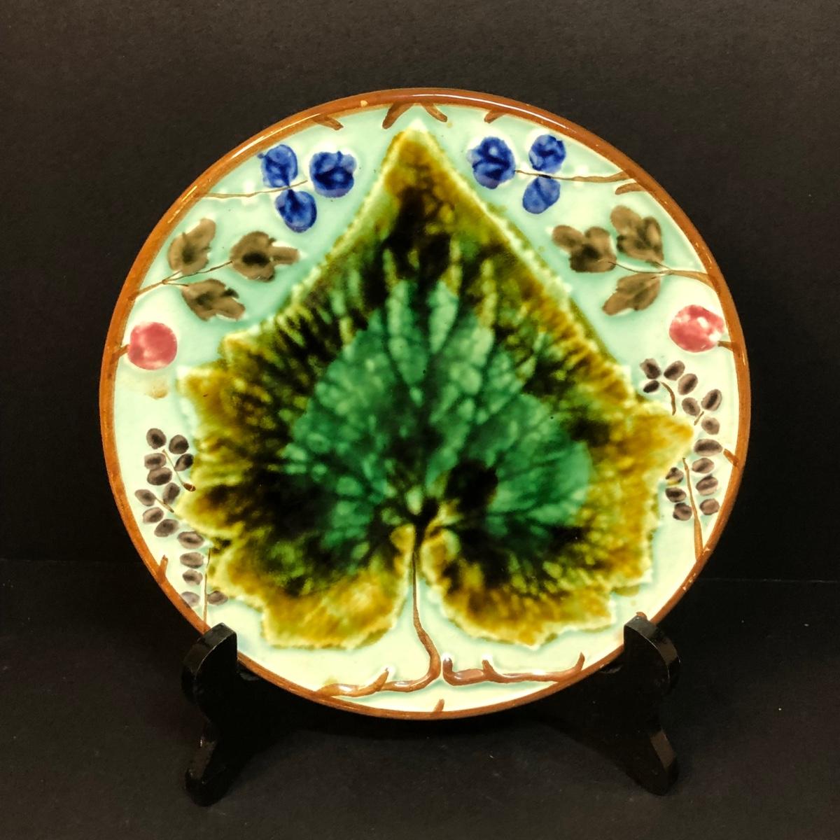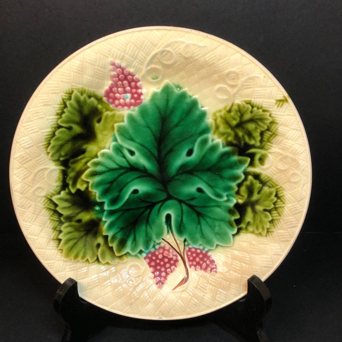 LOT 211M: Vintage Majolica Leaf & Grape Plates - Josef Steidl Znaim & Unmarked