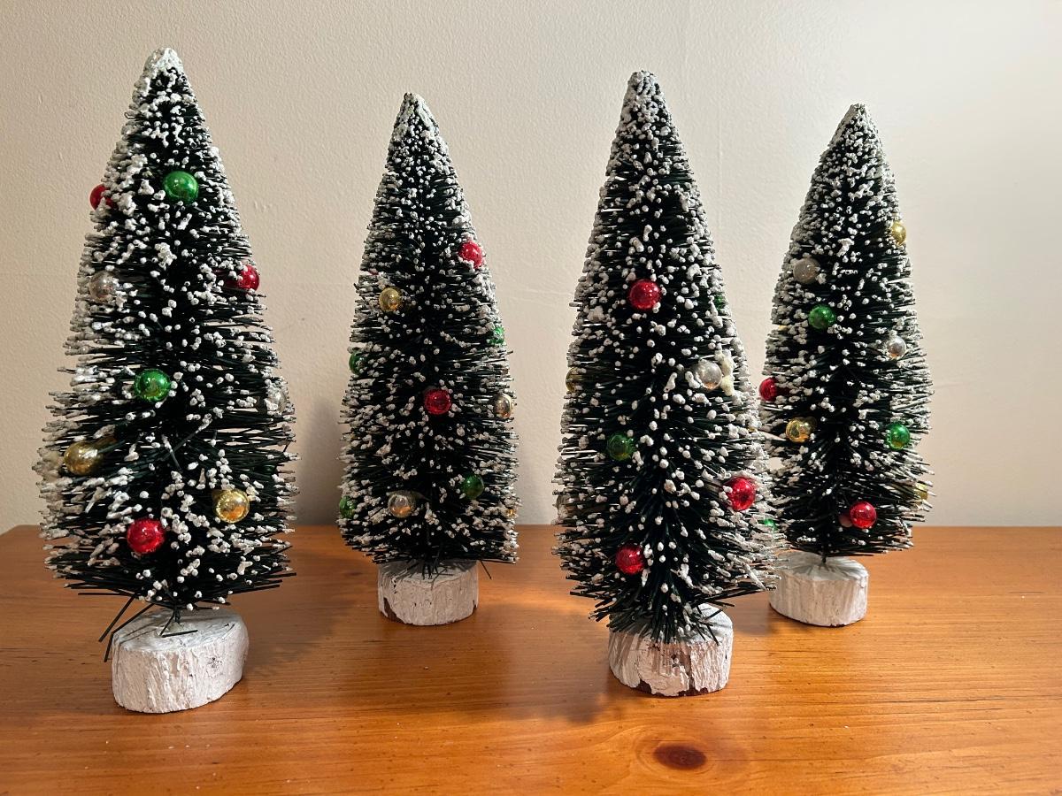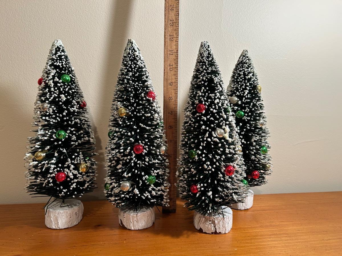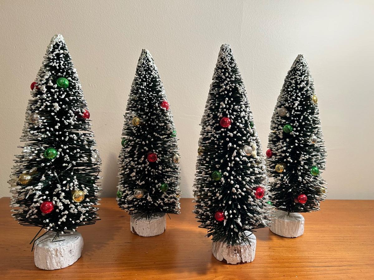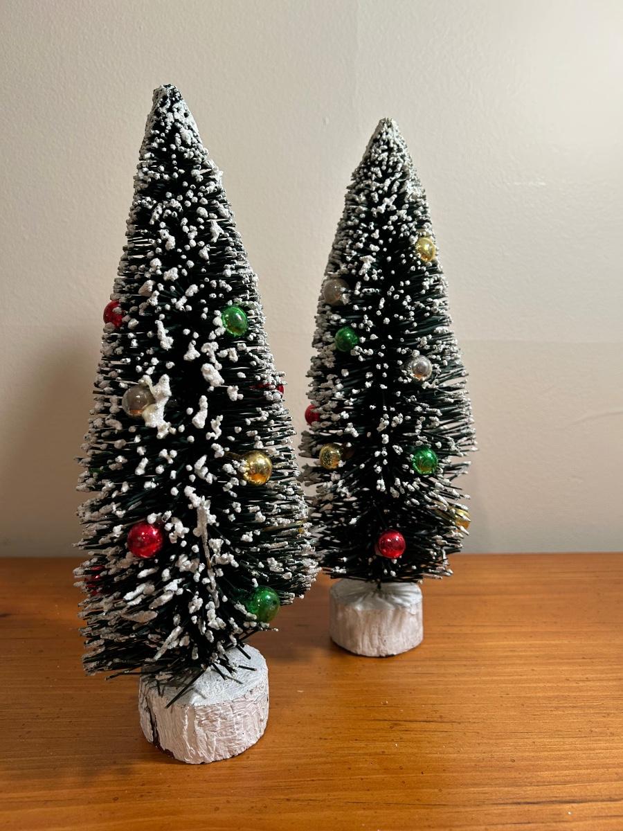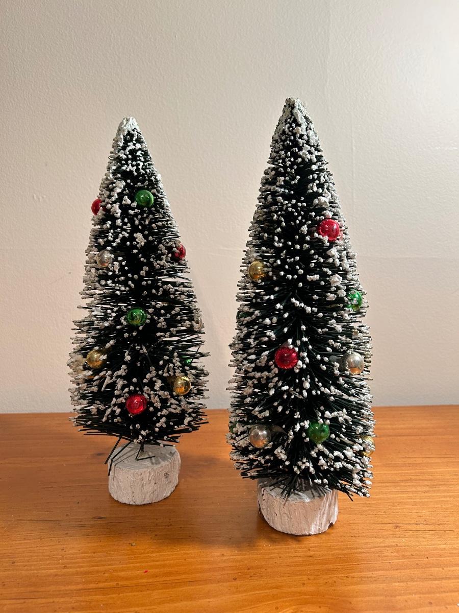 LOT 219C: Vintage Bottle Brush Trees w/ Snow & Bulbs
