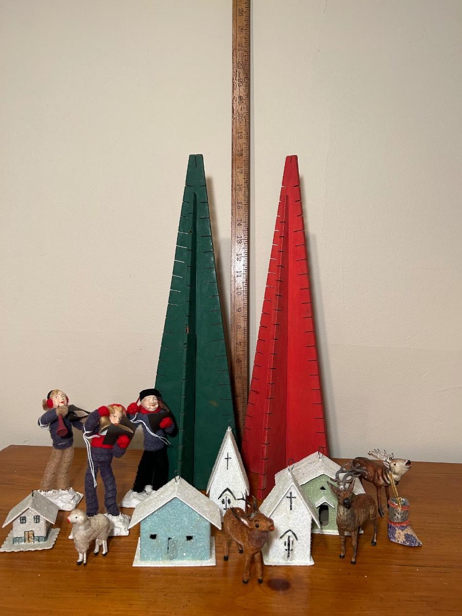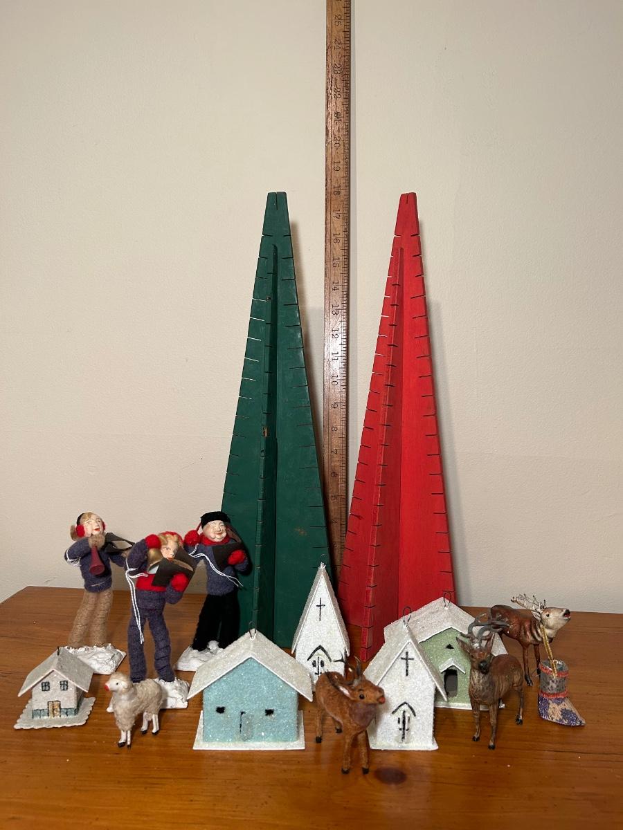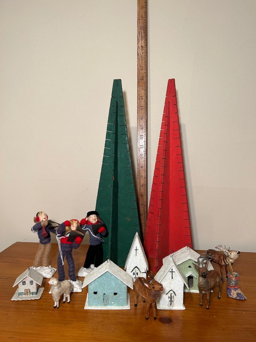 LOT 220C: Christmas Collection - Card Trees, Village Buildings, Miniature Reindeer & Felt Carolers