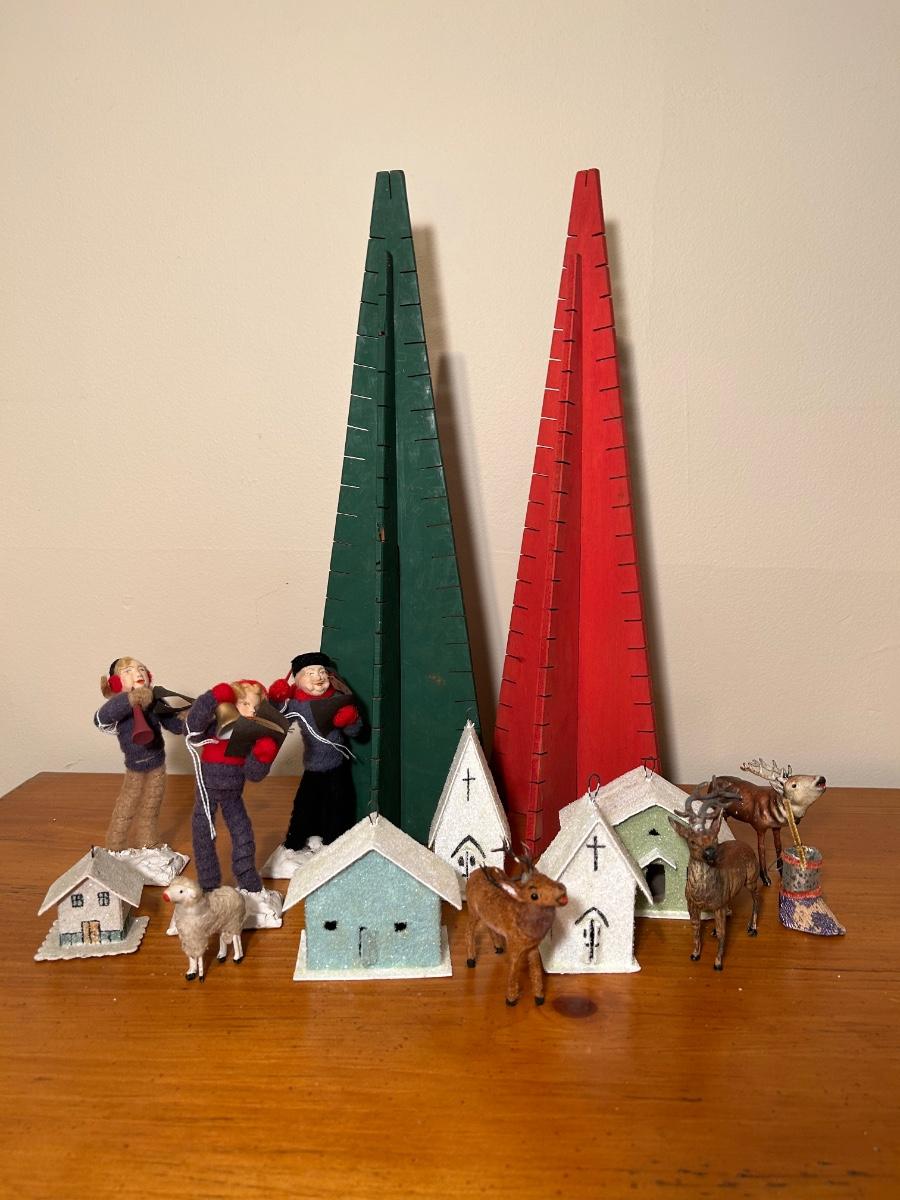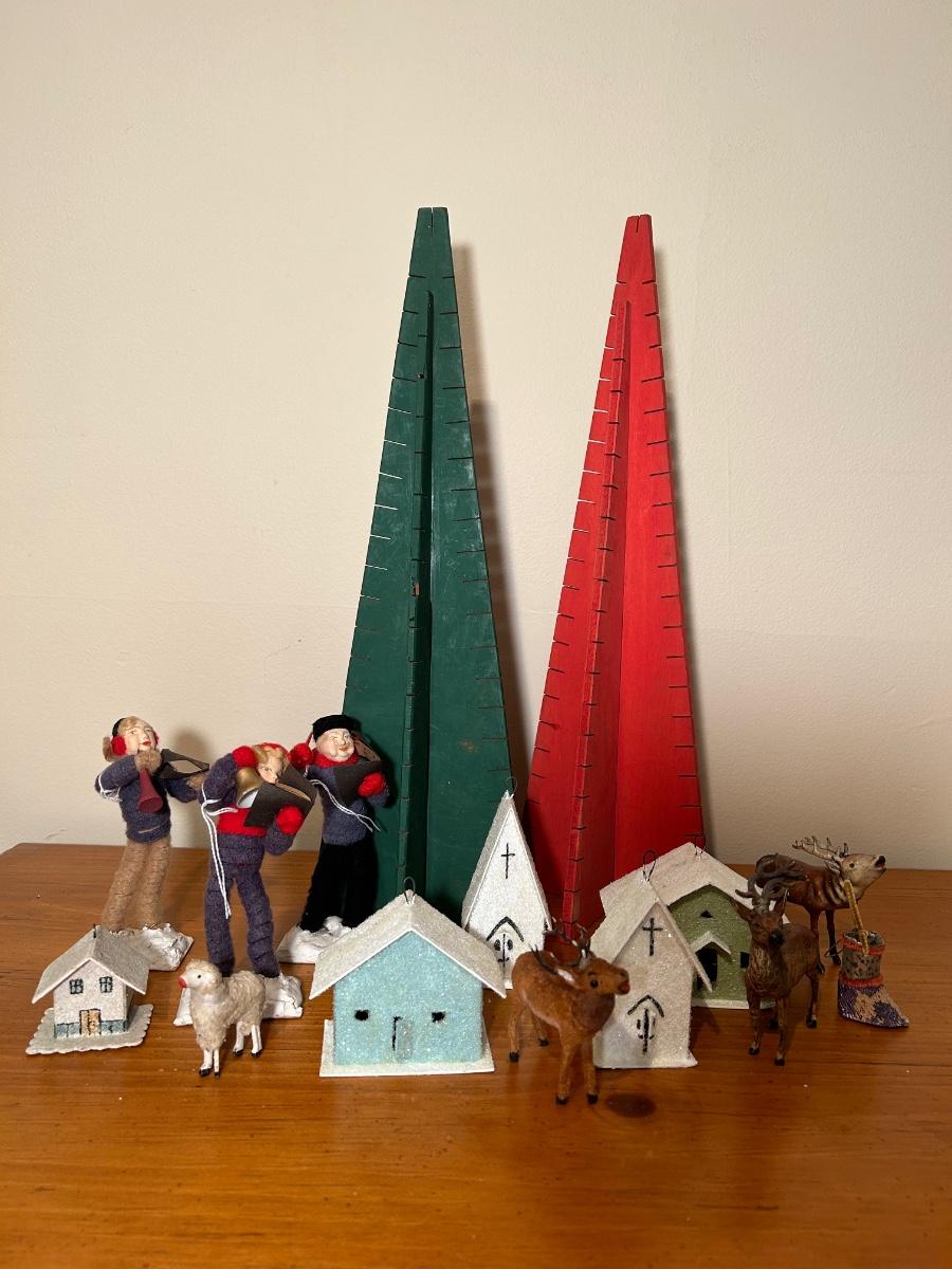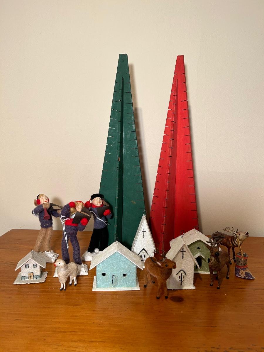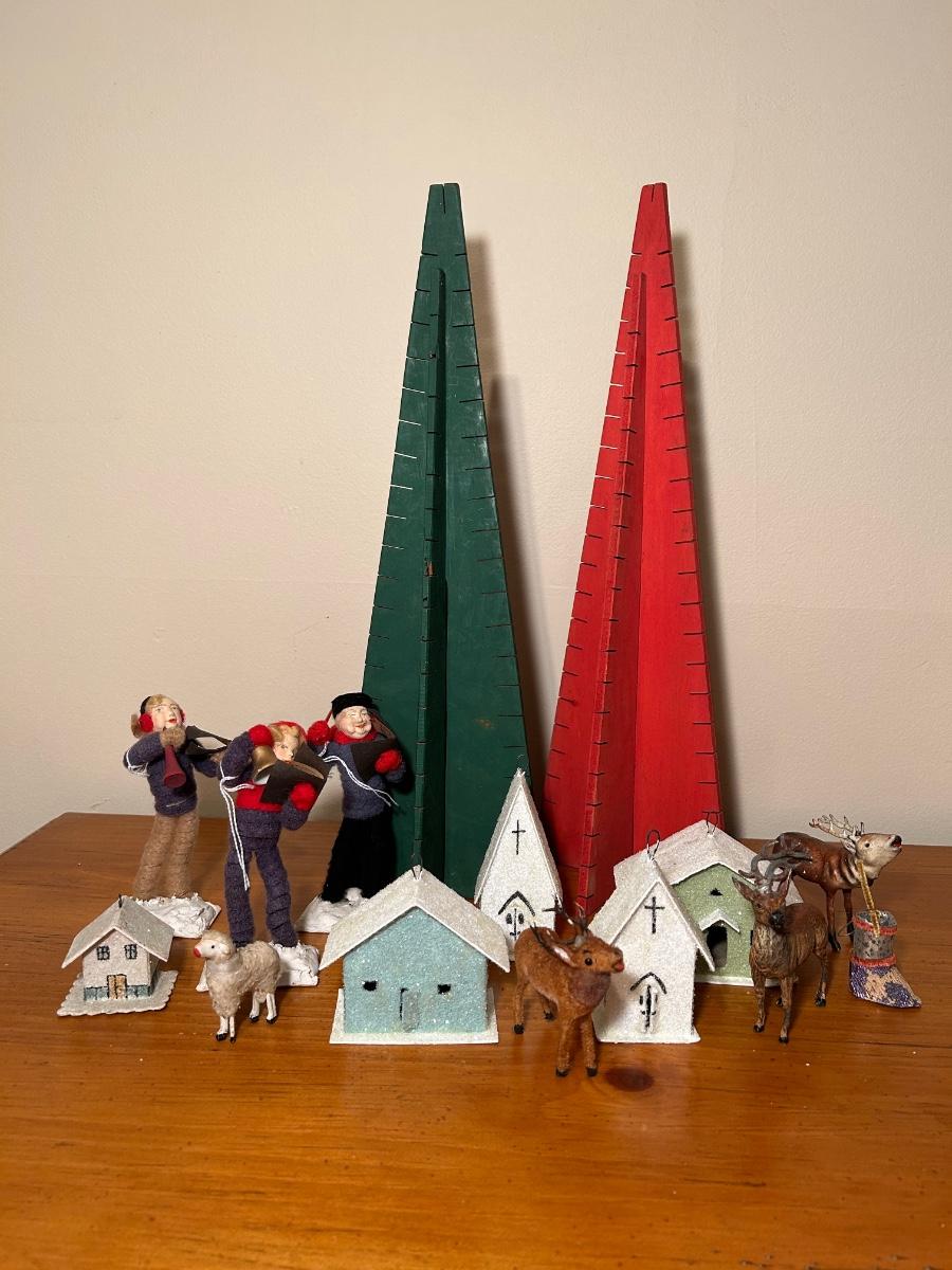 LOT 220C: Christmas Collection - Card Trees, Village Buildings, Miniature Reindeer & Felt Carolers