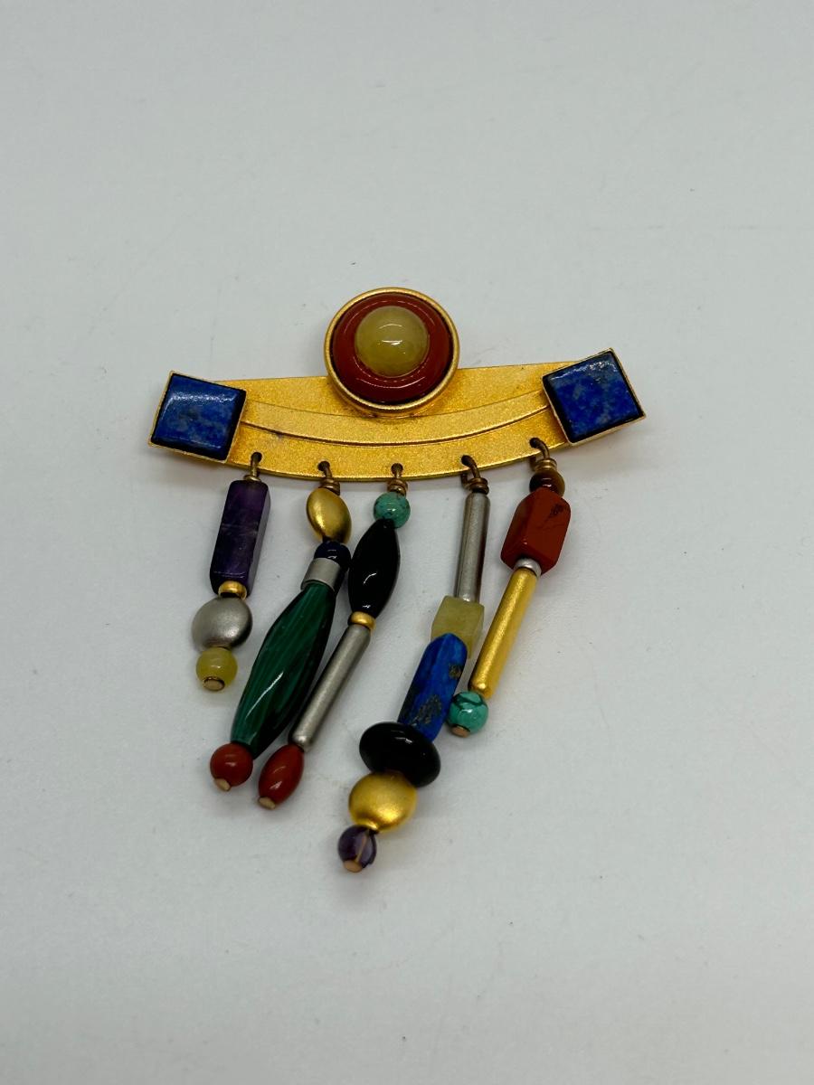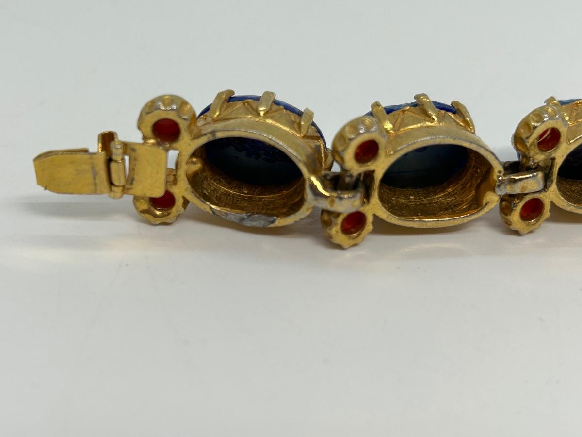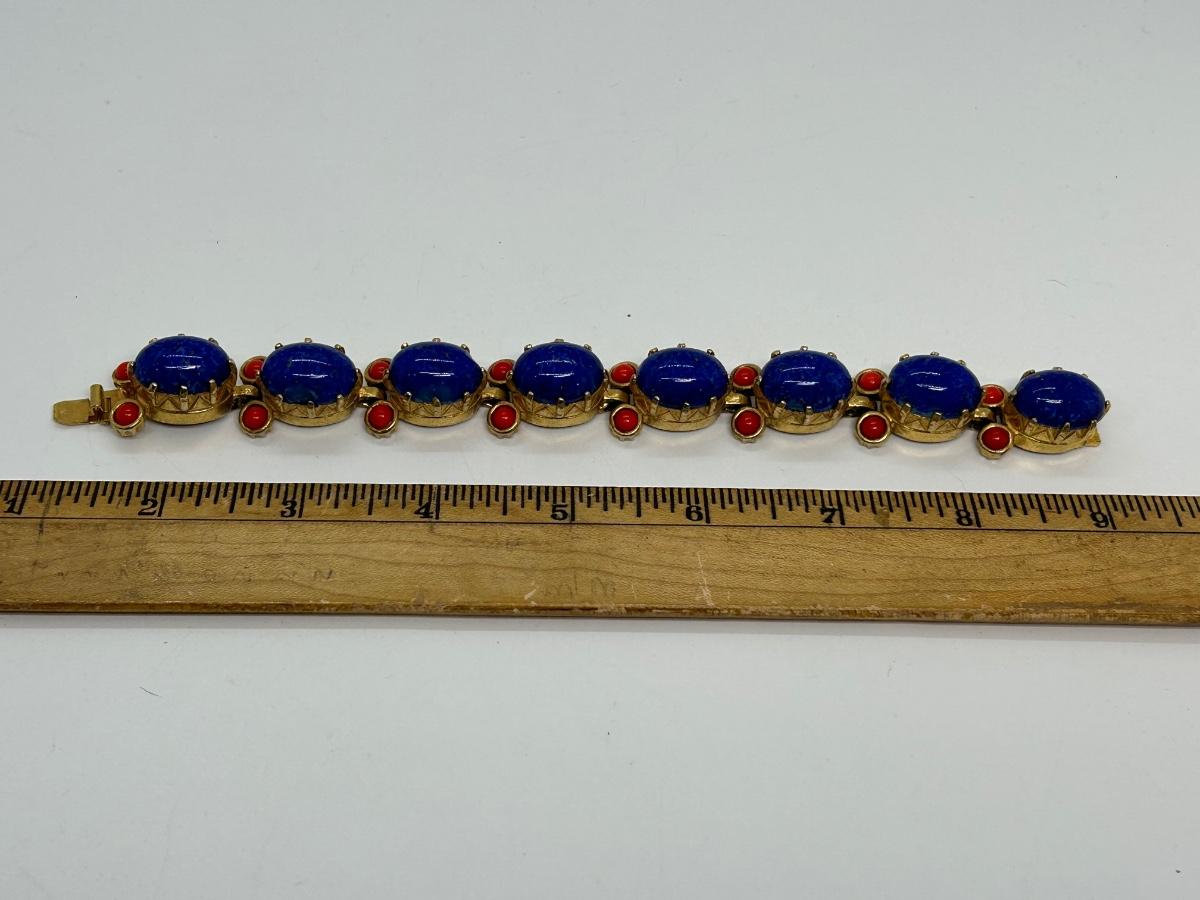 LOT 239C: Simulated Gemstone Bracelet, 1/20th KT Gold Fill Earrings w/ 14KT Gold Posts & Brooch
