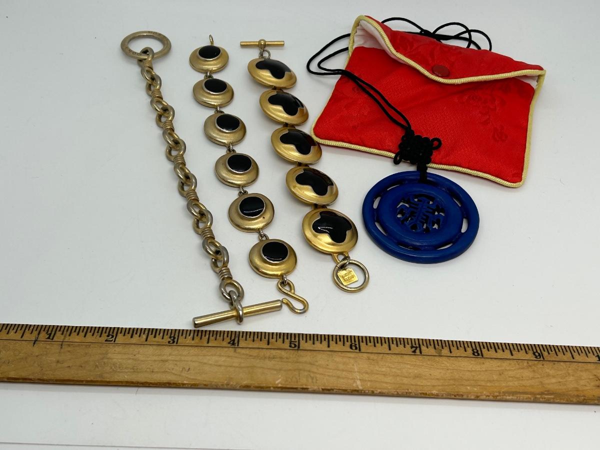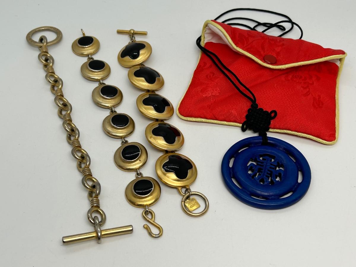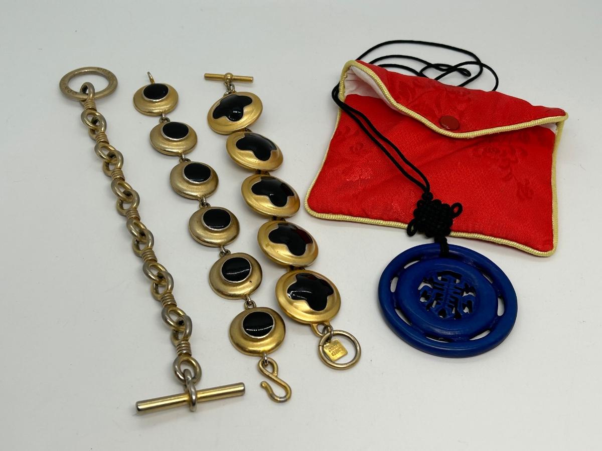 LOT 242C: Blue Symbol Pendant Necklace w/ Gold Tone Bracelets - Anne Klein, DKNY & More