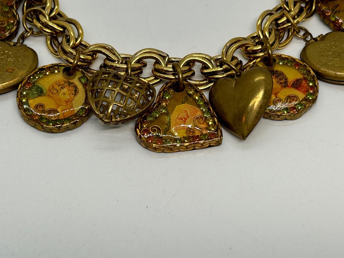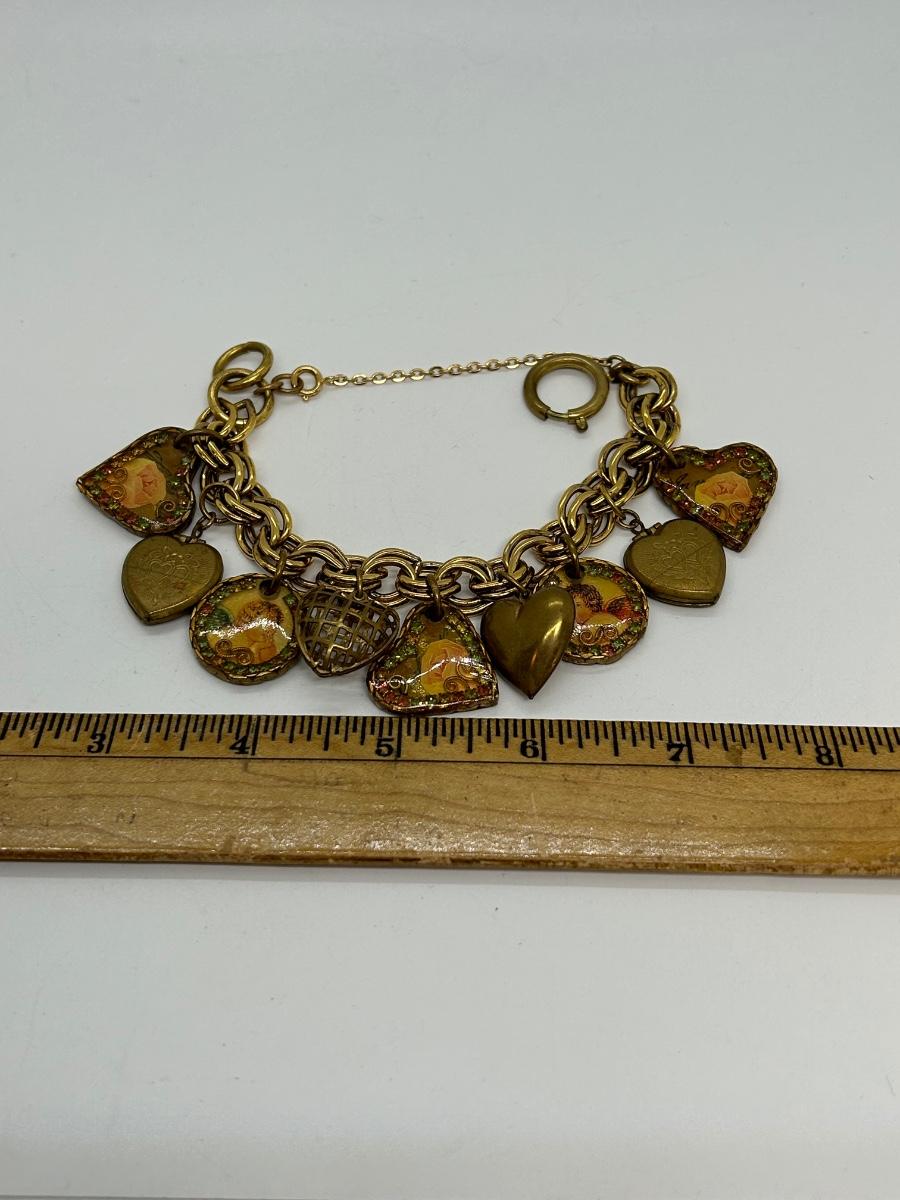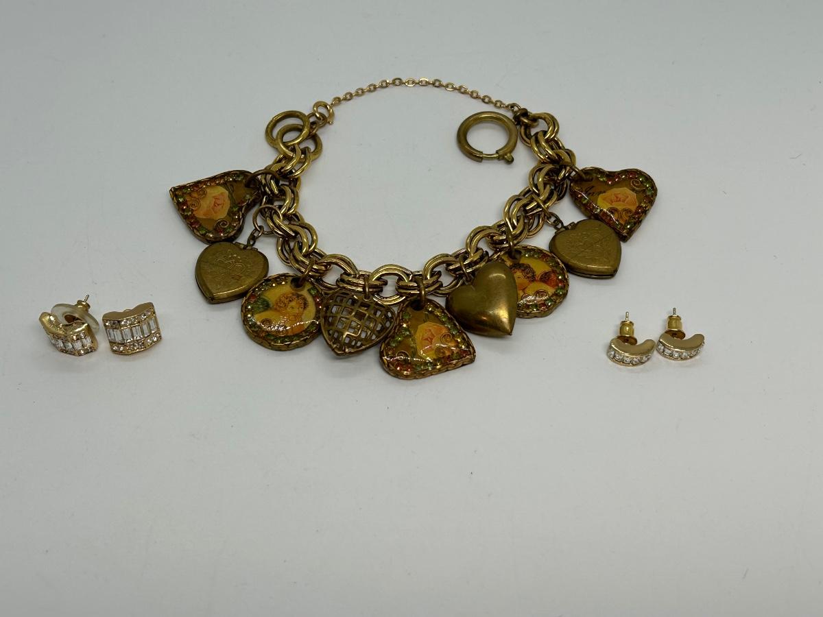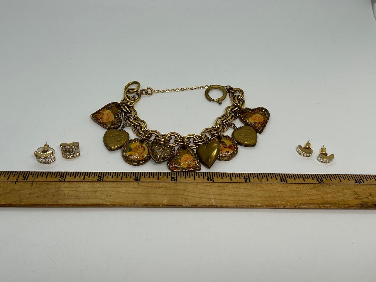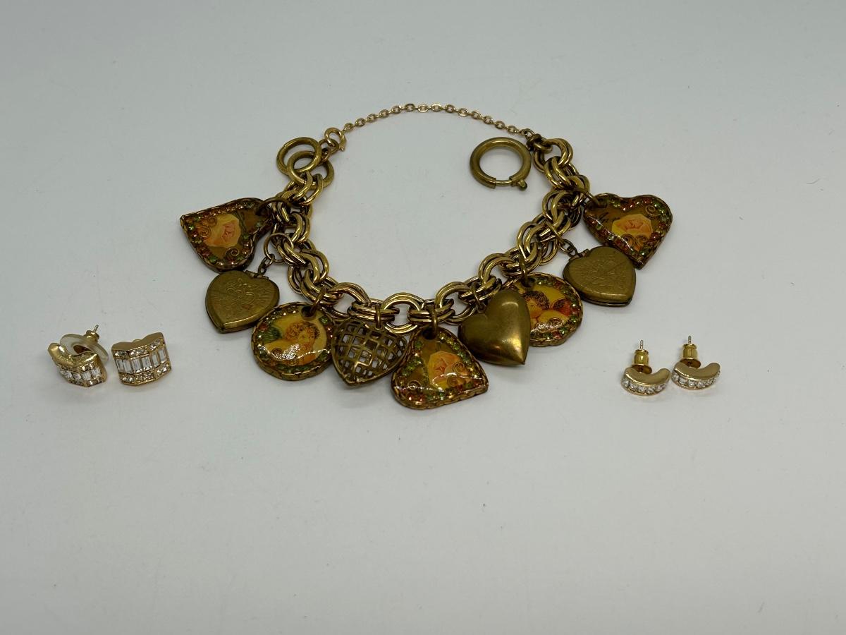 LOT 243C: Vintage Sweetheart Locket Charm Bracelet w/ 2 Pairs of Pierced Earrings
