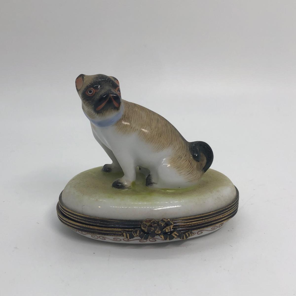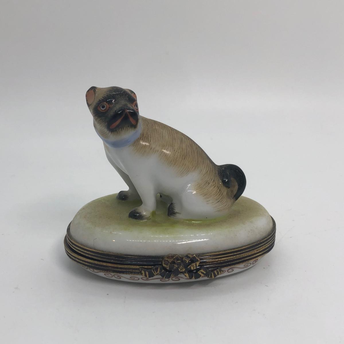 LOT 251M: Limoges France Hand Painted Pug Dog Trinket Box