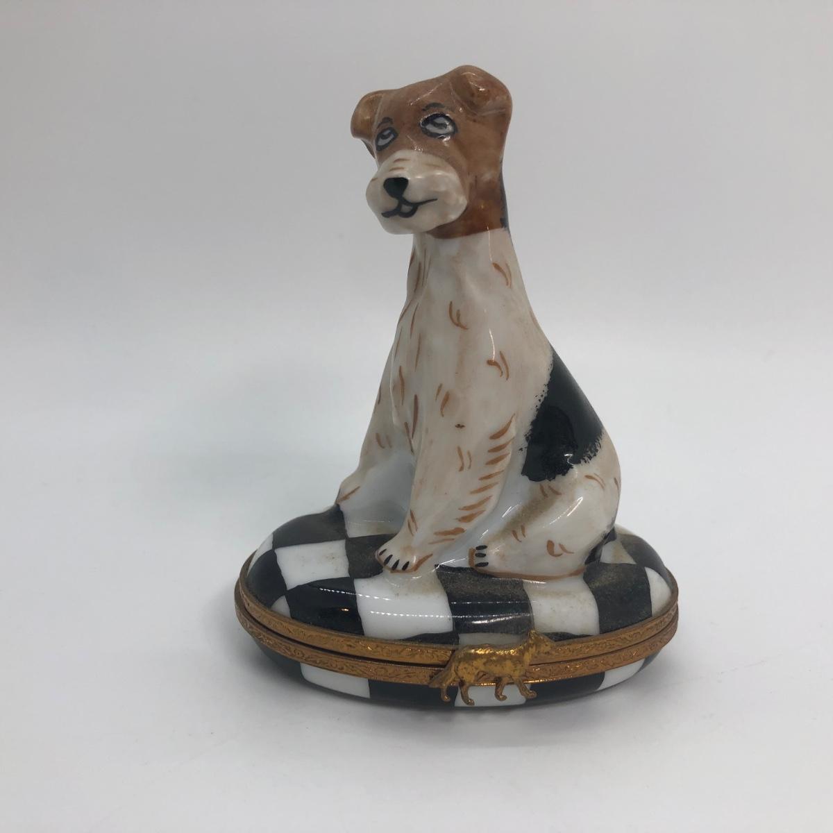 LOT 254M: Limoges France Hand Painted Fox Terrier Dog Trinket Box