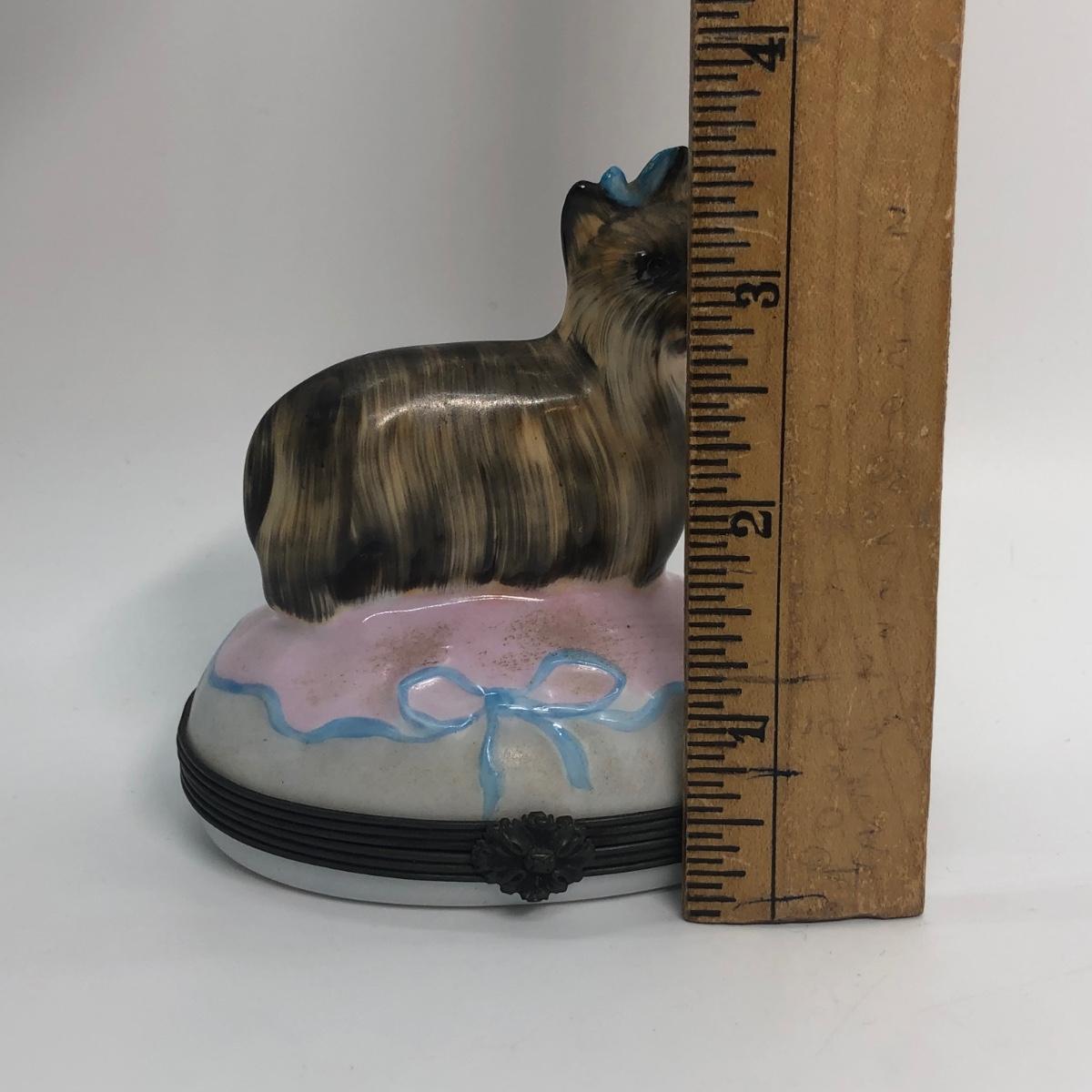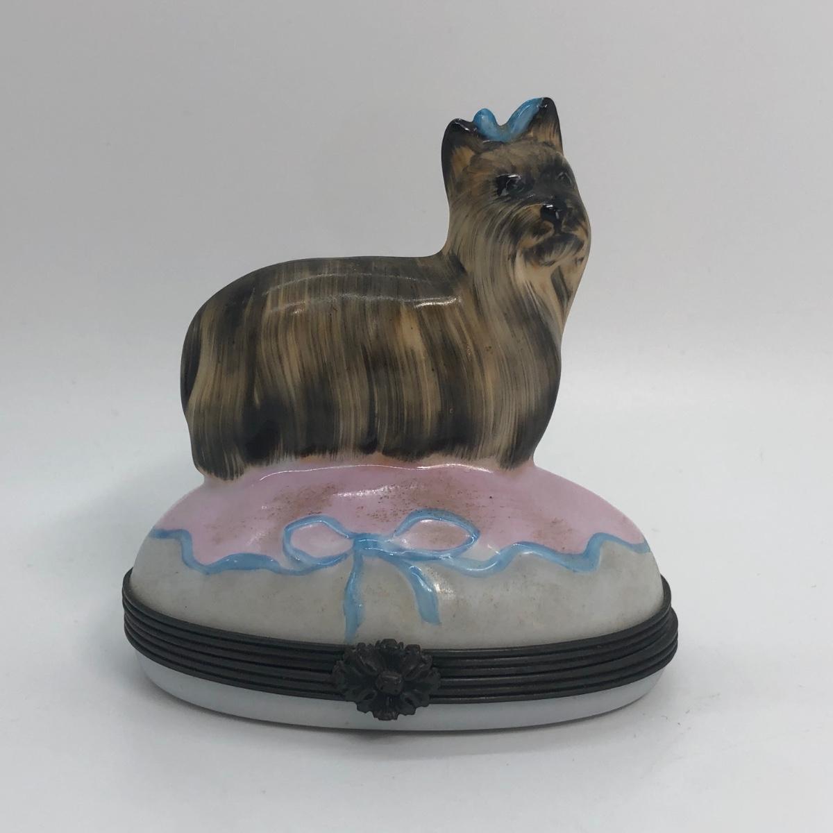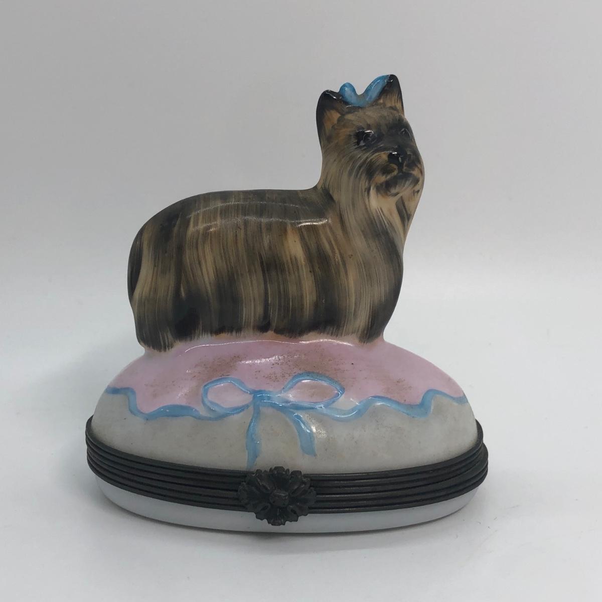 LOT 255M: Limoges France Hand Painted Yorkie/Silky Terrier Dog Trinket Box