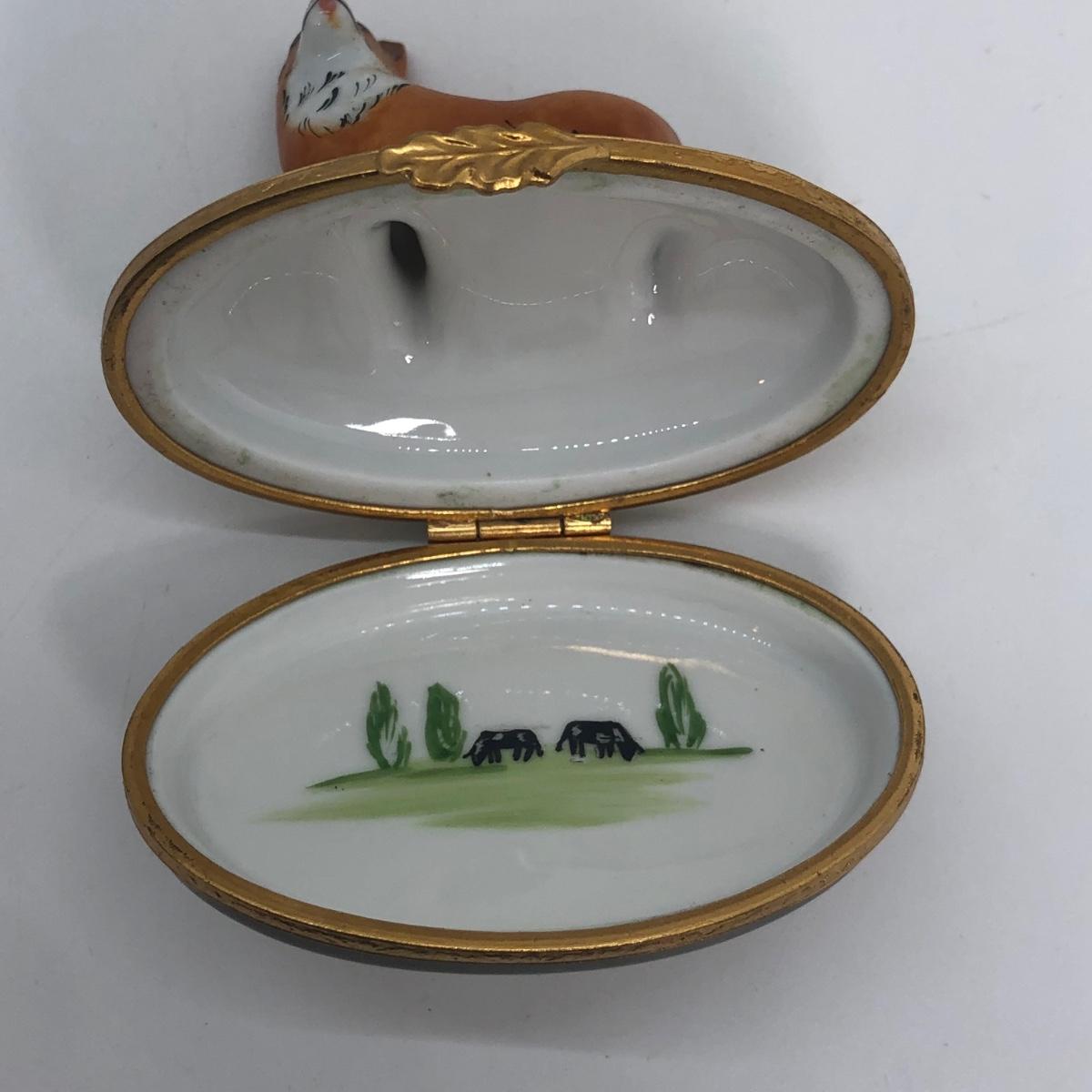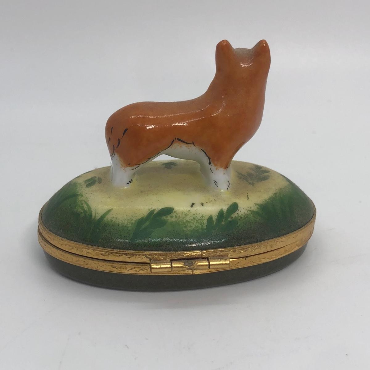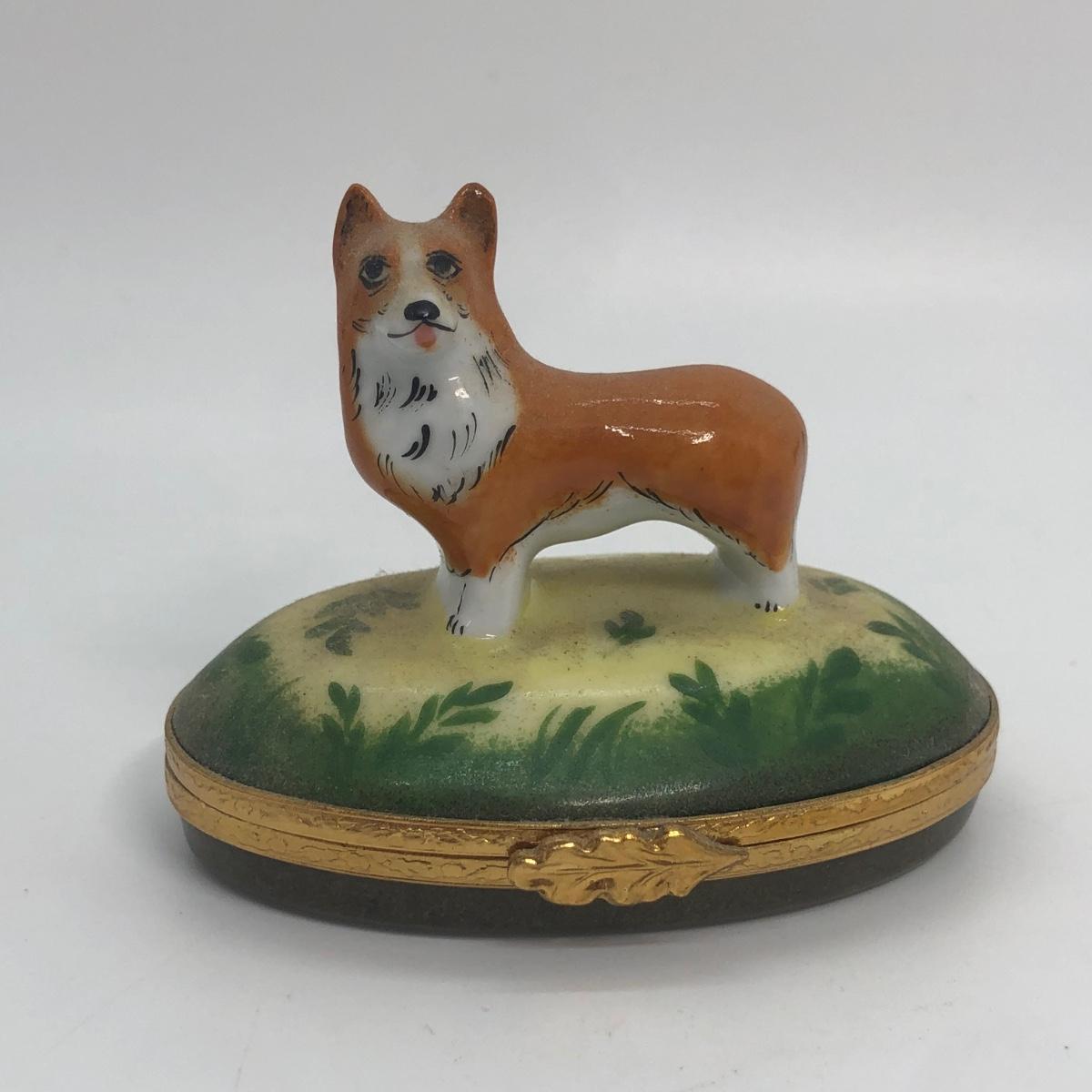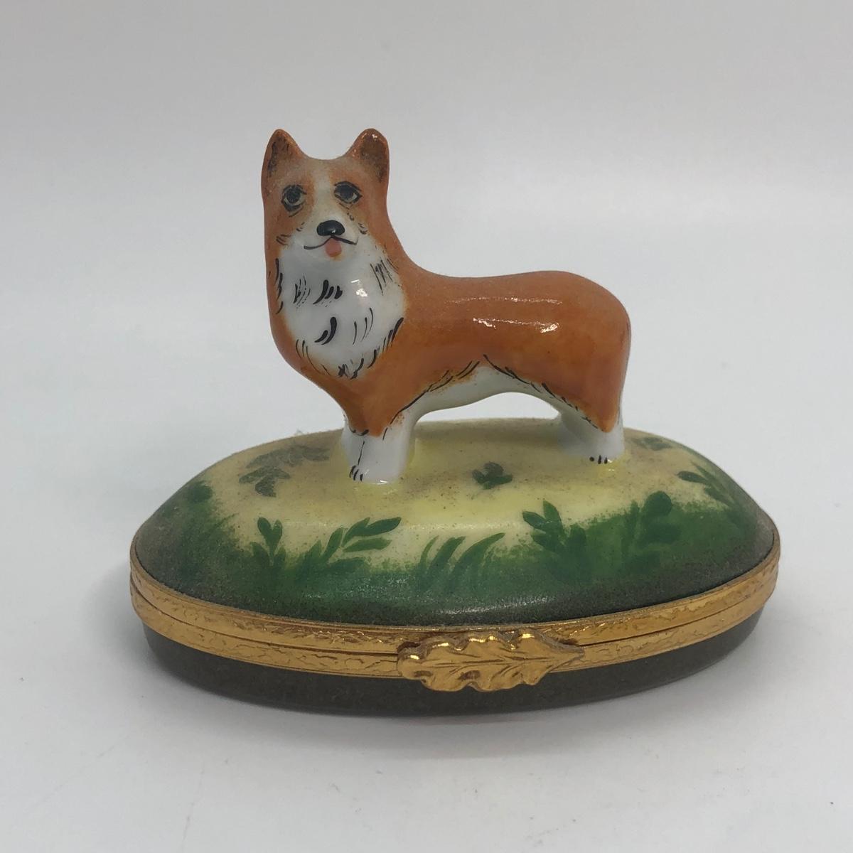 LOT 257M: Artoria Limoges France Hand Painted Corgi Trinket Box #461