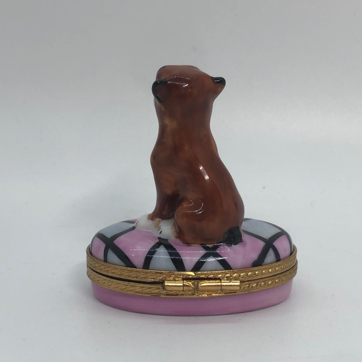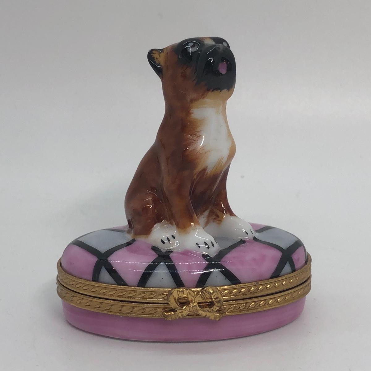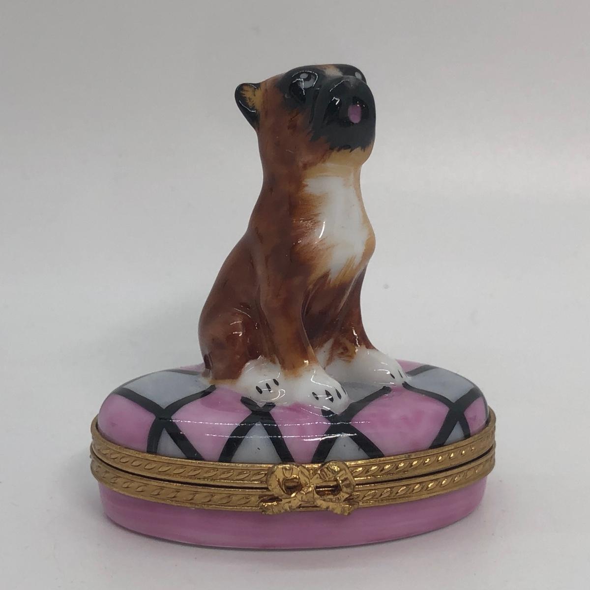 LOT 266M: Limoges France Hand Painted Small Boxer Trinket Box (Limited Edition 53/750)