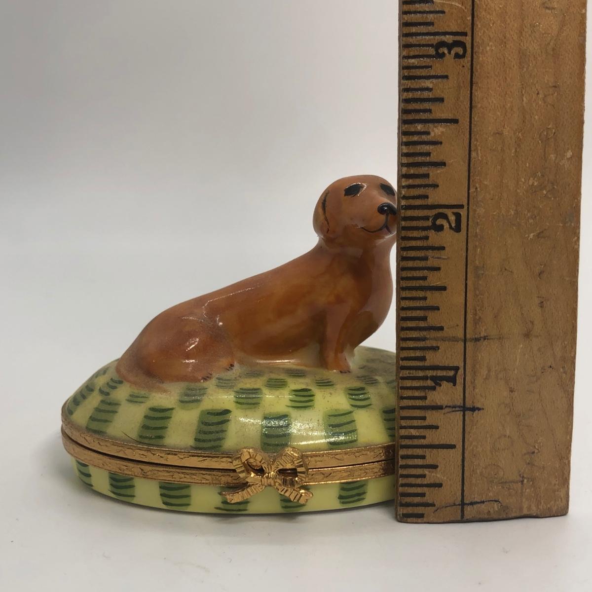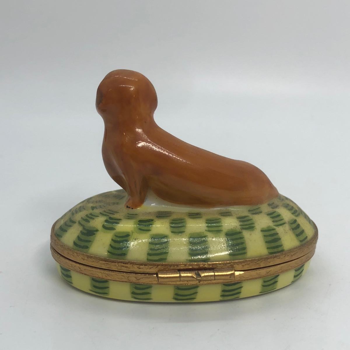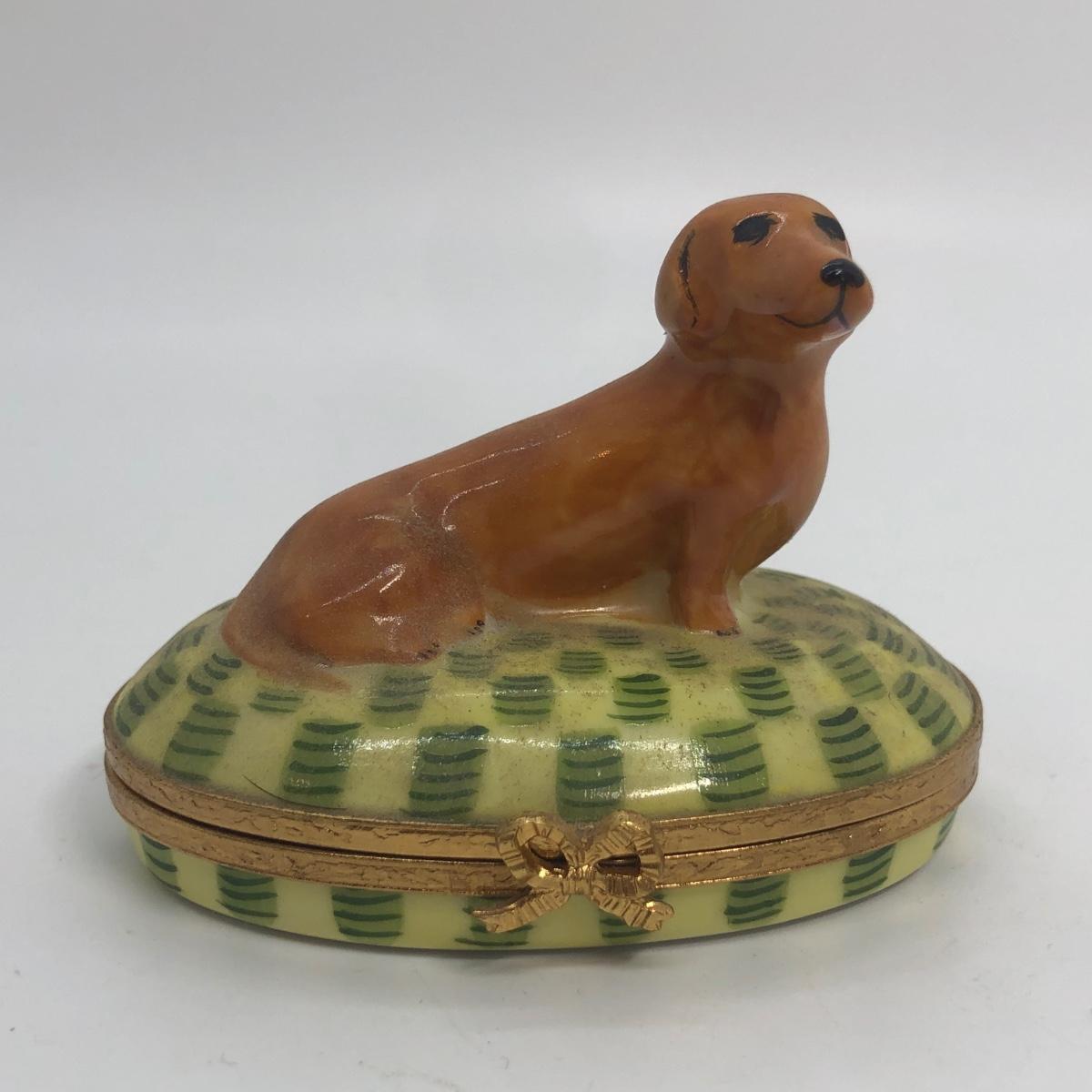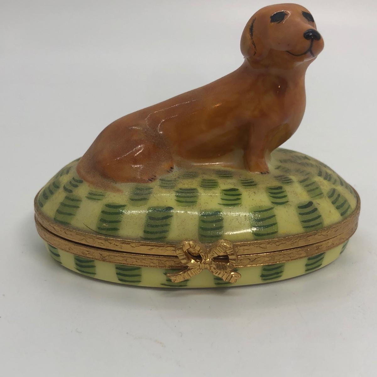 LOT 270M: Artoria Limoges France Hand Painted Brown Dachshund Trinket Box No. 159
