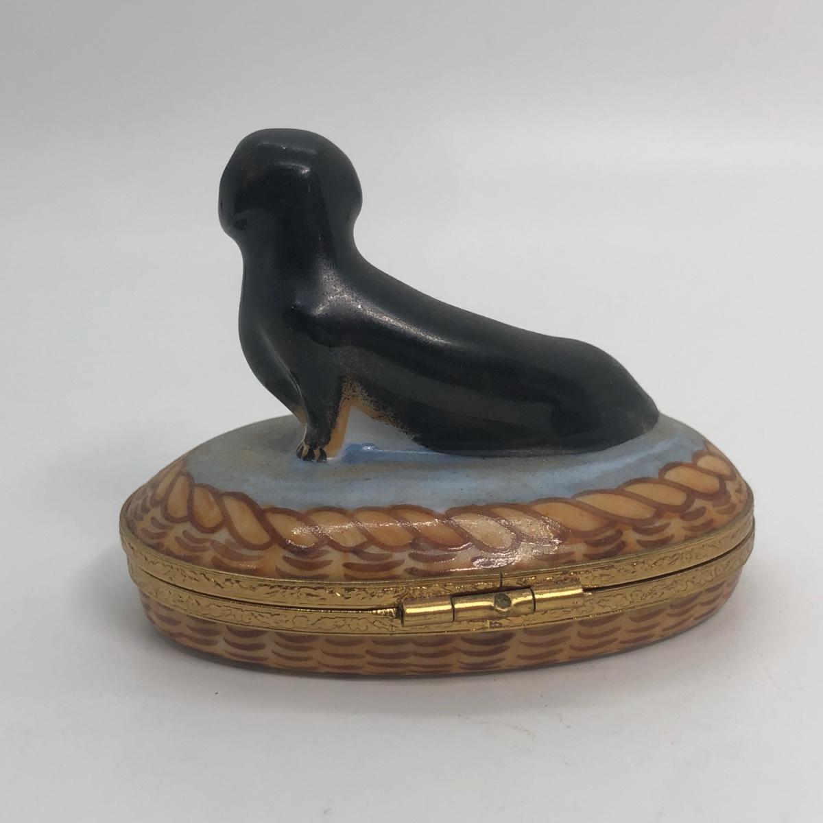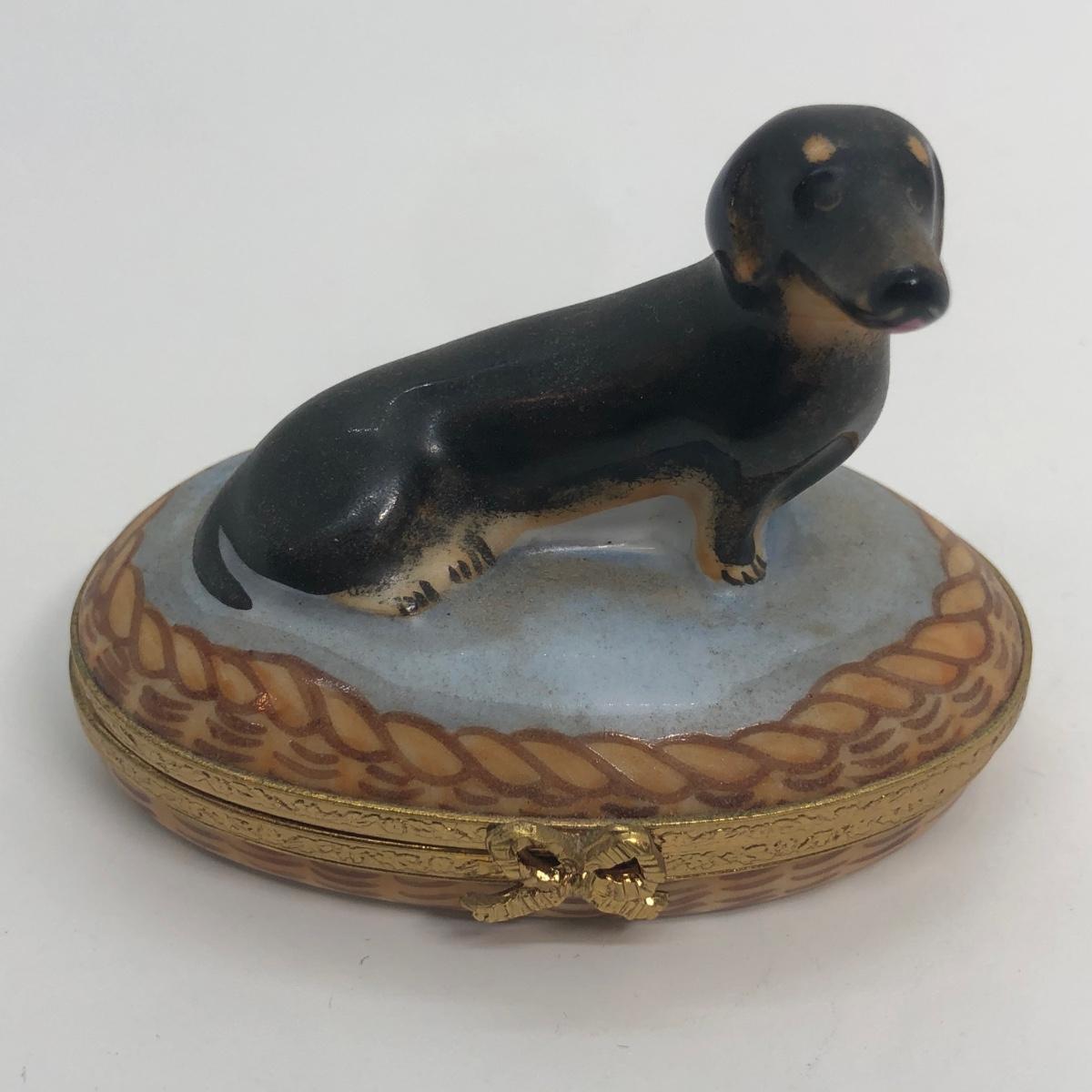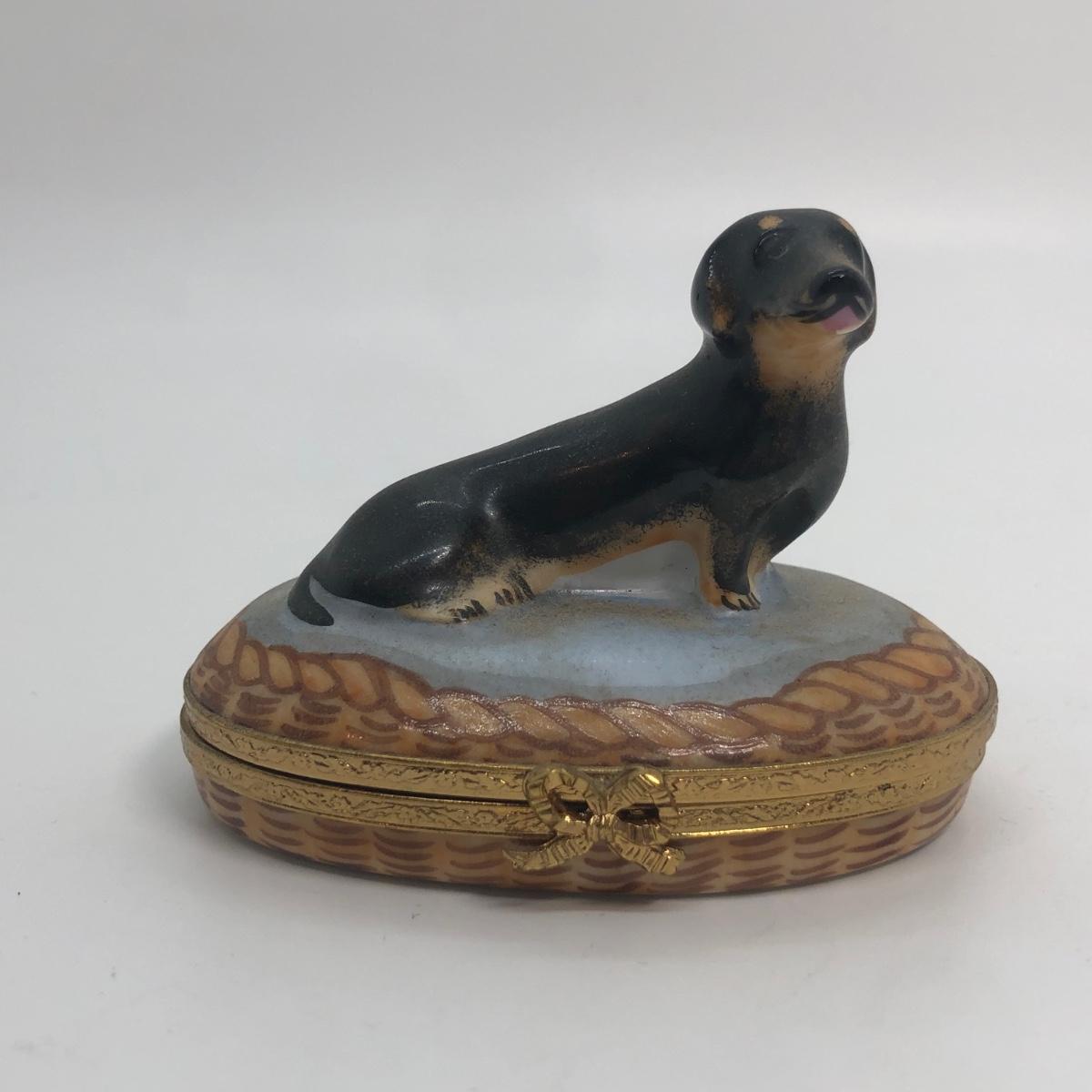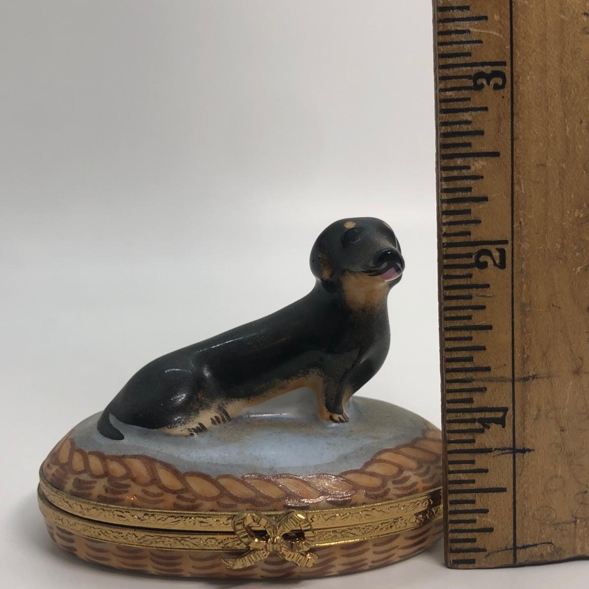 LOT 271M: Artoria Limoges France Hand Painted Black Dachshund Trinket Box No. 299