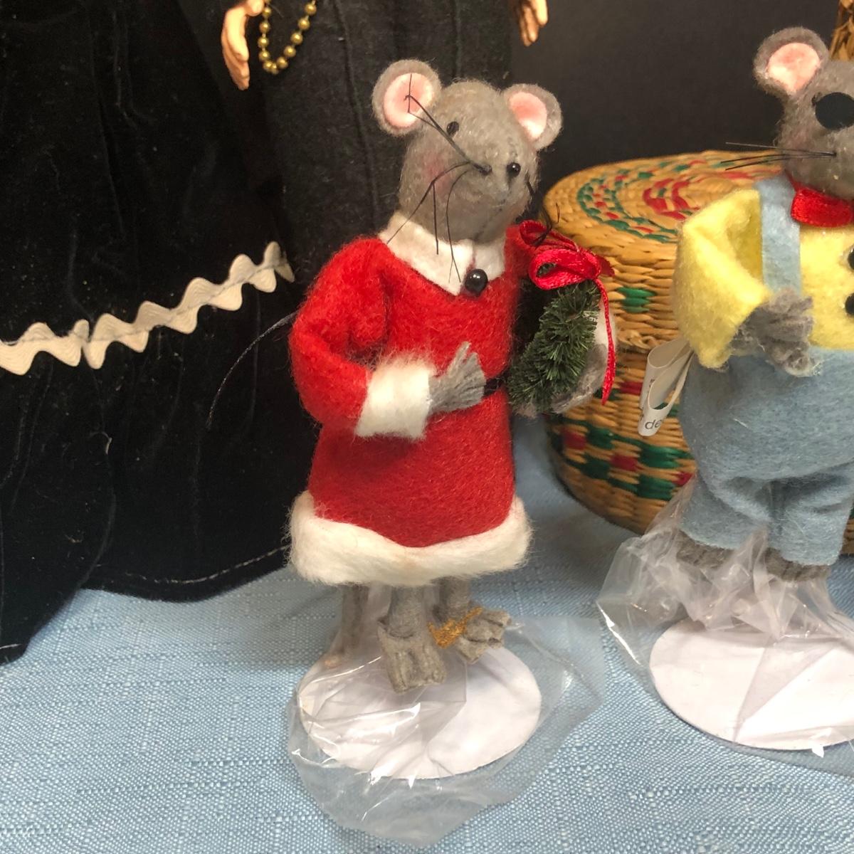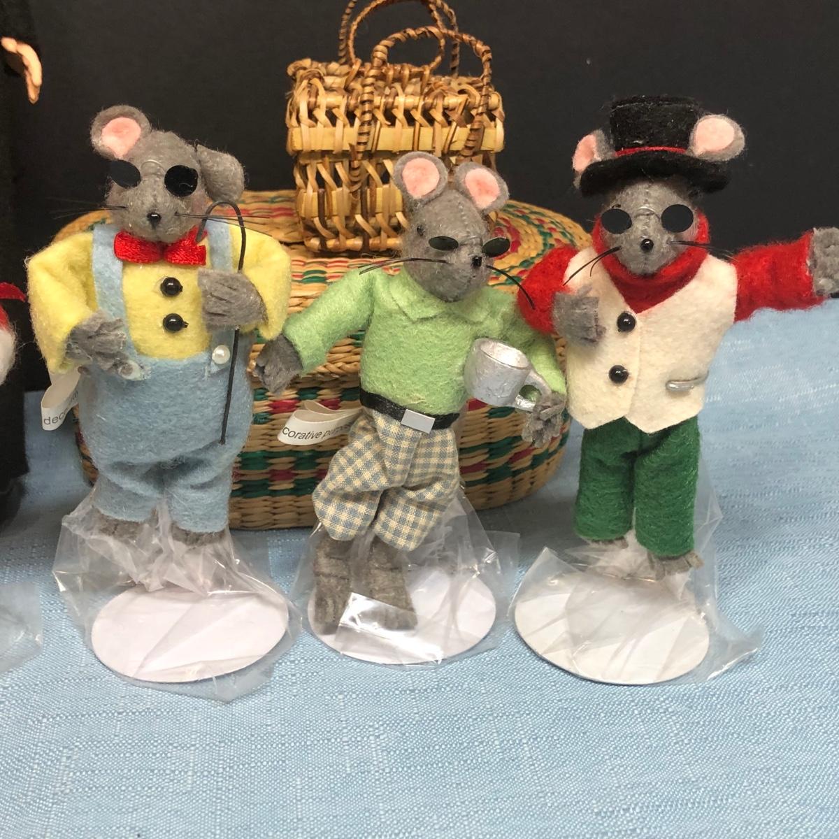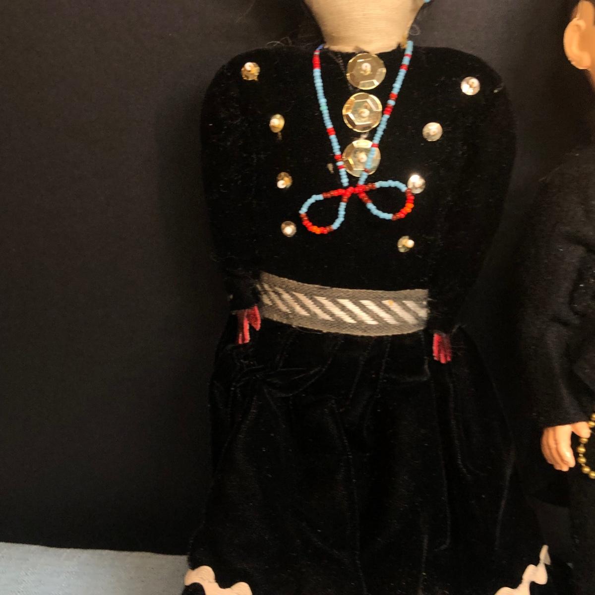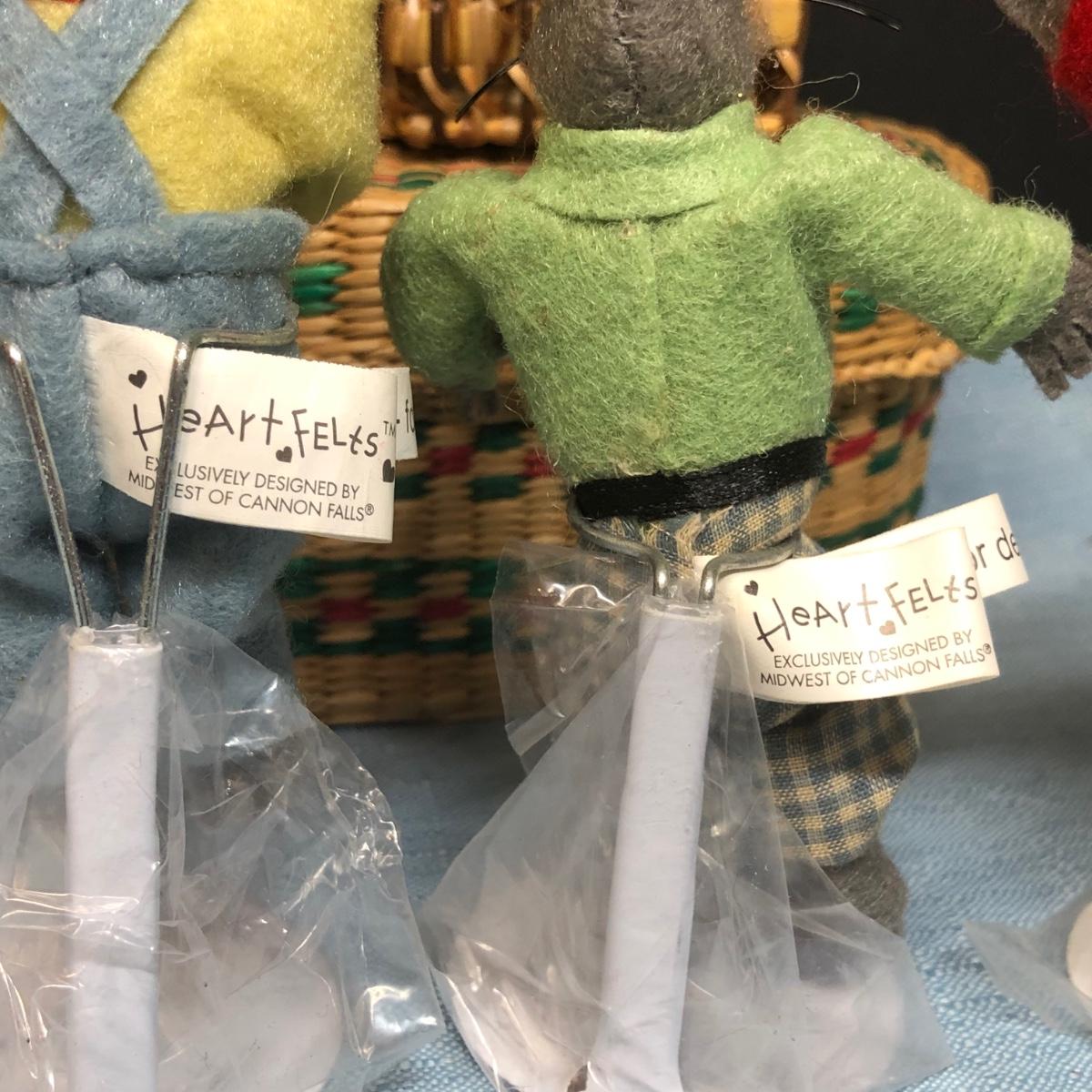 LOT 275M: Miniature Green Leaf Majolica Pottery Demitassee Tea Cup & Saucer, Heart Felts 3 Blind Mice, Gnomes, Vintage Native American Cloth Doll, 1930s Plastic BrideGroom Doll in Tuxedo & More