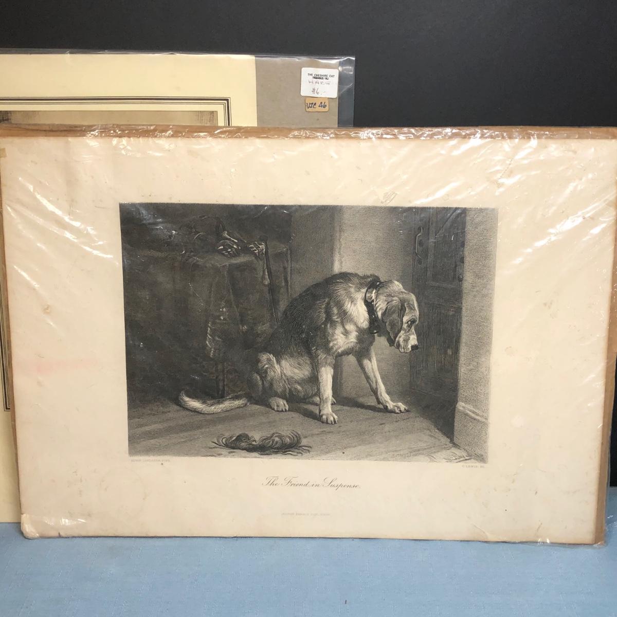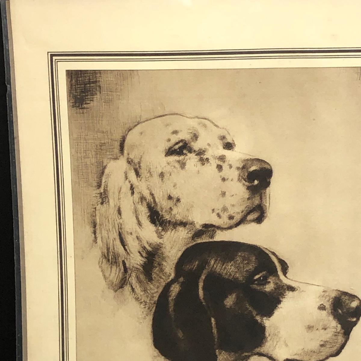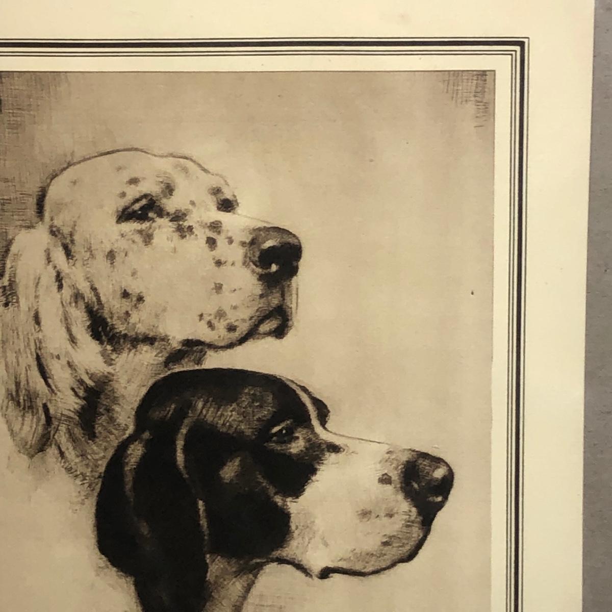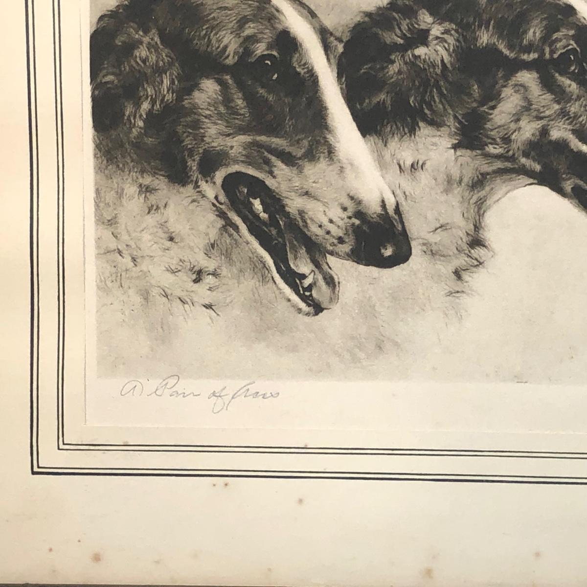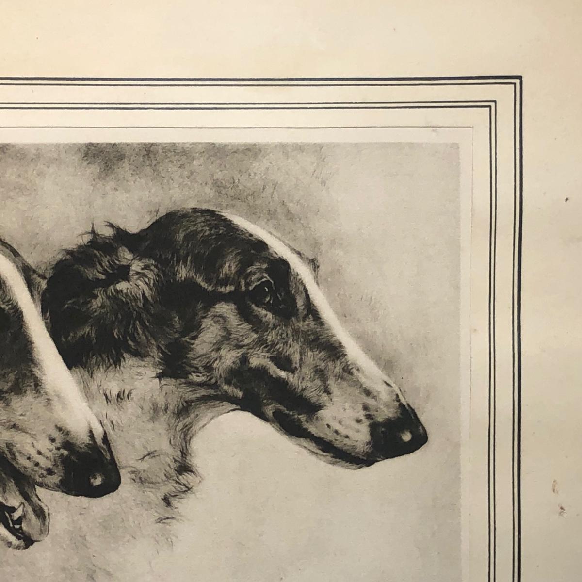 LOT 276M: Fox Terrier Cross Stitch, "The Three Dogs" signed Sir E. Landseer, Signed P{air of Hounds Print, E. Landseer "The Friend in Suspense" Print & Signed Aristocrats Print by J.K. Hare