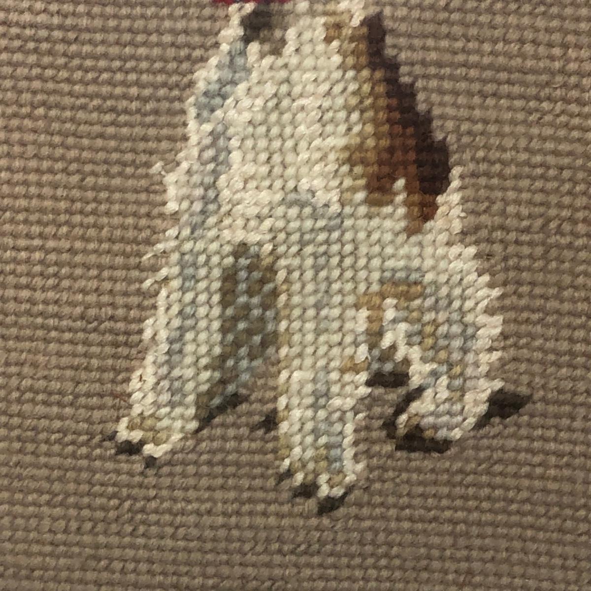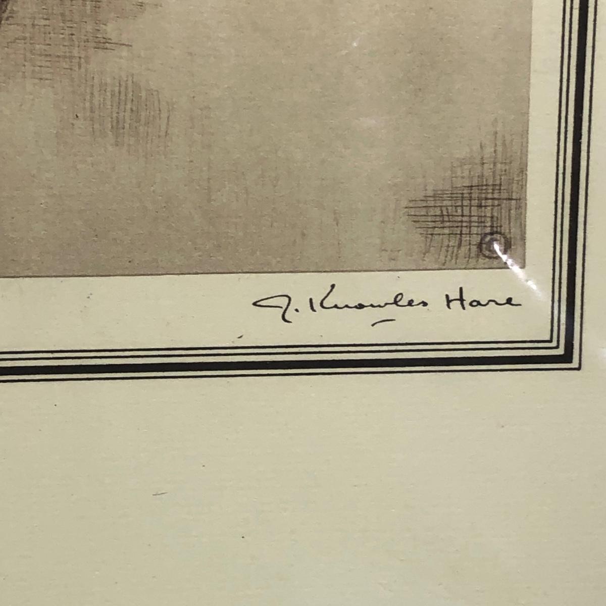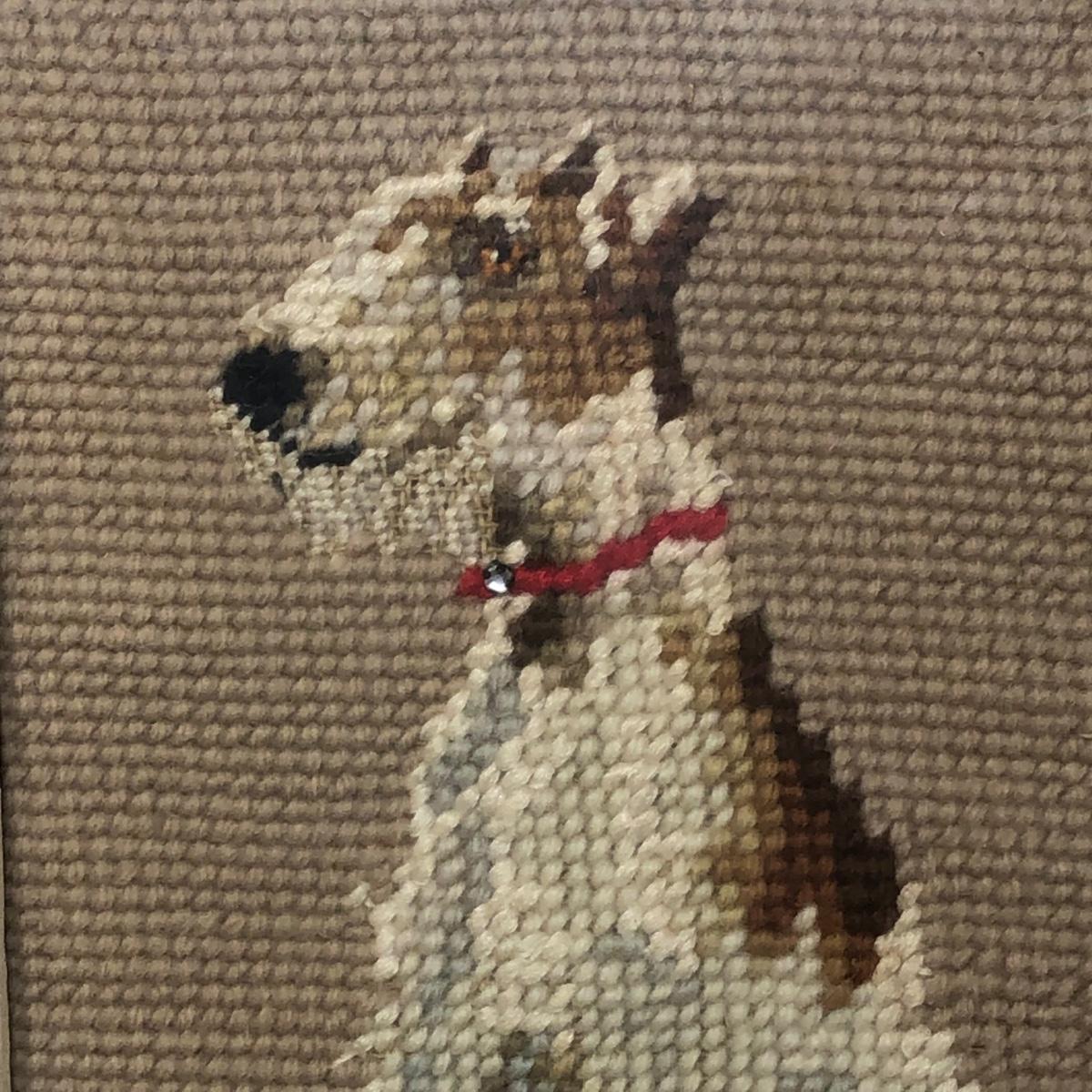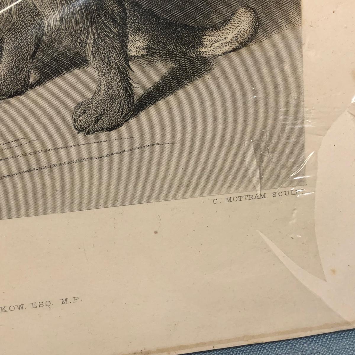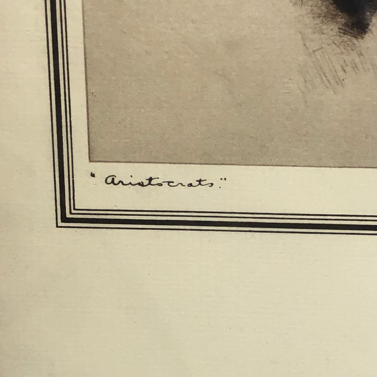 LOT 276M: Fox Terrier Cross Stitch, "The Three Dogs" signed Sir E. Landseer, Signed P{air of Hounds Print, E. Landseer "The Friend in Suspense" Print & Signed Aristocrats Print by J.K. Hare