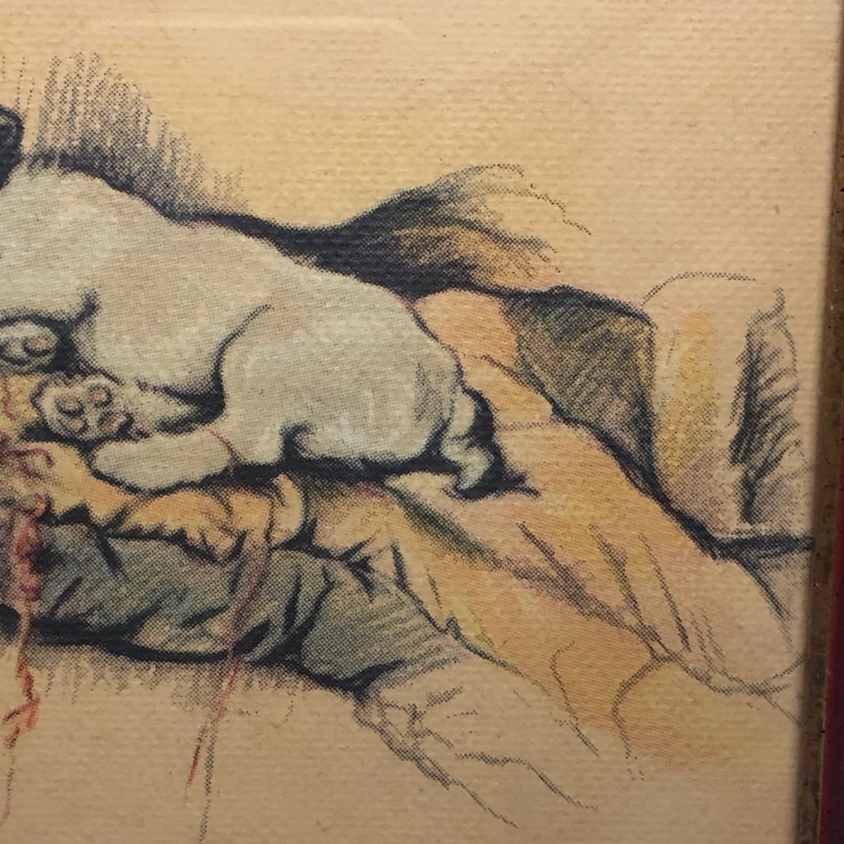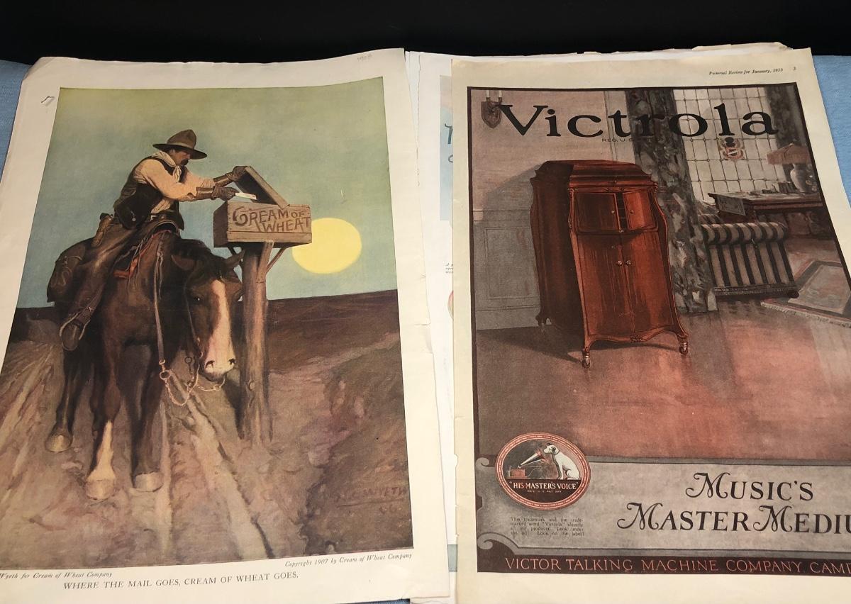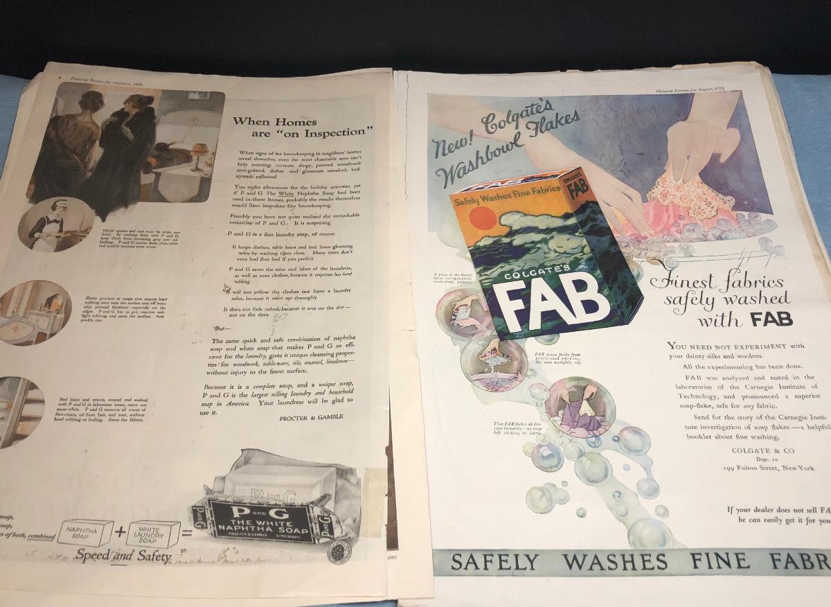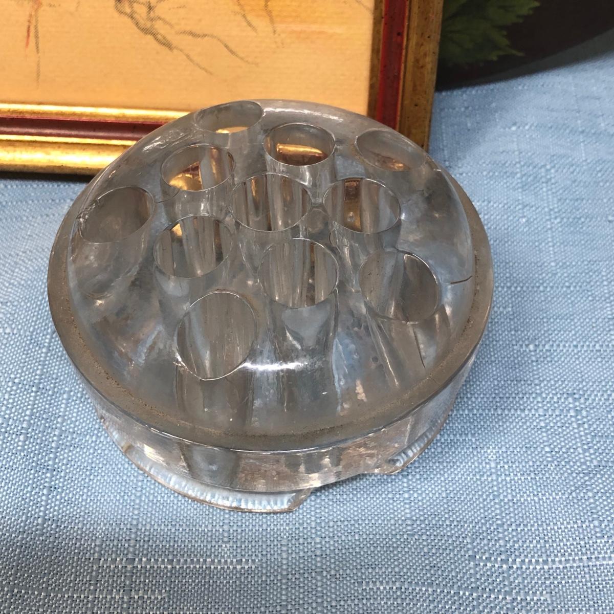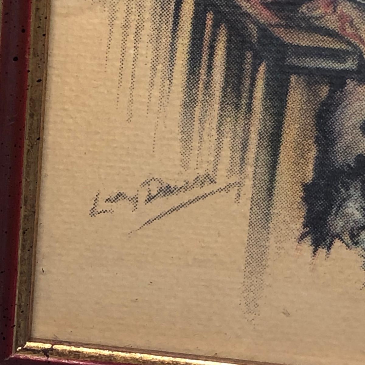 LOT 277M: Vintage Unbound "Woman's Home Companion", Signed Sleeping Pubby Lucy Dawson Postcard Picture, Amber Colored Glass Inkwell, Glass Flower Frog, Antique Photo on Tin Frame & More