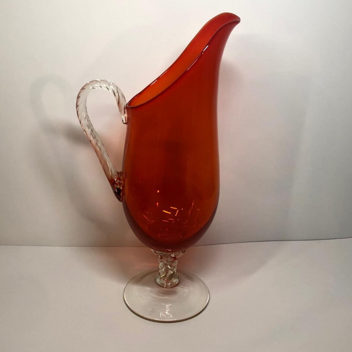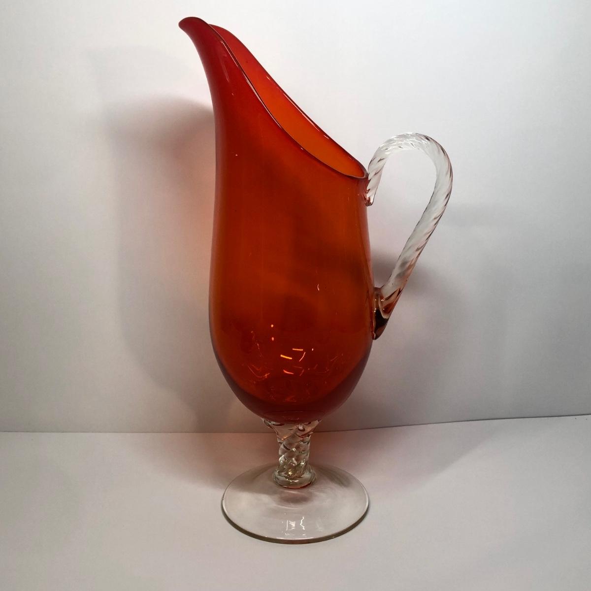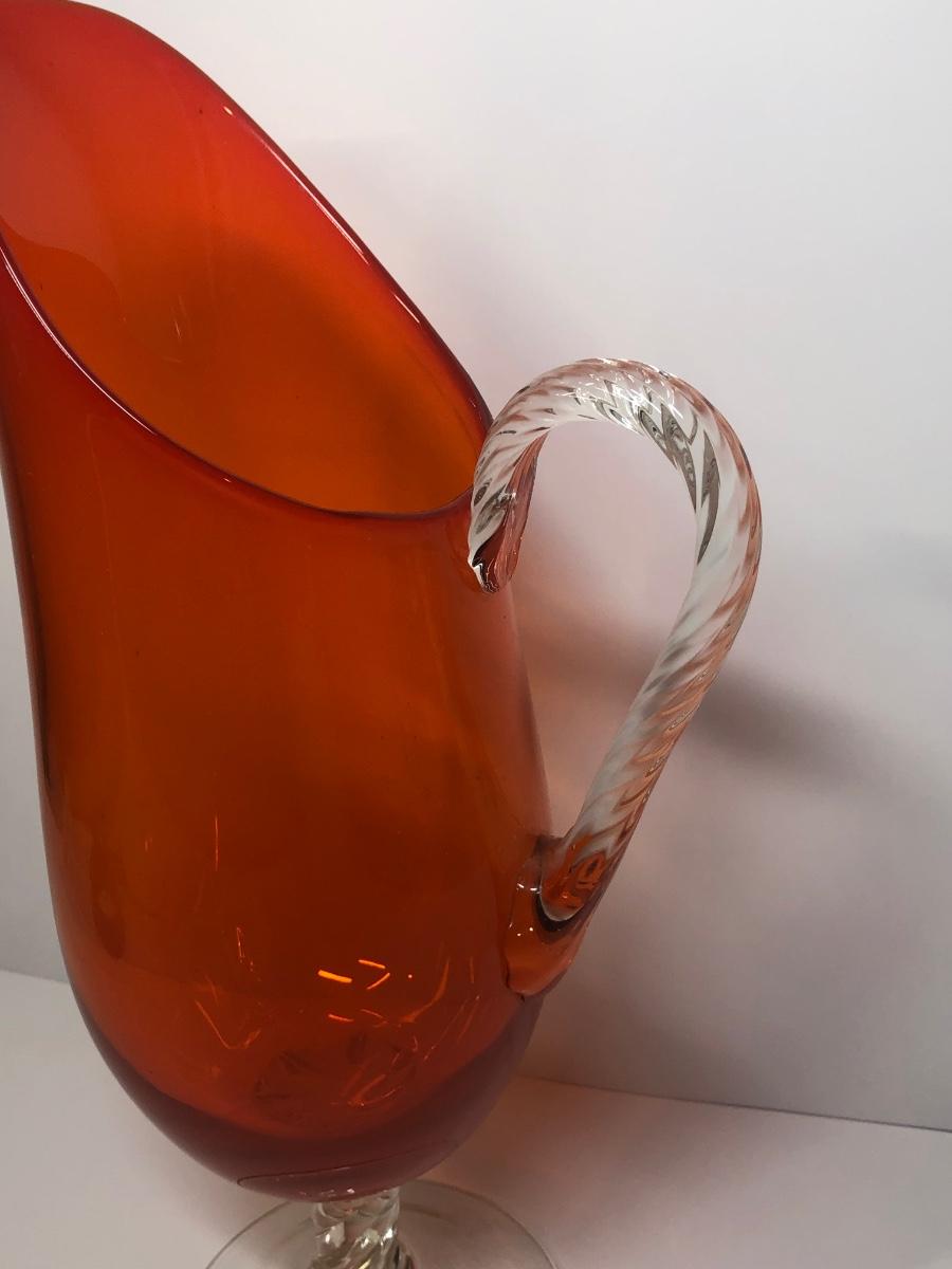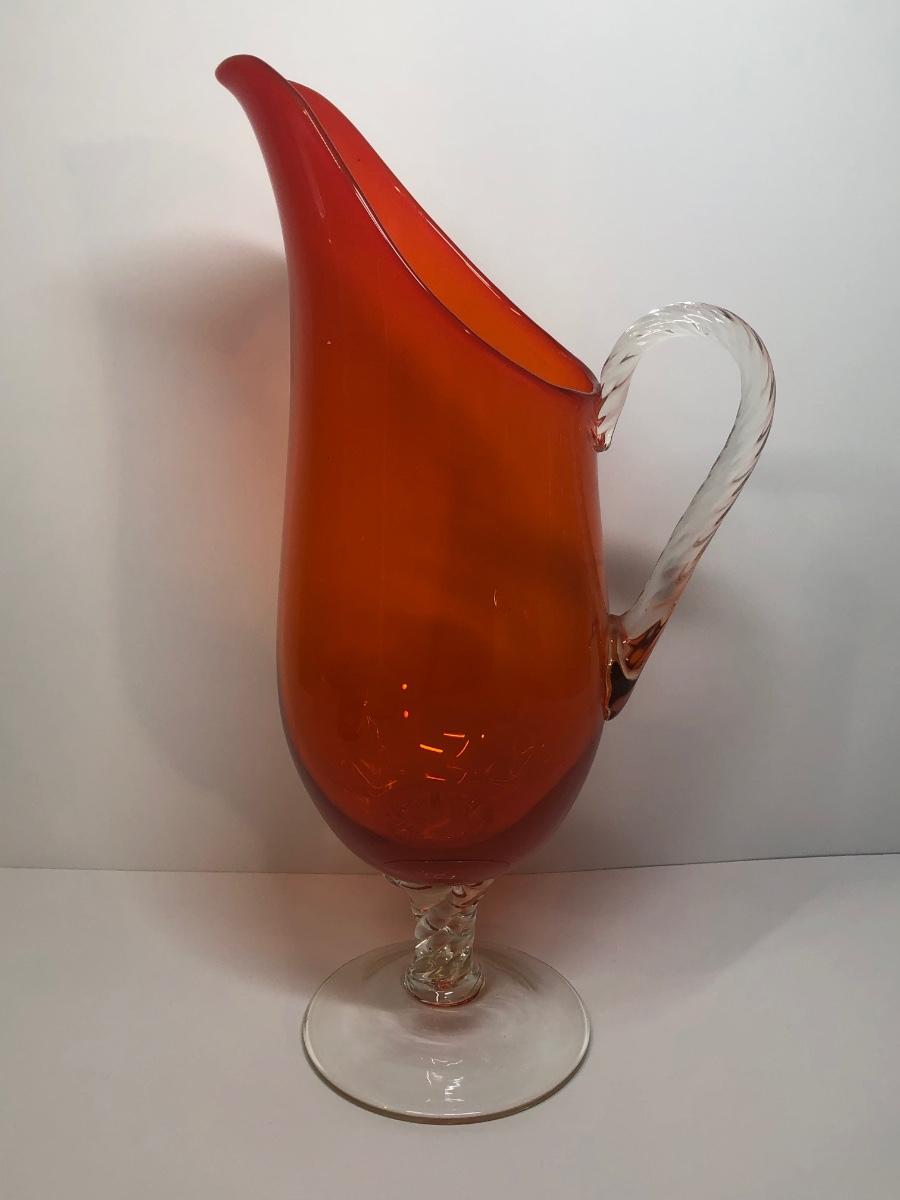 LOT 280M: Mid-Century Modern Orange Art Glass Pitcher (13")